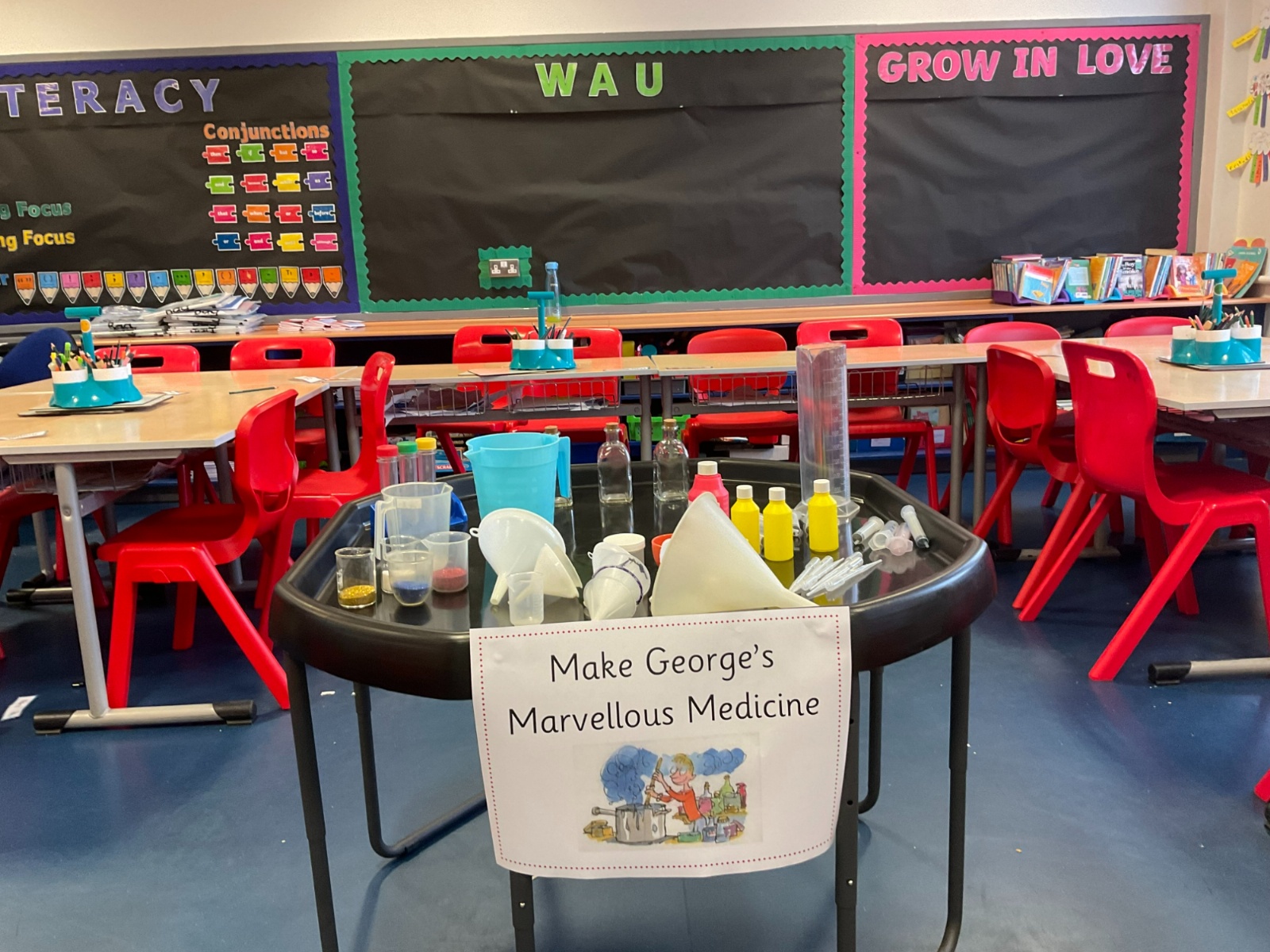 To celebrate Roald Dahl Day, we focused on two books – George's Marvellous Medicine and The Twits. Children used a range of resources to create George's Marvellous Medicine and used their creativity to imagine what the medicine would do to granny. The children then got to make Mr Twit's beard. Children used a range of craft materials to make Mr Twit's beard and the various 'disgusting items' that may be found in his beard.