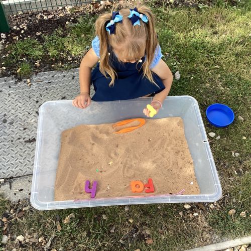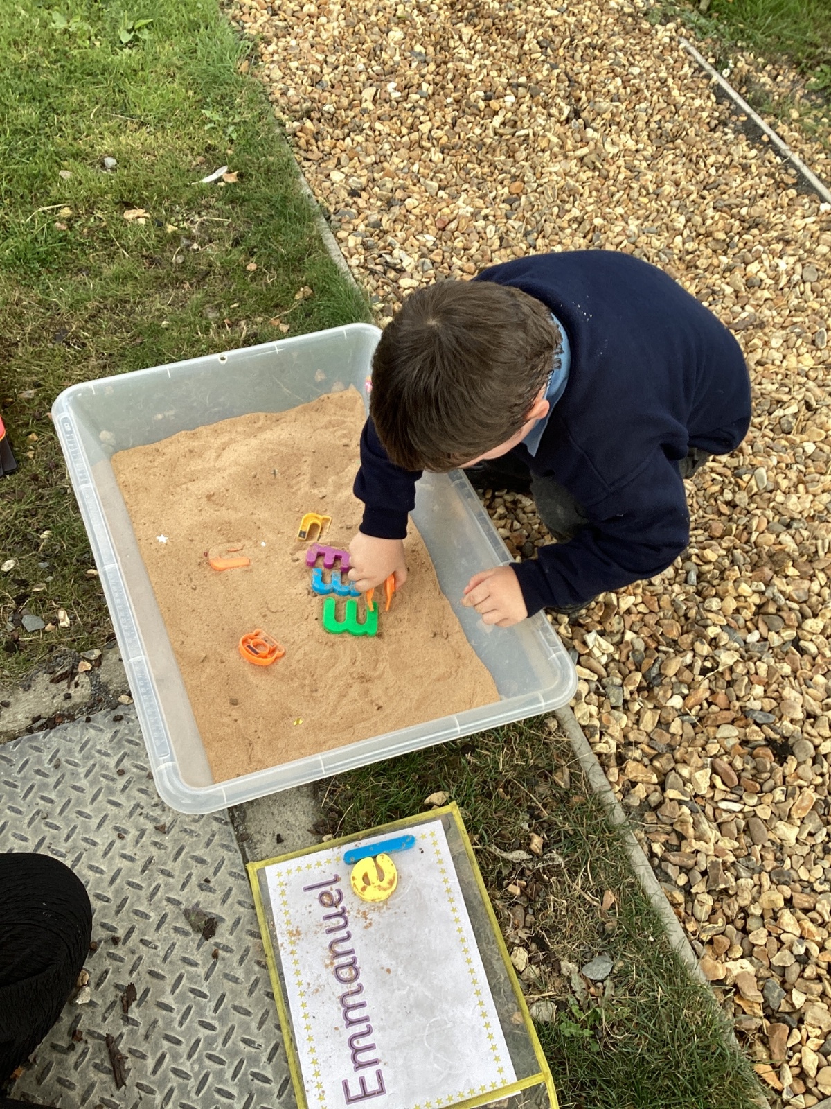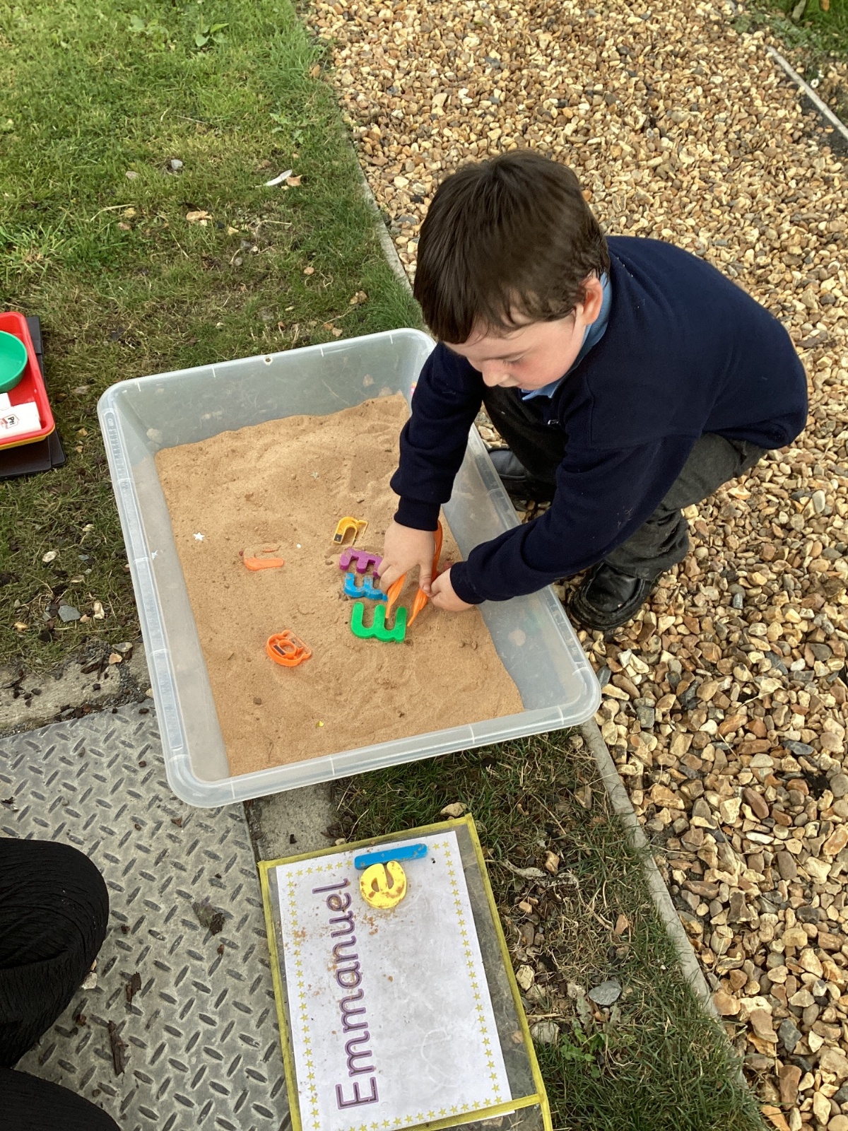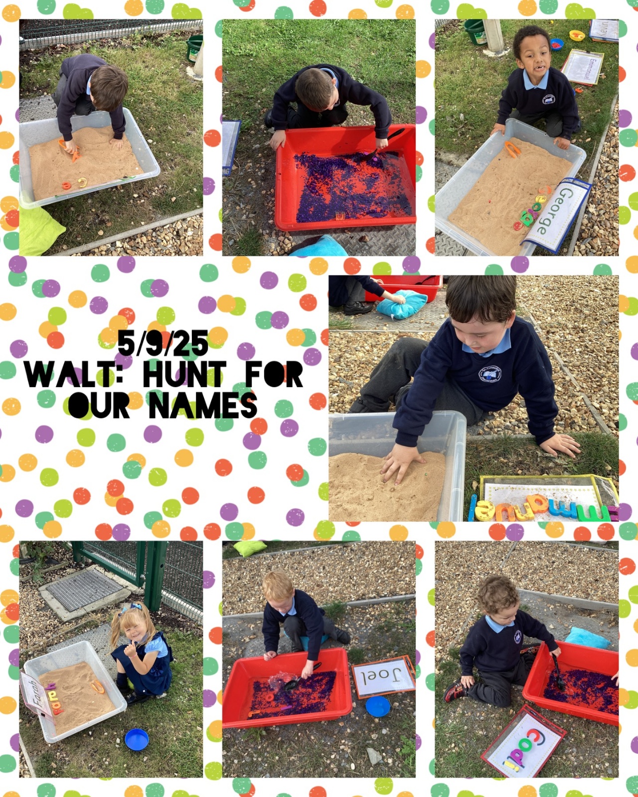 5/9/25 The children had to hunt for their names hidden in the water and the sand.