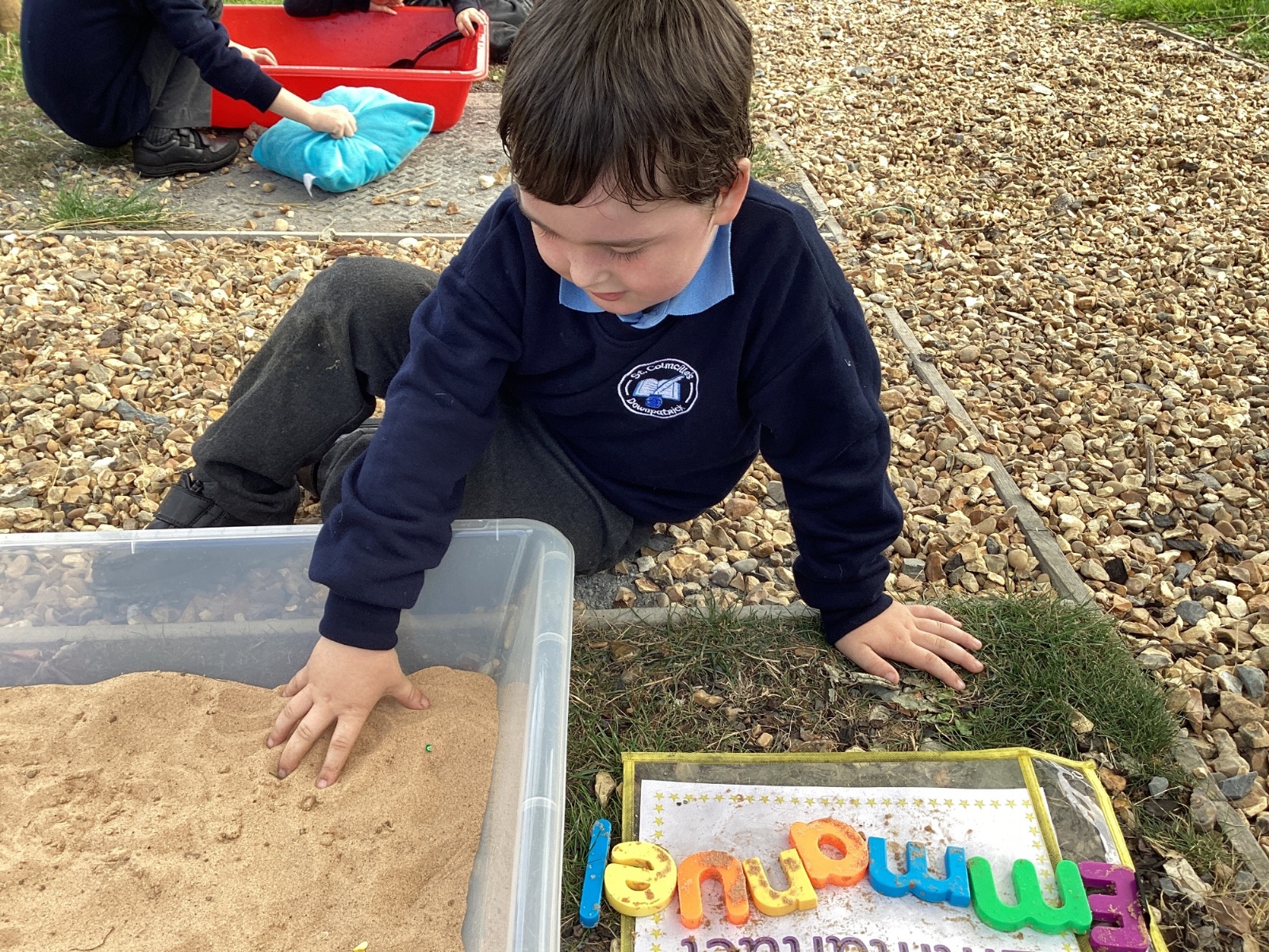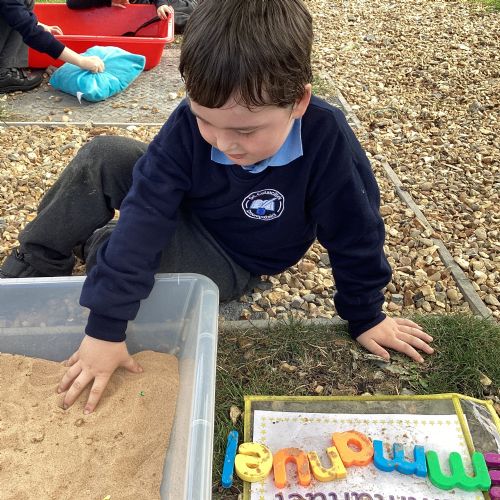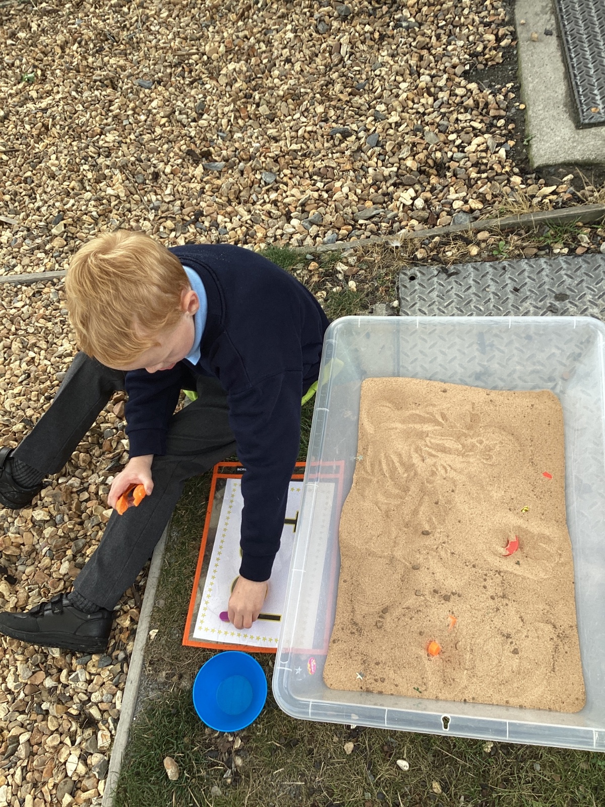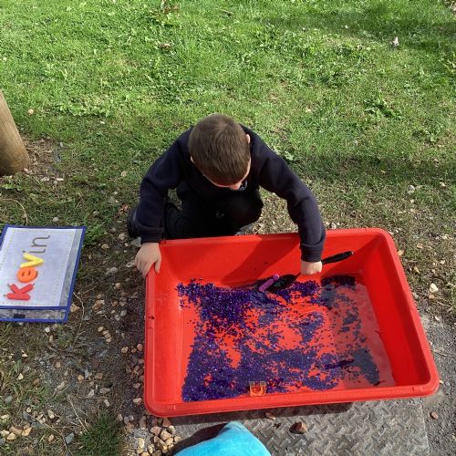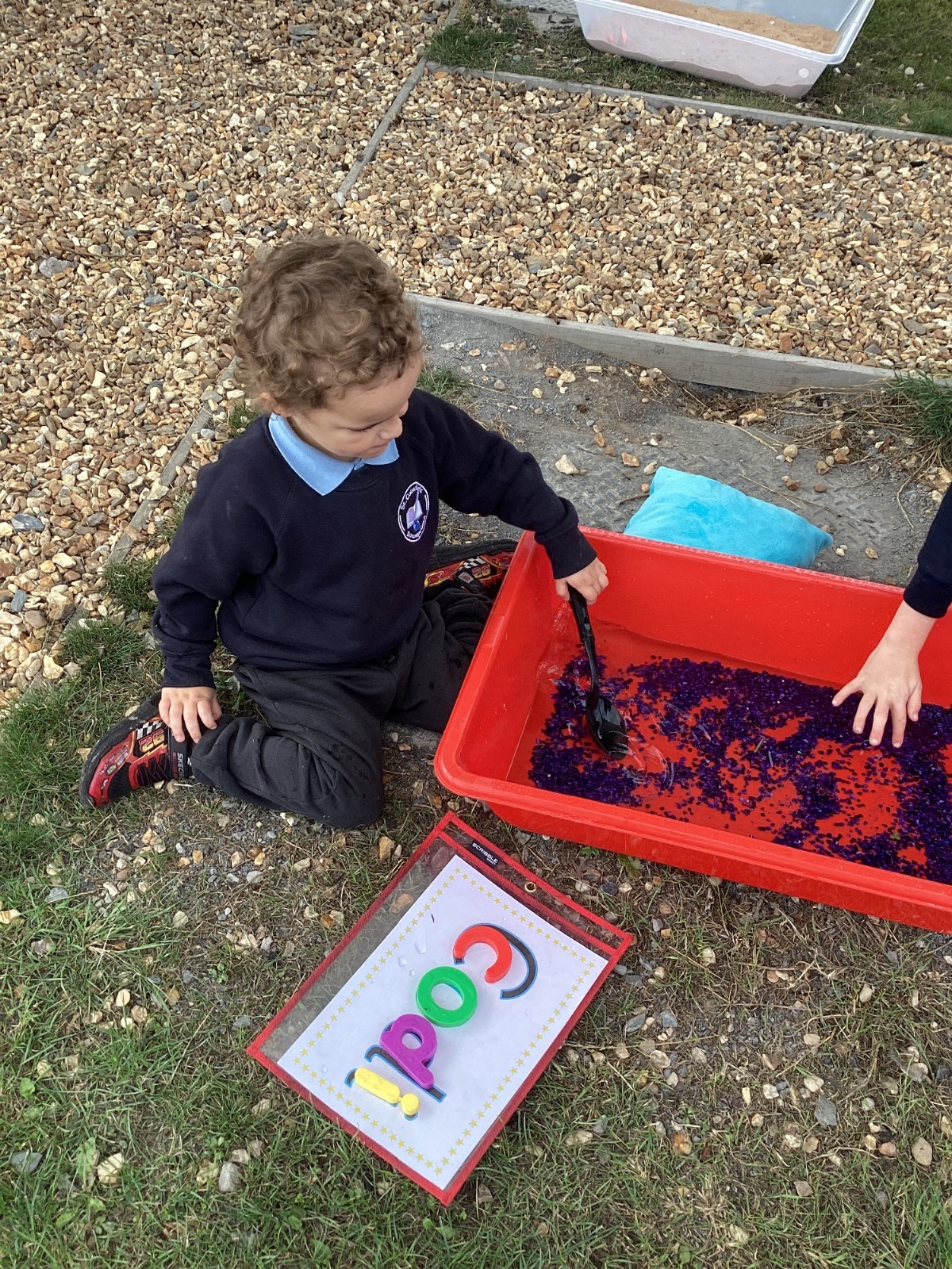5/9/25 The children had to hunt for their names hidden in the water and the sand.
