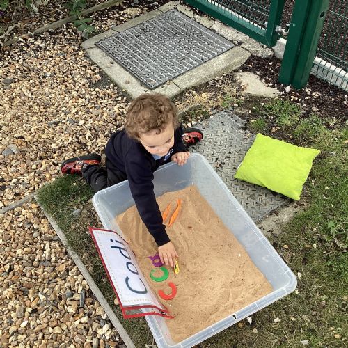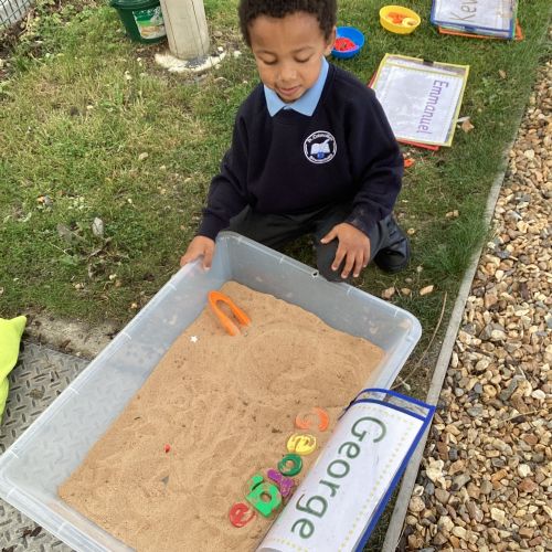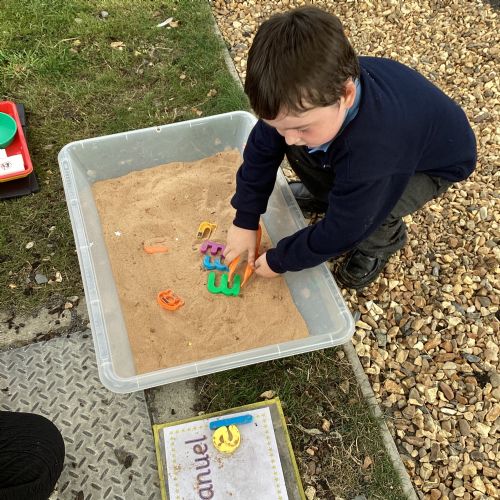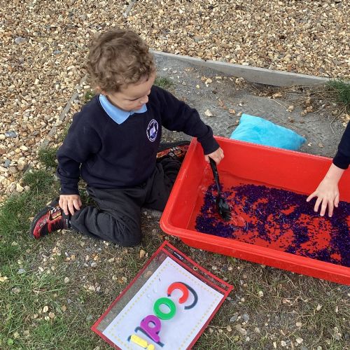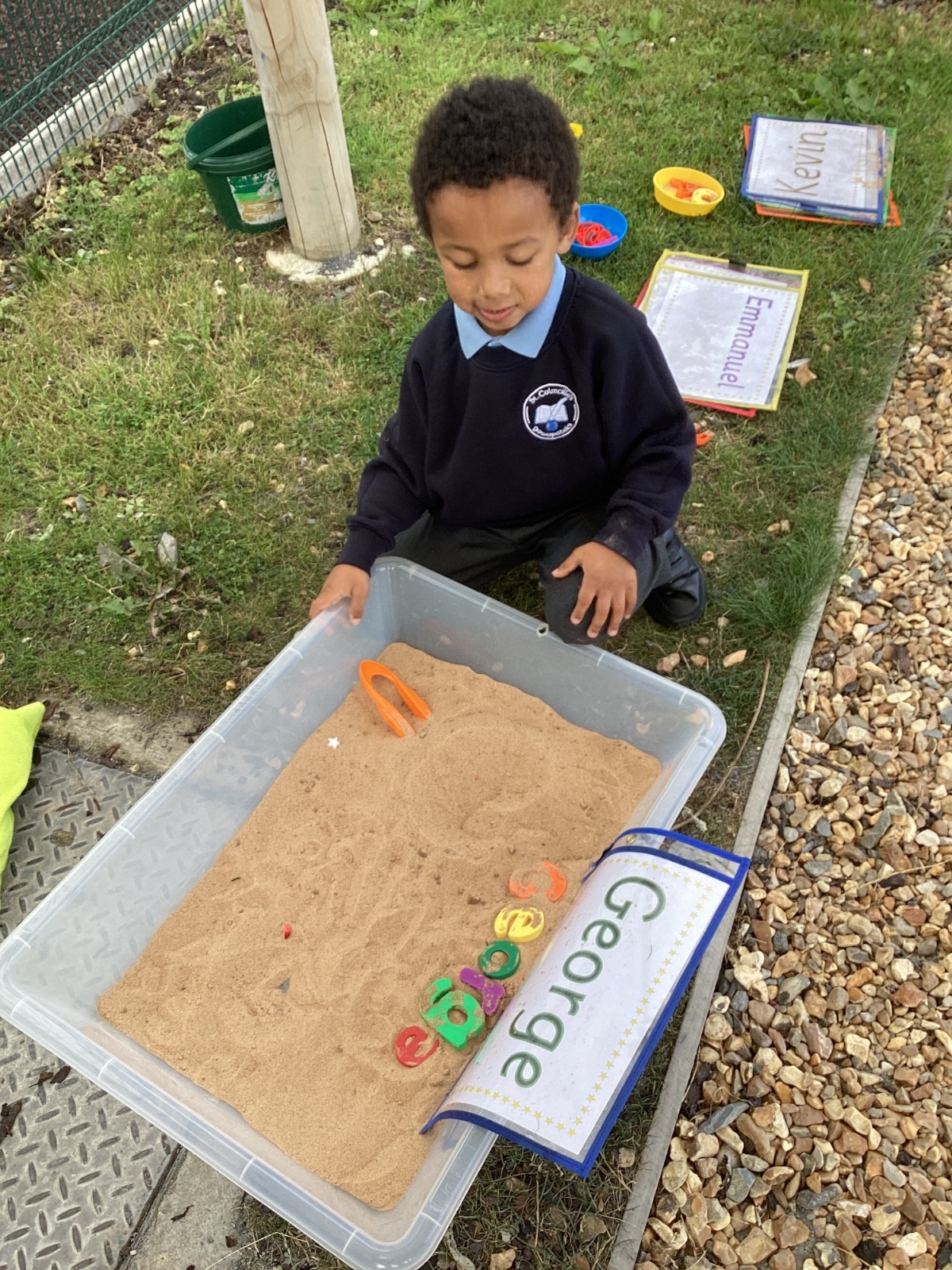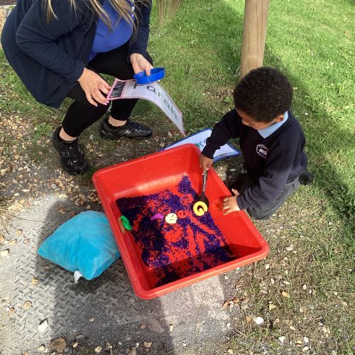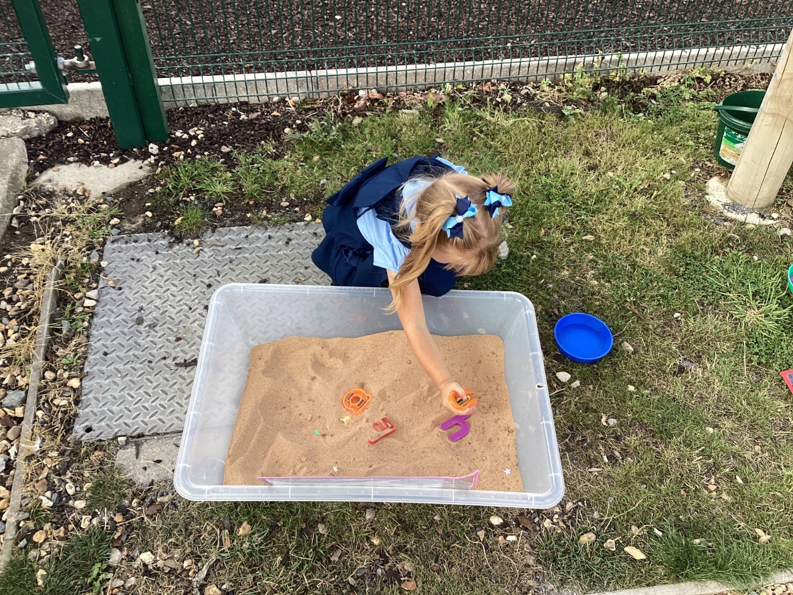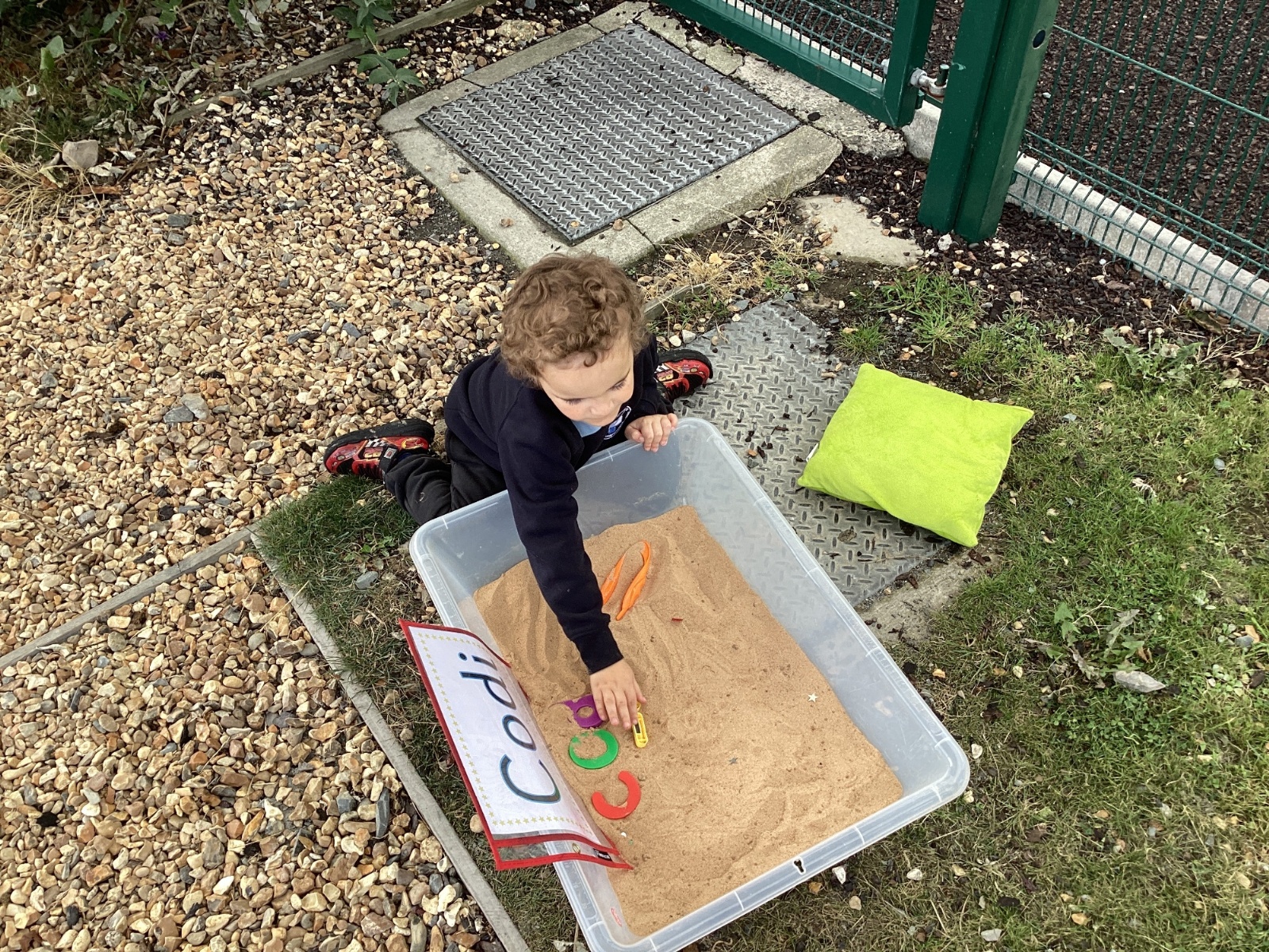 5/9/25 The children had to hunt for their names hidden in the water and the sand.