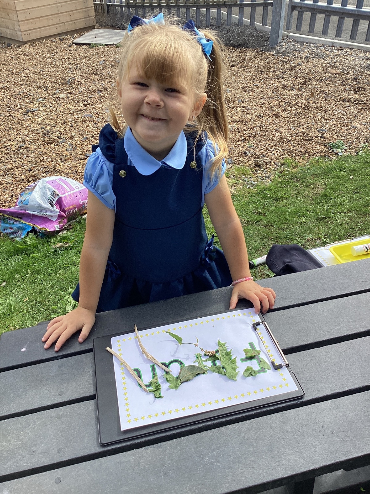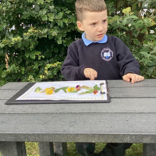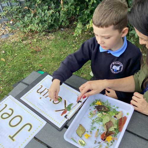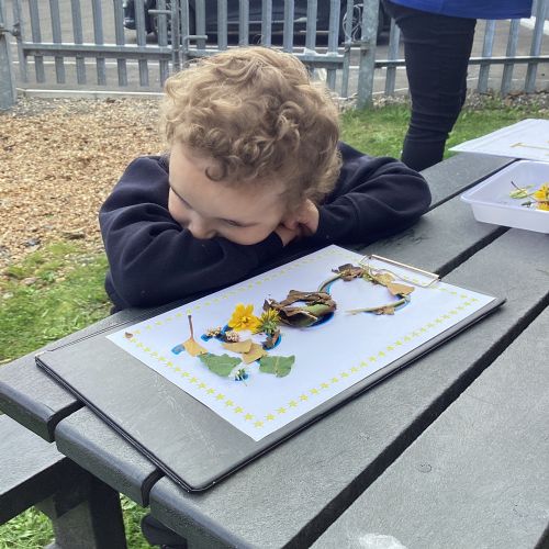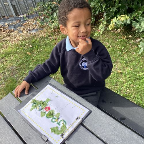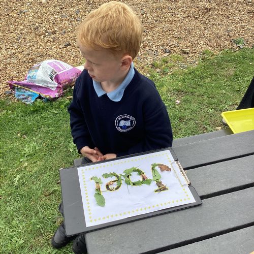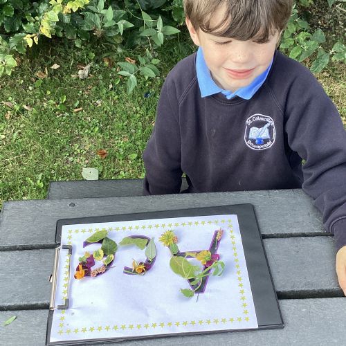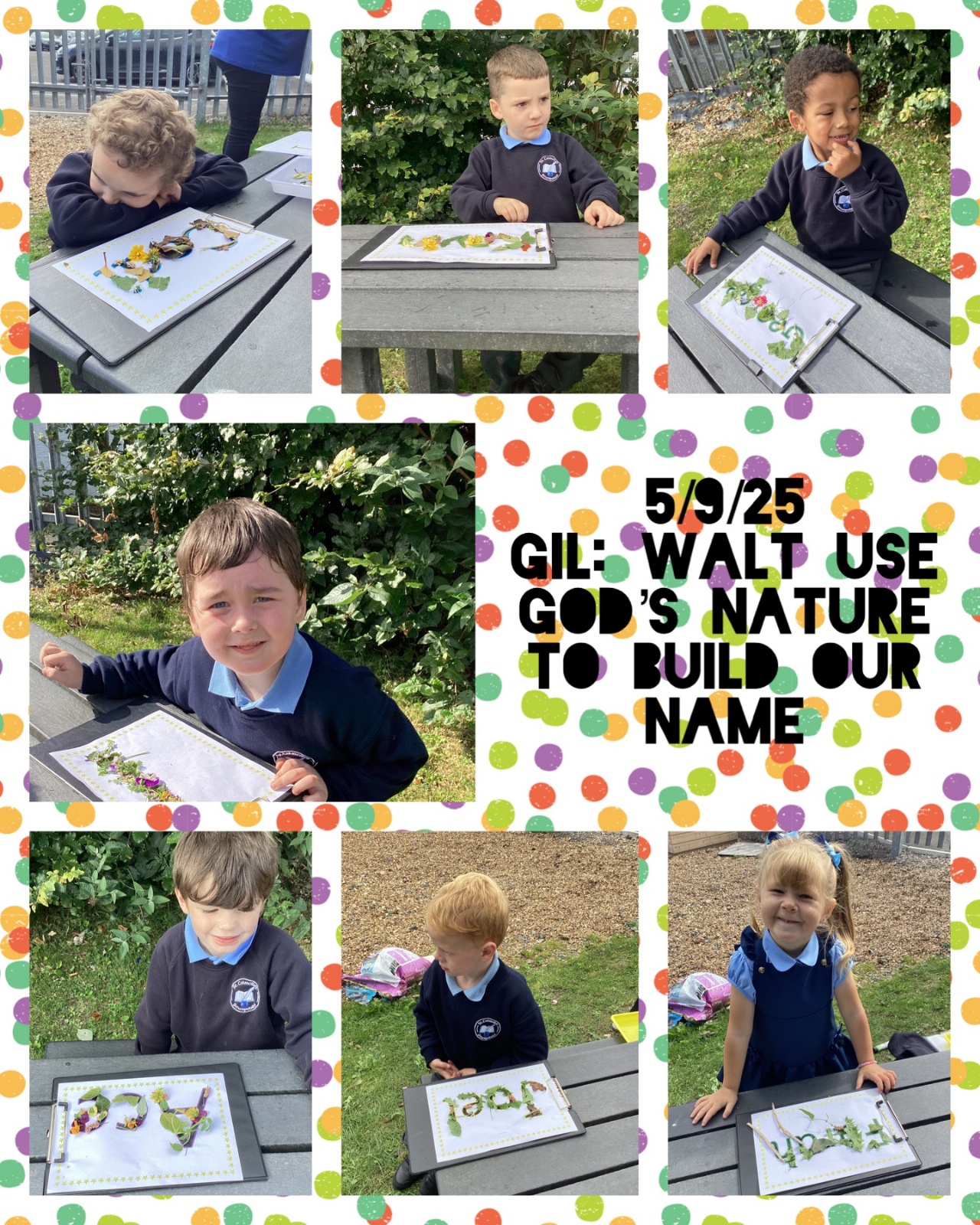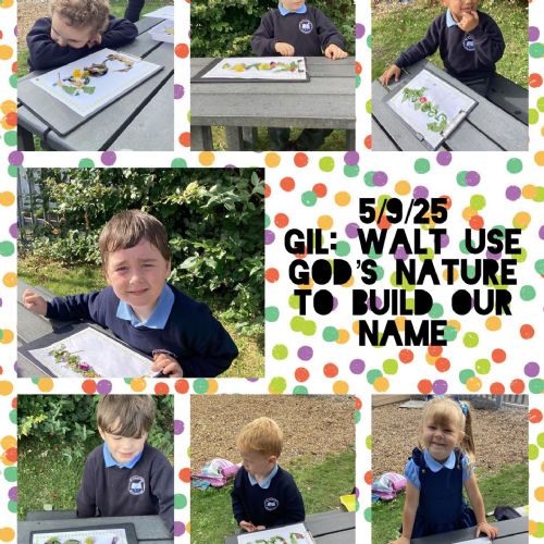 5/9/25 Grow in Love: The children explored the wonderful things that God has created in our world. We used nature to build our special names.