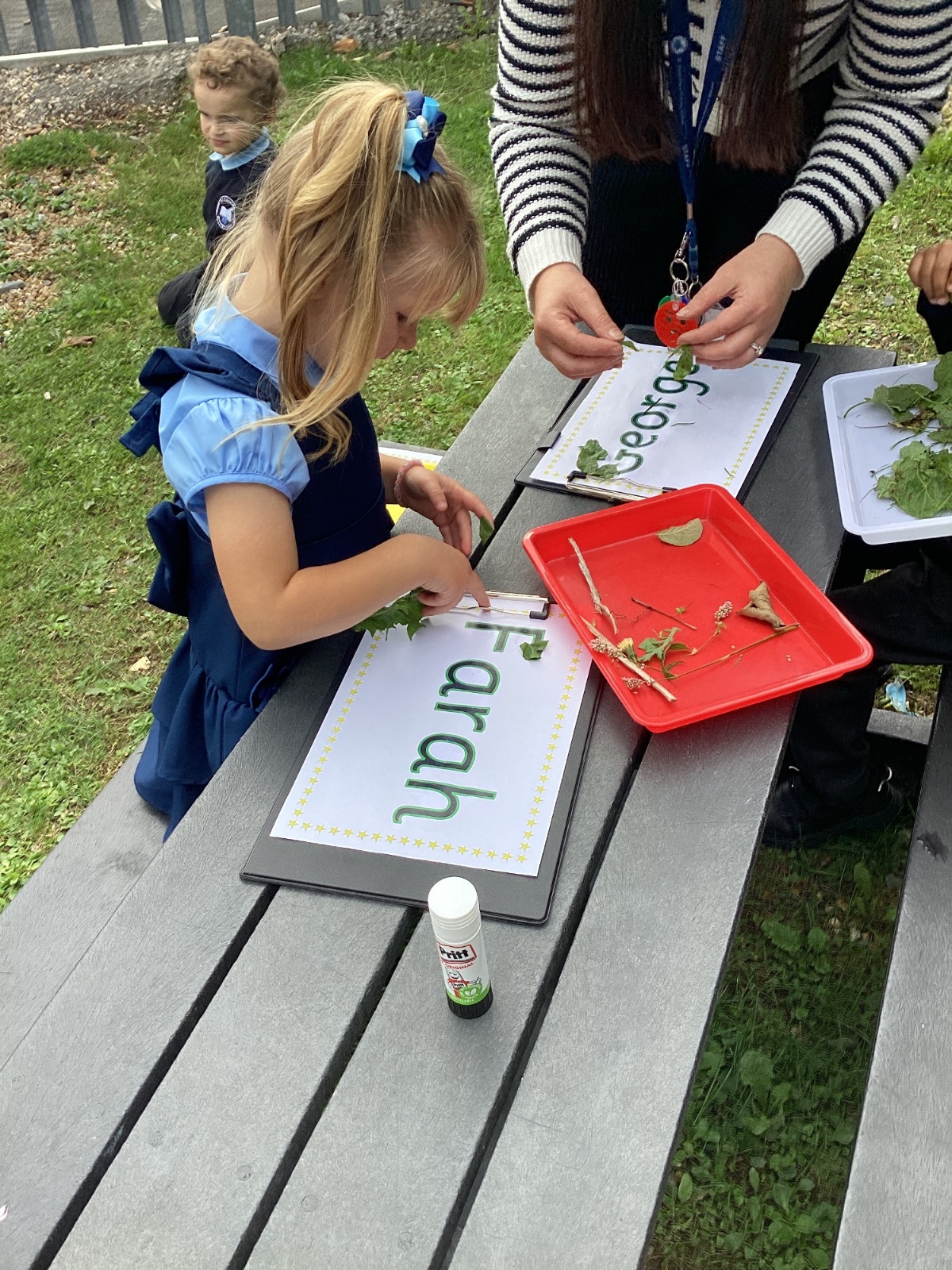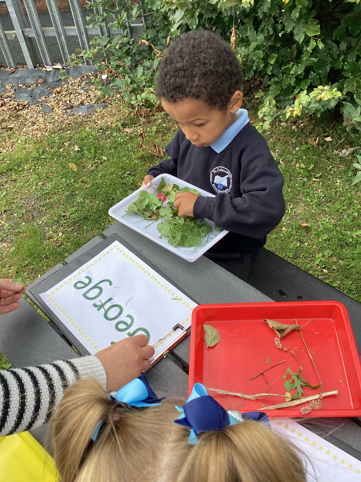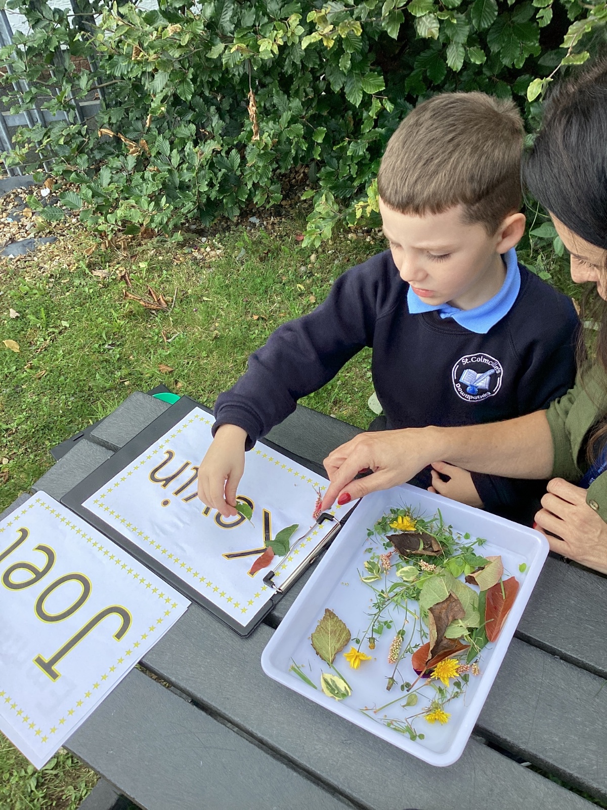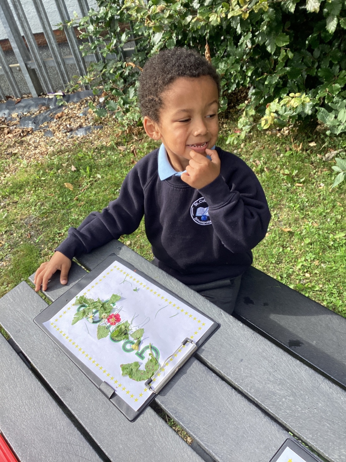 5/9/25 Grow in Love: The children explored the wonderful things that God has created in our world. We used nature to build our special names.