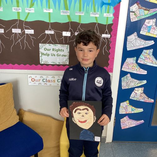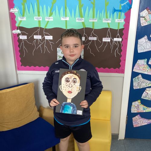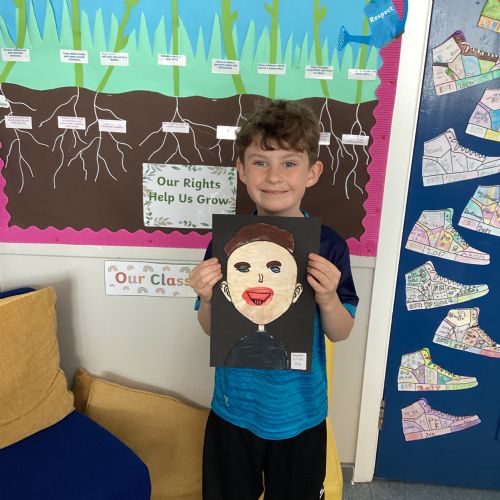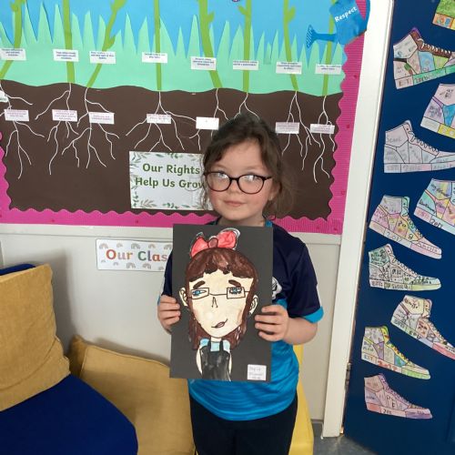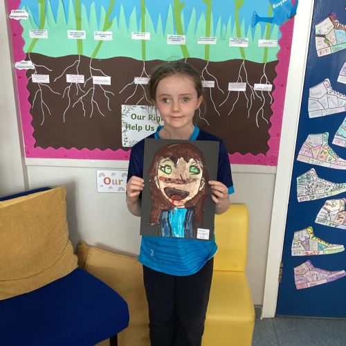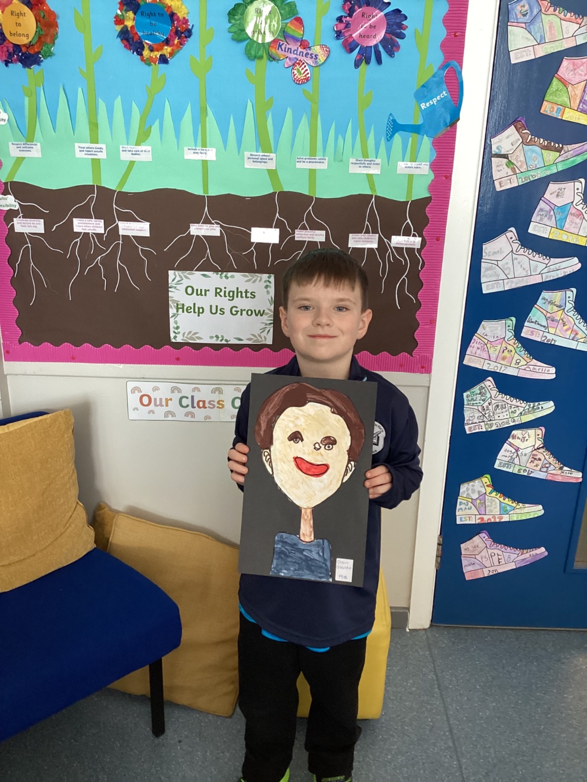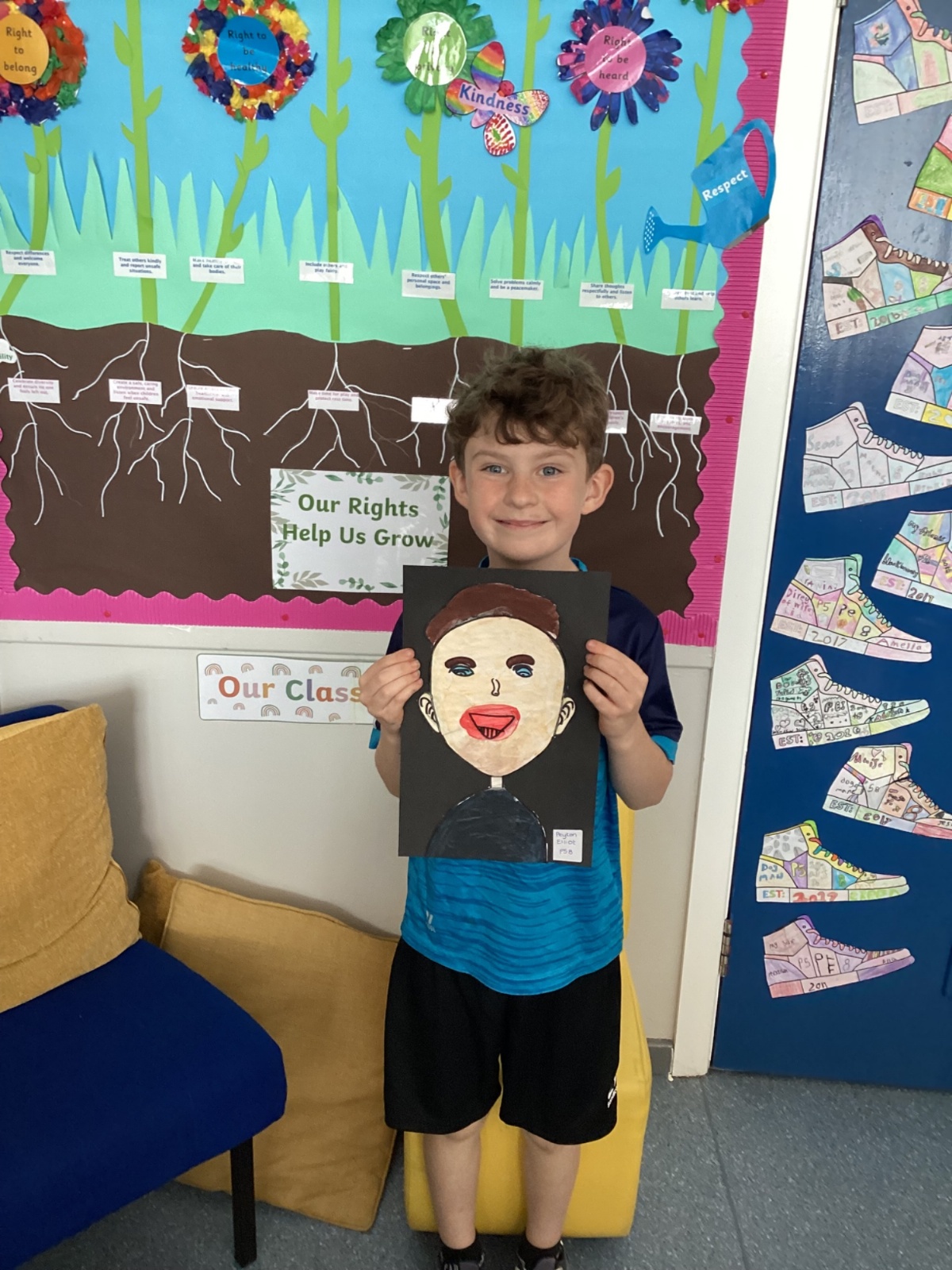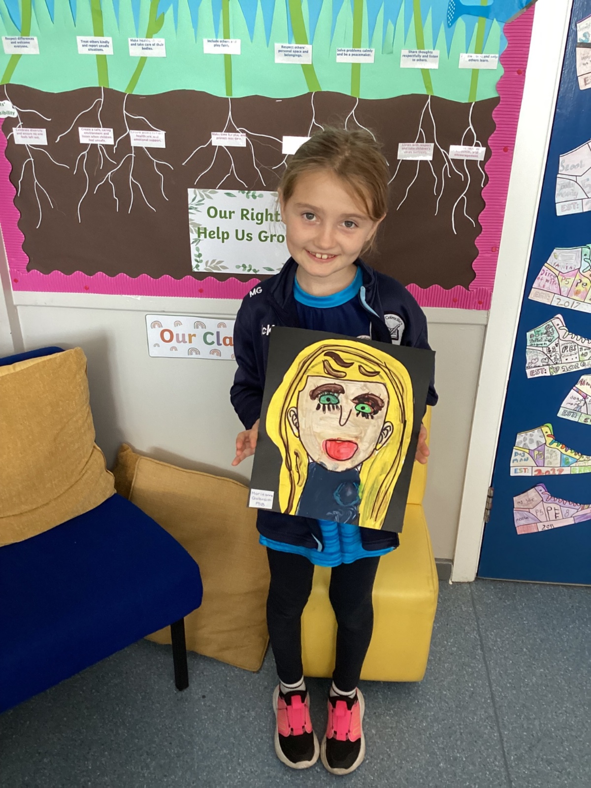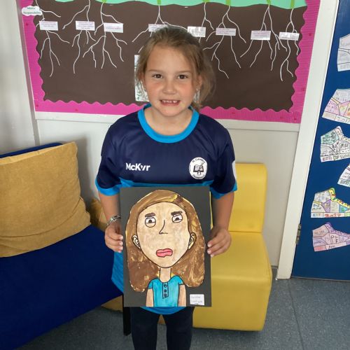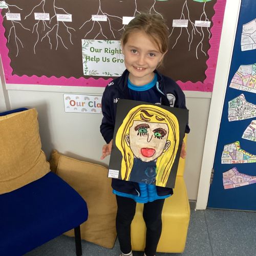 Every child painted a self portrait of themselves. These portraits will form part of our school's 50th anniversary celebration work. What an amazing job all our artists did!