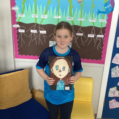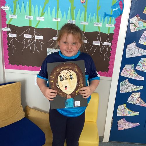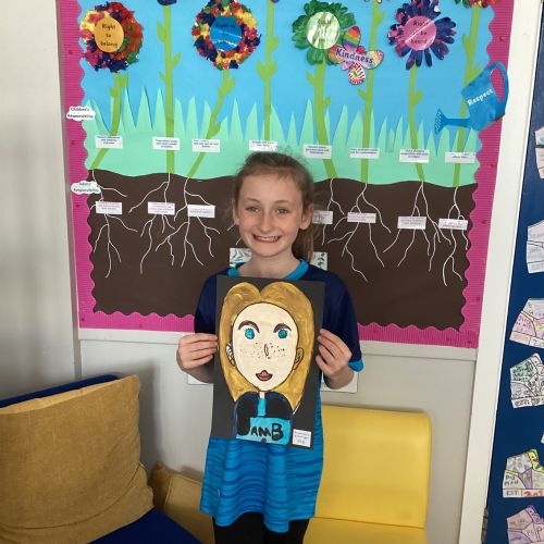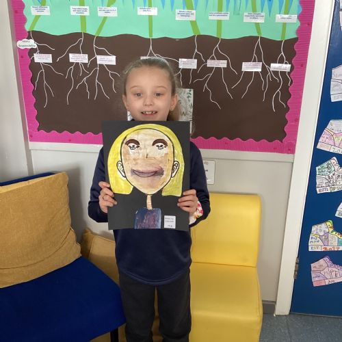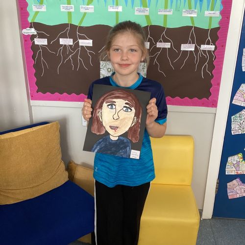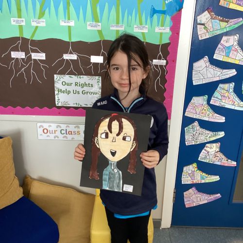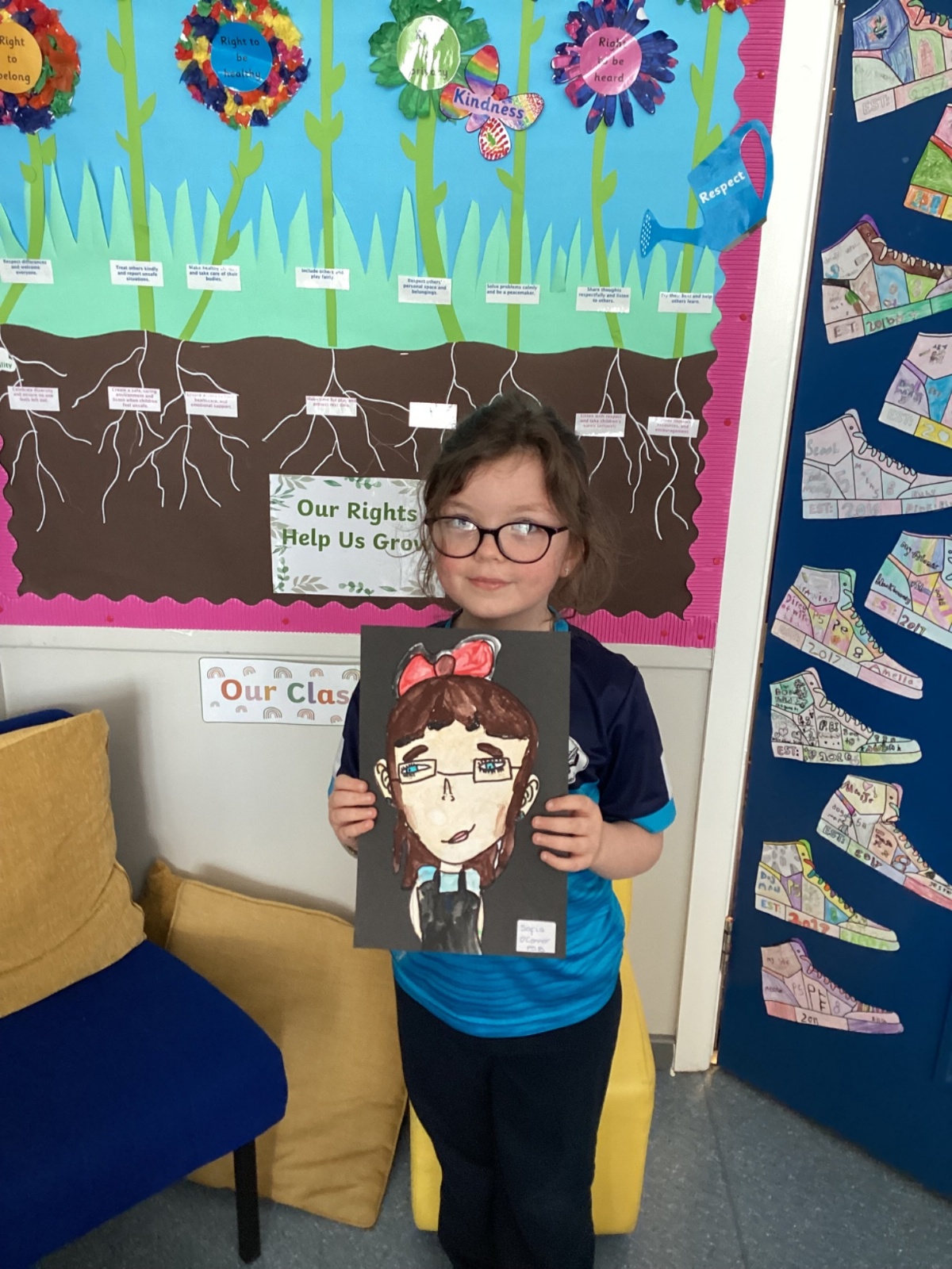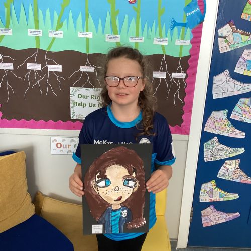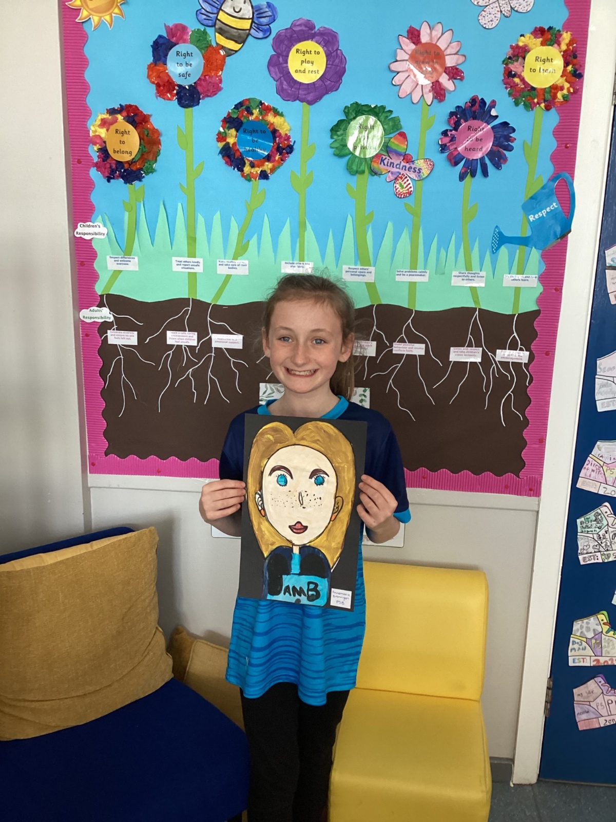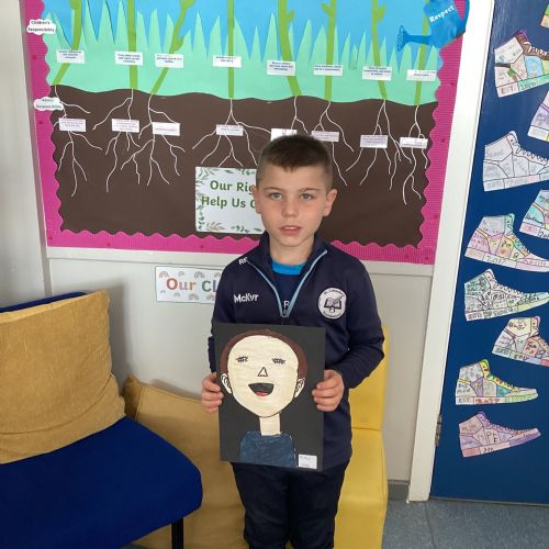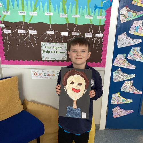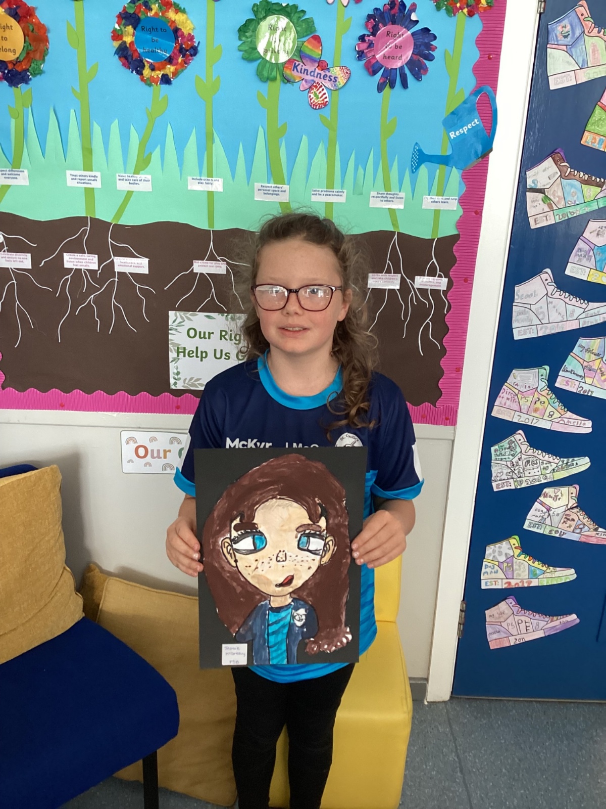Every child painted a self portrait of themselves. These portraits will form part of our school's 50th anniversary celebration work. What an amazing job all our artists did!