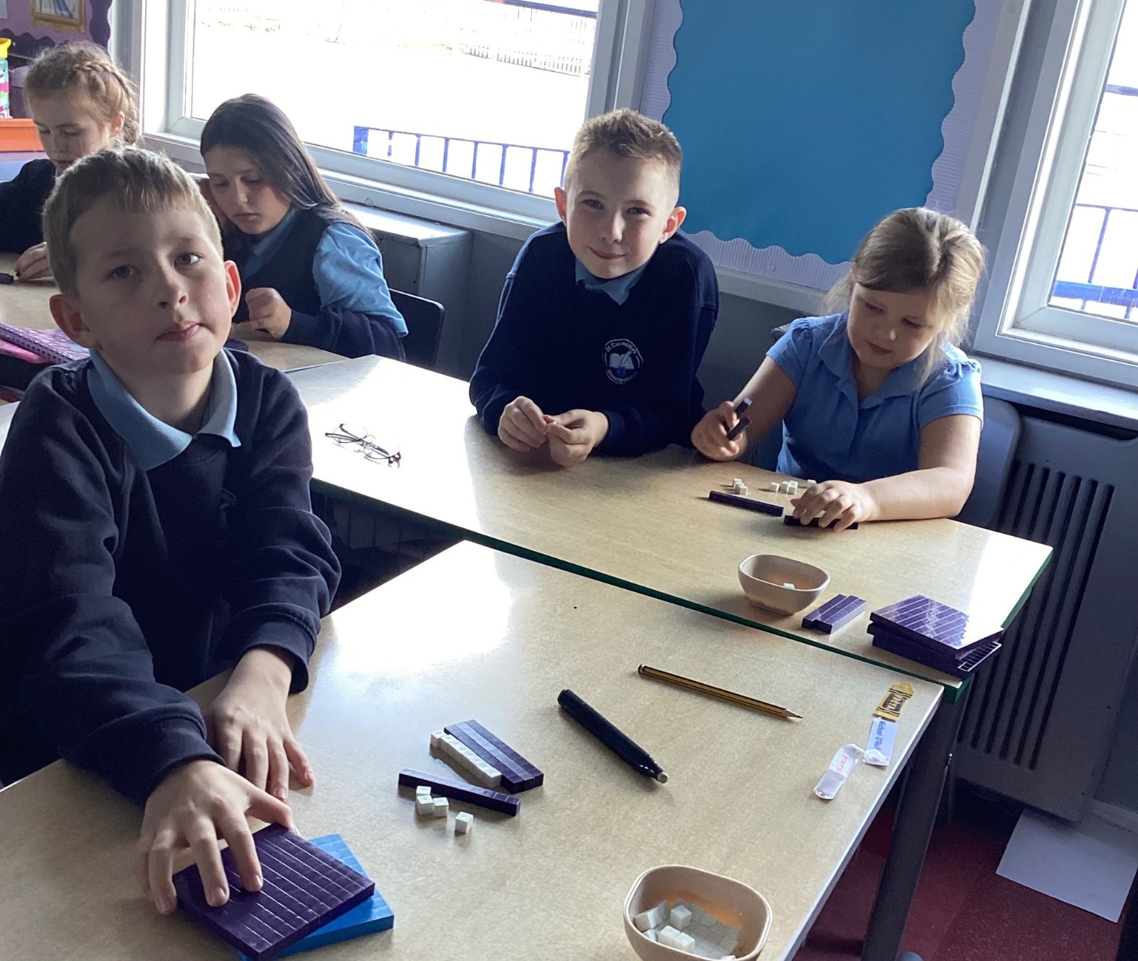We used the base 10 counters to help us see how the numbers fit into tens and ones. We learnt that sometimes the ones column adds up to more than 9, and when this happens we need to regroup by moving extra ones into the tens column. This helped us understand why regrouping is important and made it easier to solve our equations.