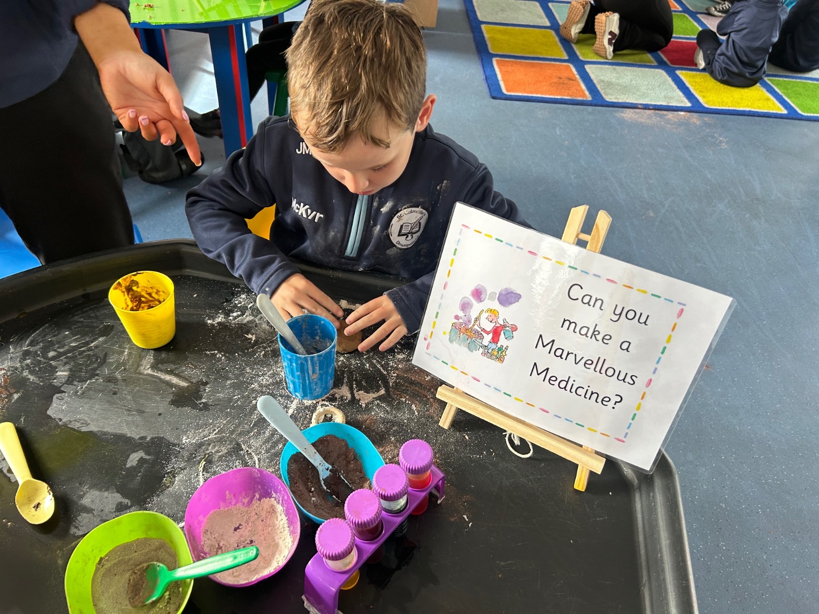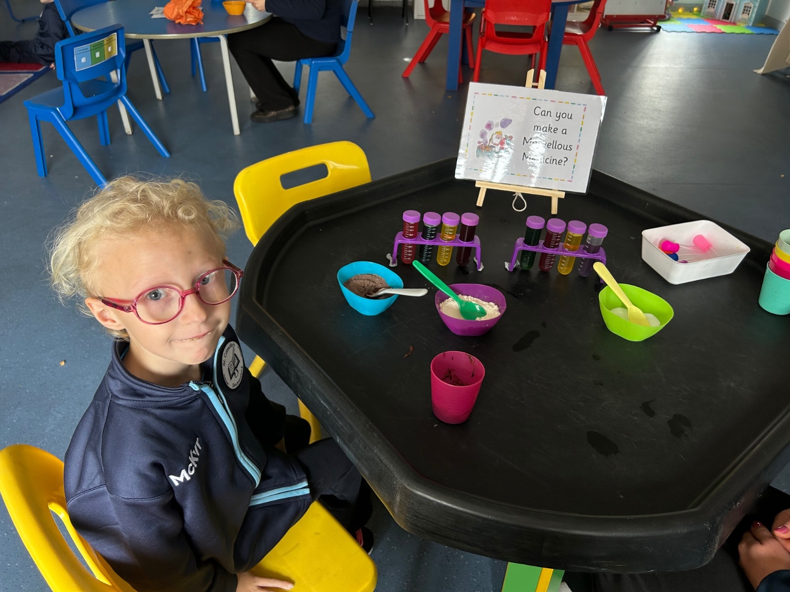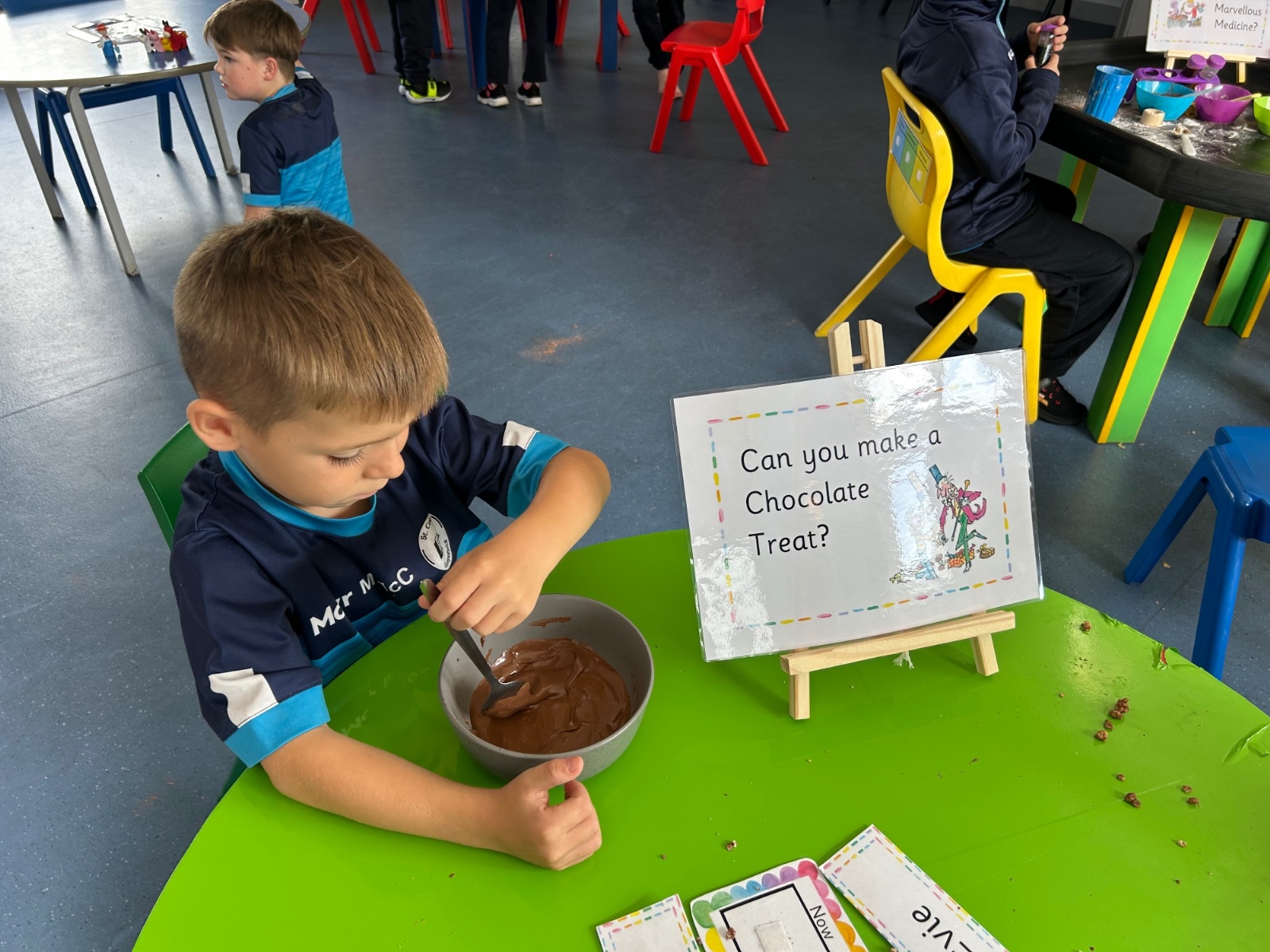 We explored a range of activities on Roald Dahl Day including making some 'marvellous medicine' and making yummy chocolate buns for Willy Wonka's factory!