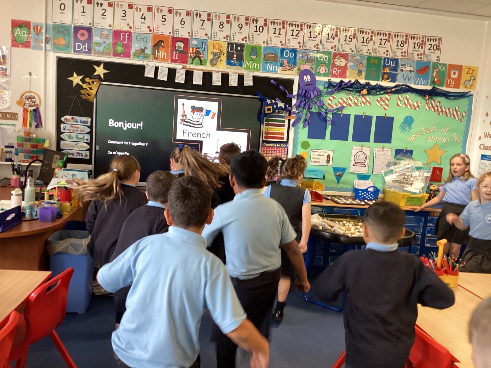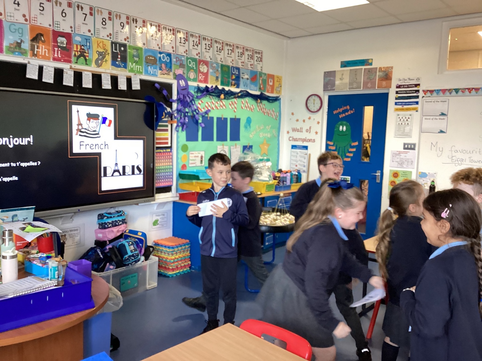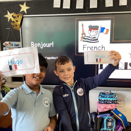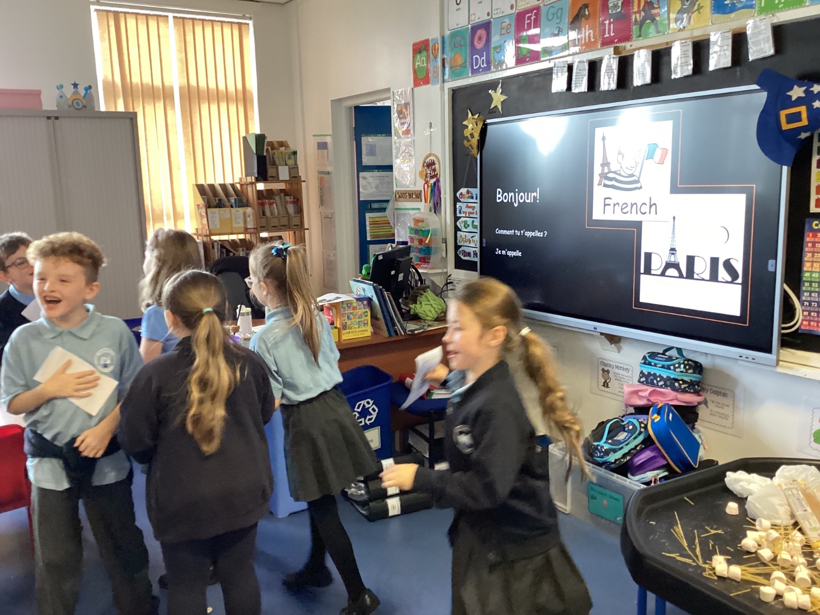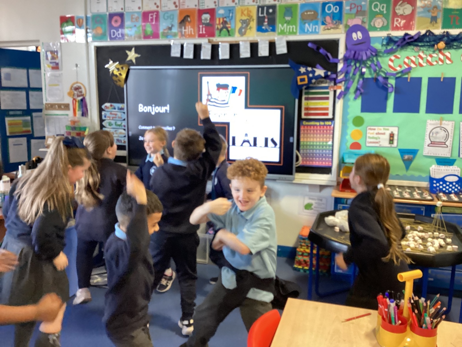 P4B put their French language skills to the test! They had to find a partner with the same French name as them by only speaking French! They then had a try at dancing the Can Can to celebrate their success! P4B are also very lucky to have some amazing classmates from Bulgaria and India who taught the class some words from their languages! Lots of fun was had by all!