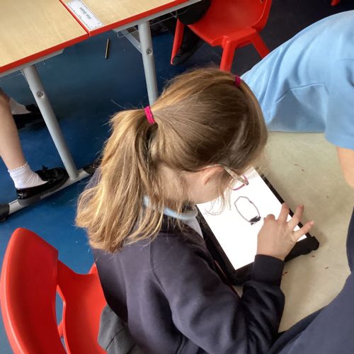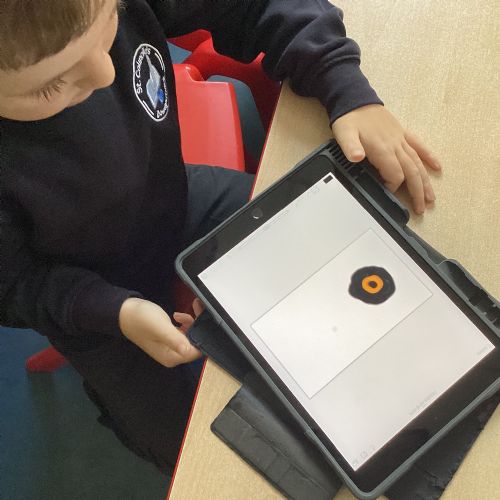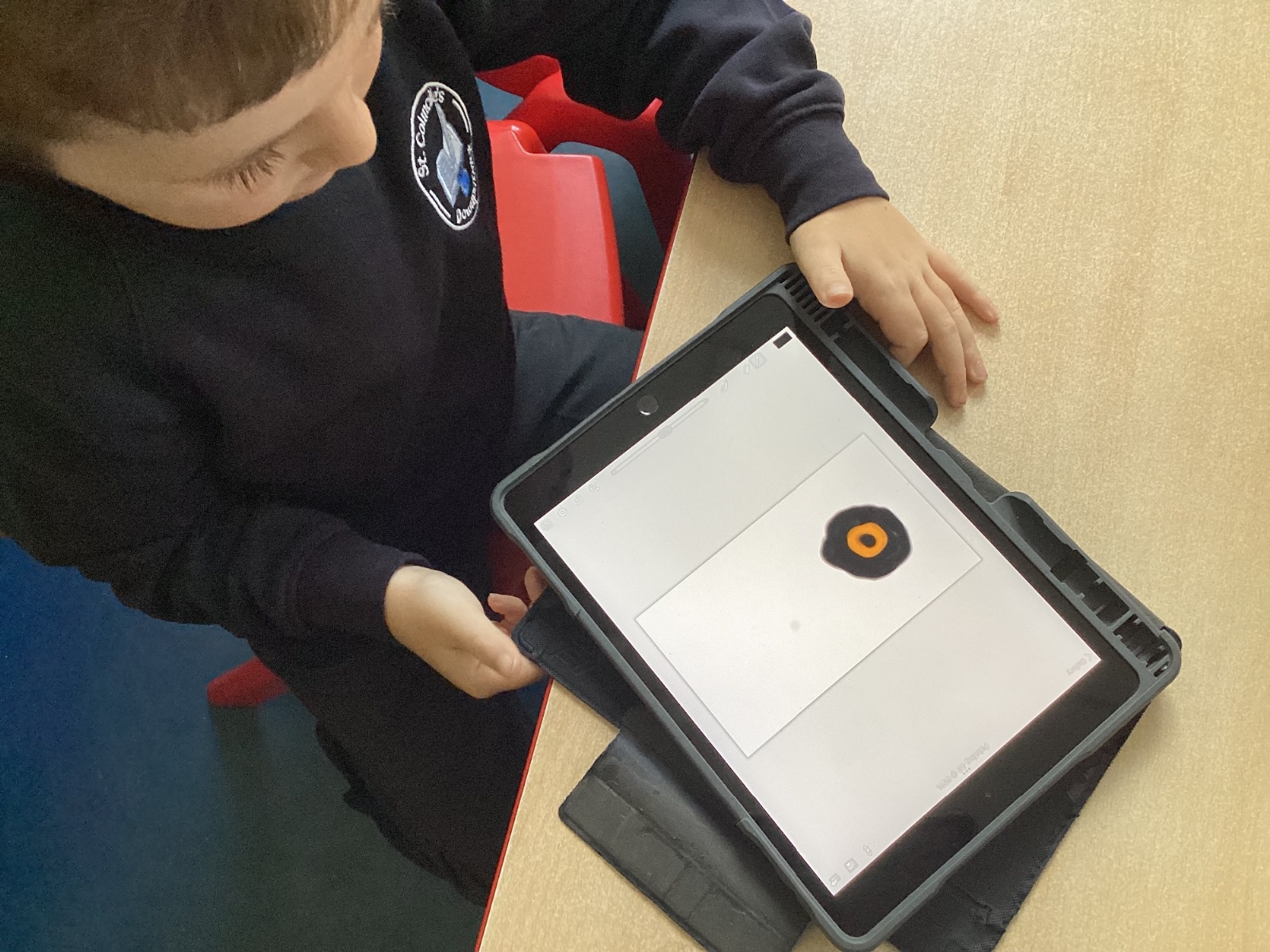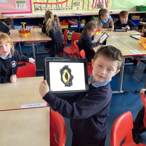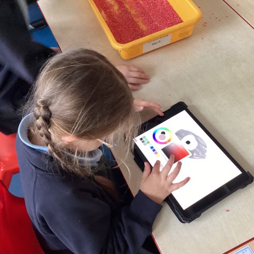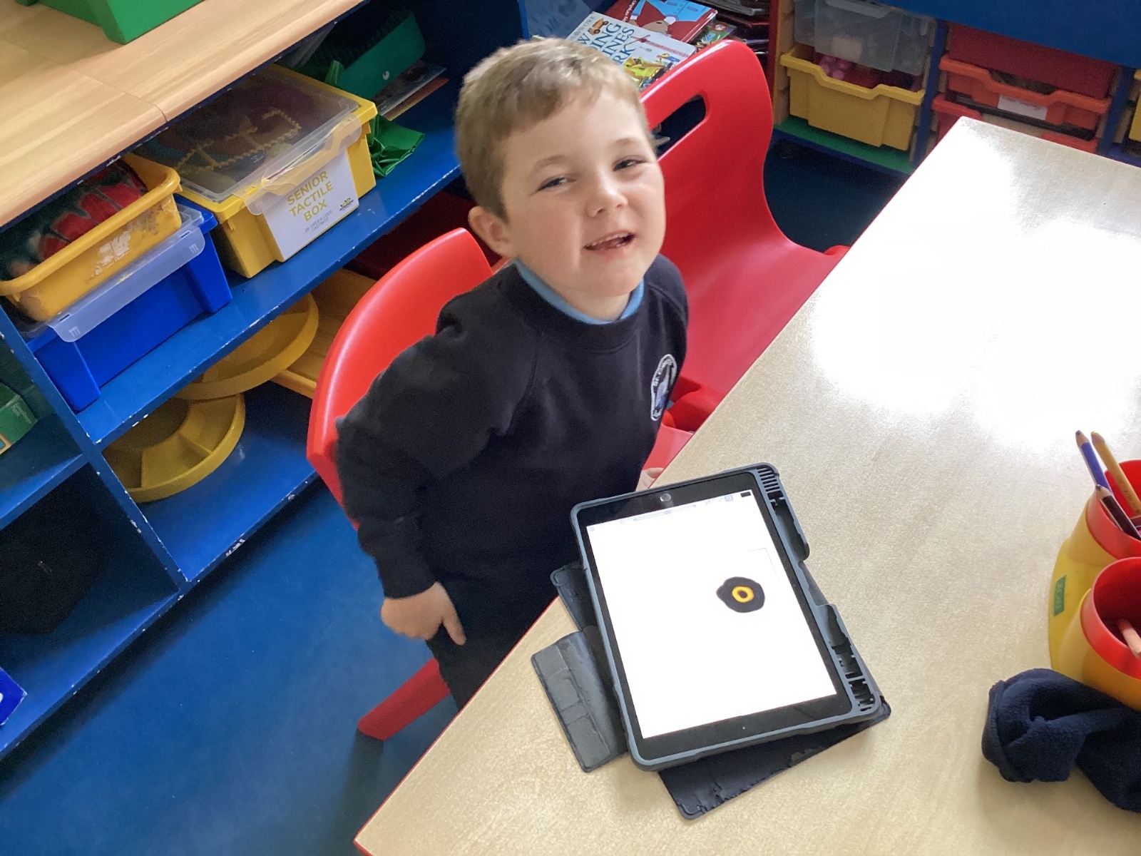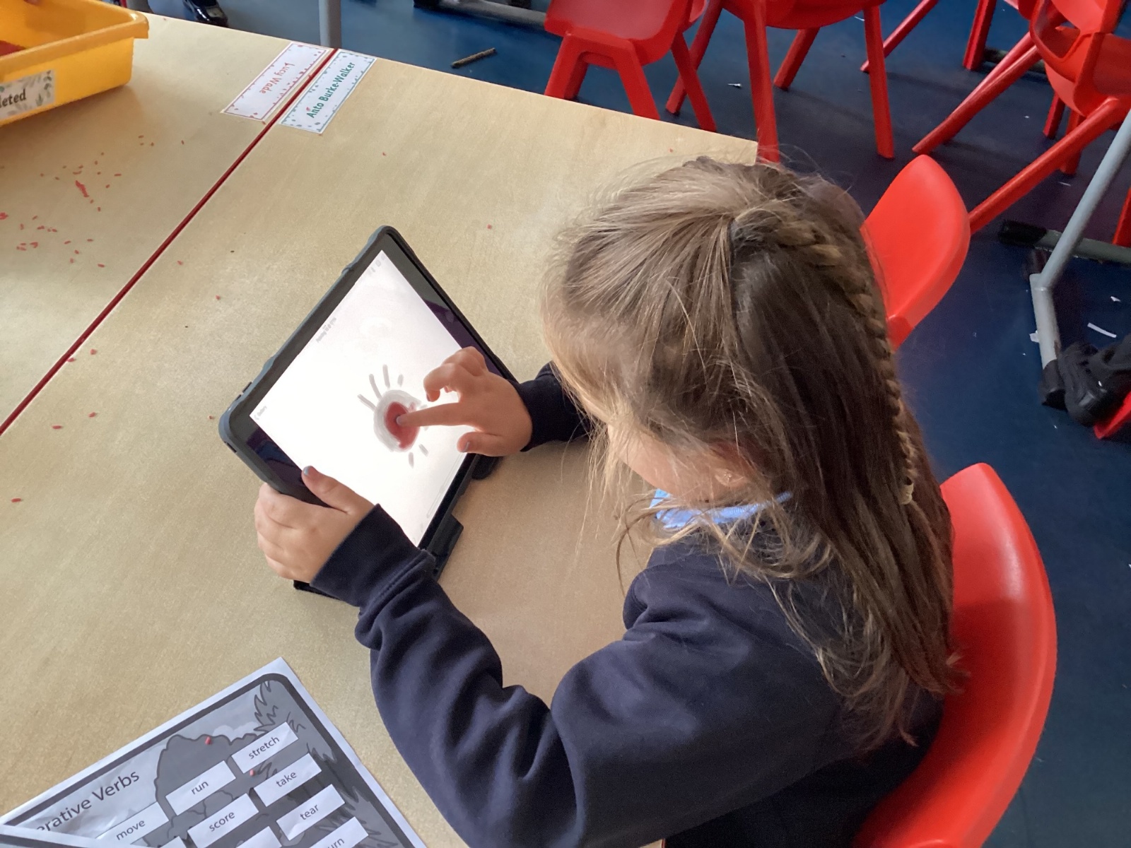 Today, the children used iPads to investigate the function of various animal eyes and how they differ from human eyes. Drawing on their research, they then used the Brushes Redux app to create digital artwork of their chosen animal’s eye, incorporating the unique features they had discovered.