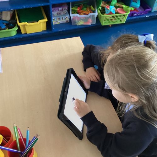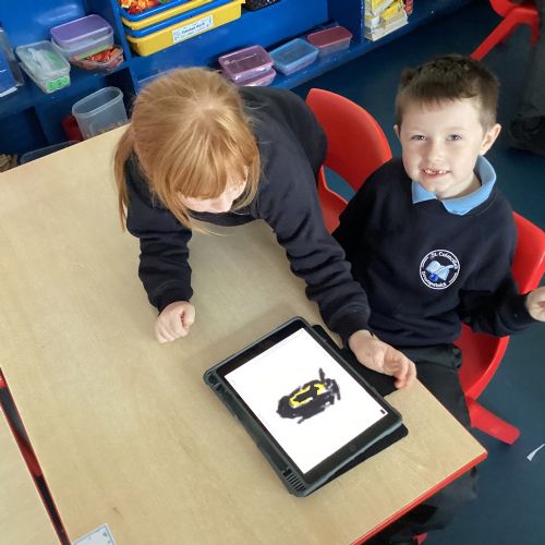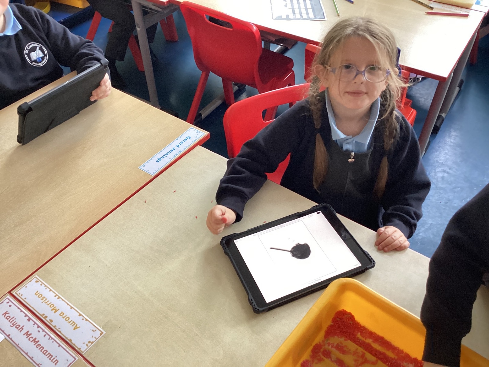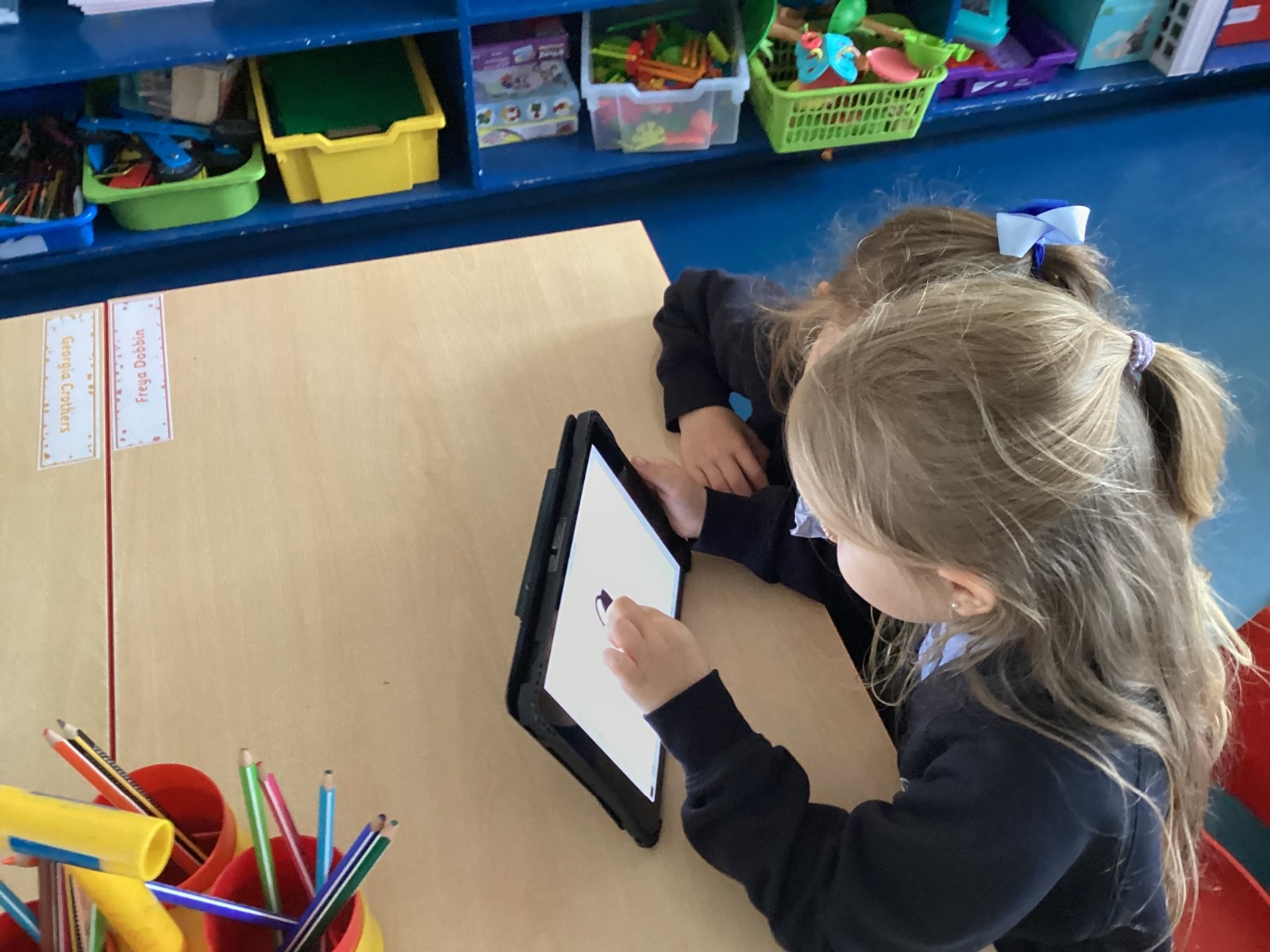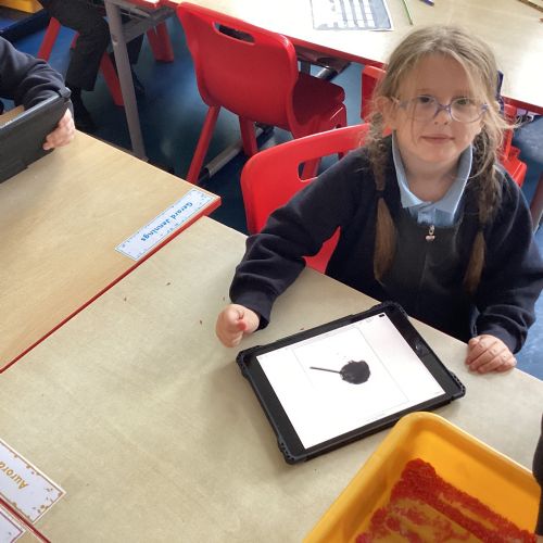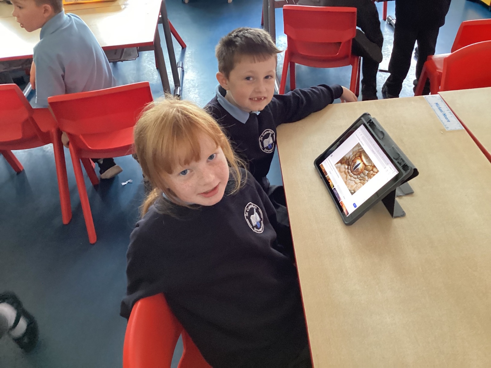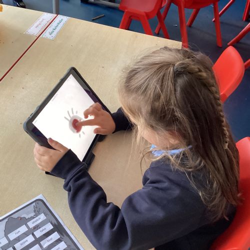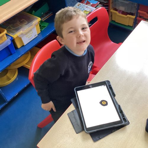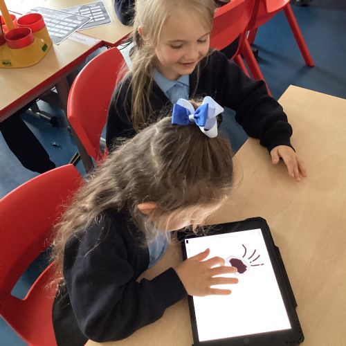 Today, the children used iPads to investigate the function of various animal eyes and how they differ from human eyes. Drawing on their research, they then used the Brushes Redux app to create digital artwork of their chosen animal’s eye, incorporating the unique features they had discovered.