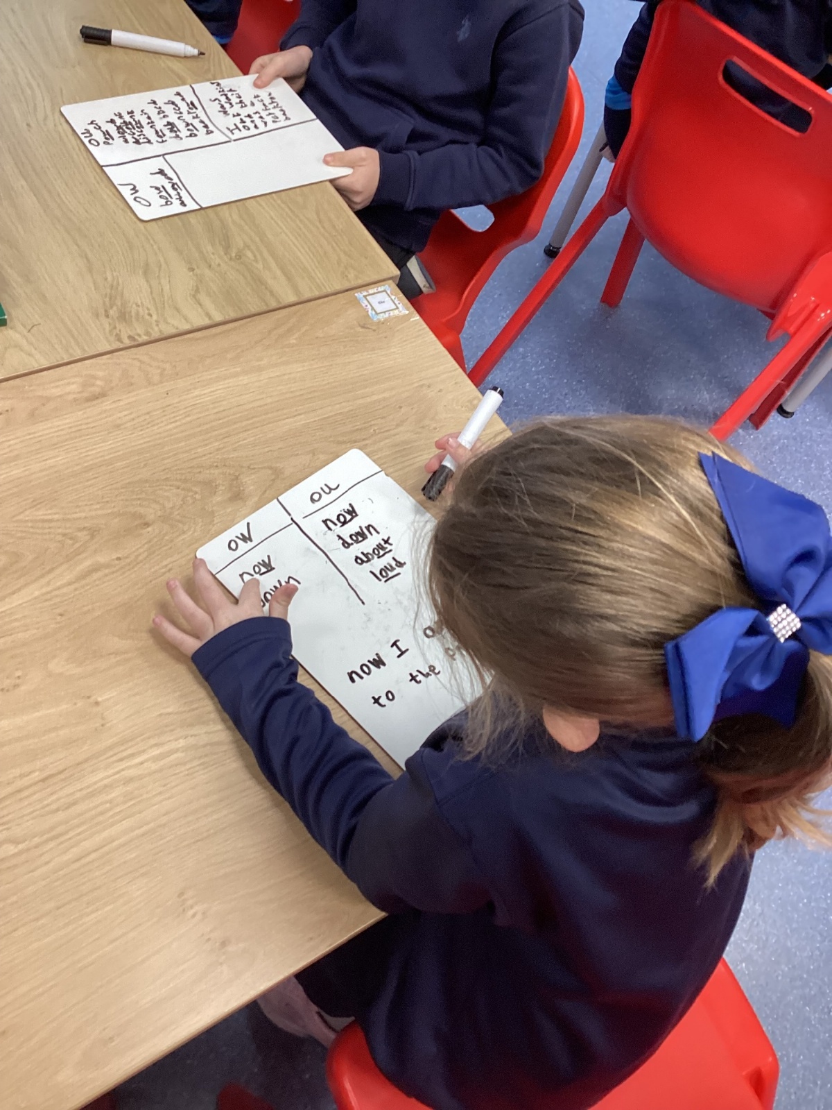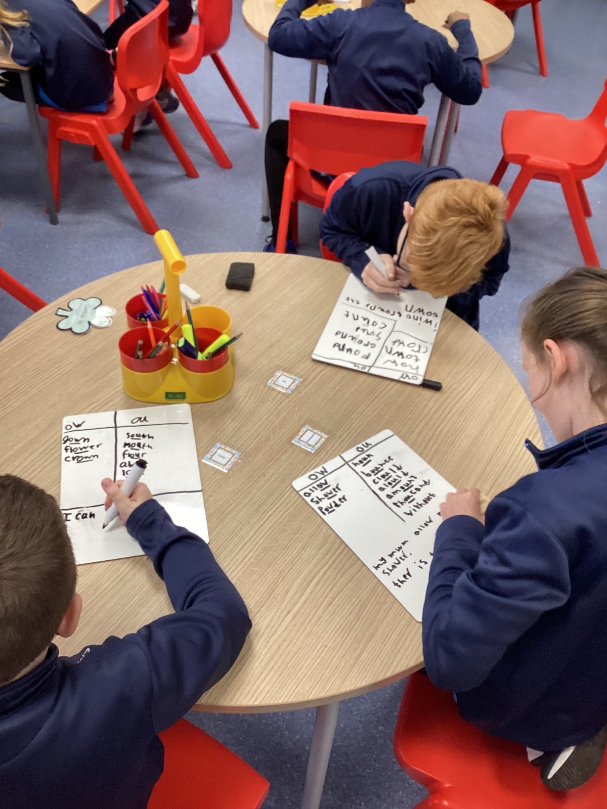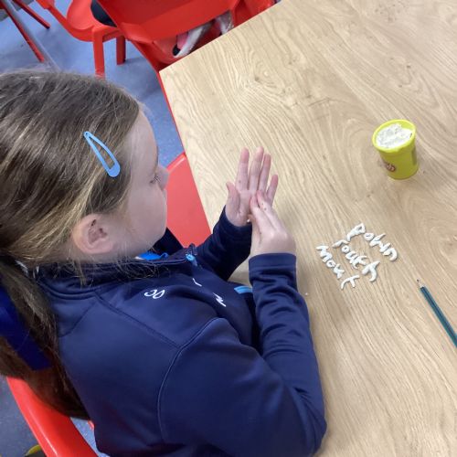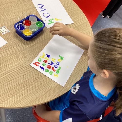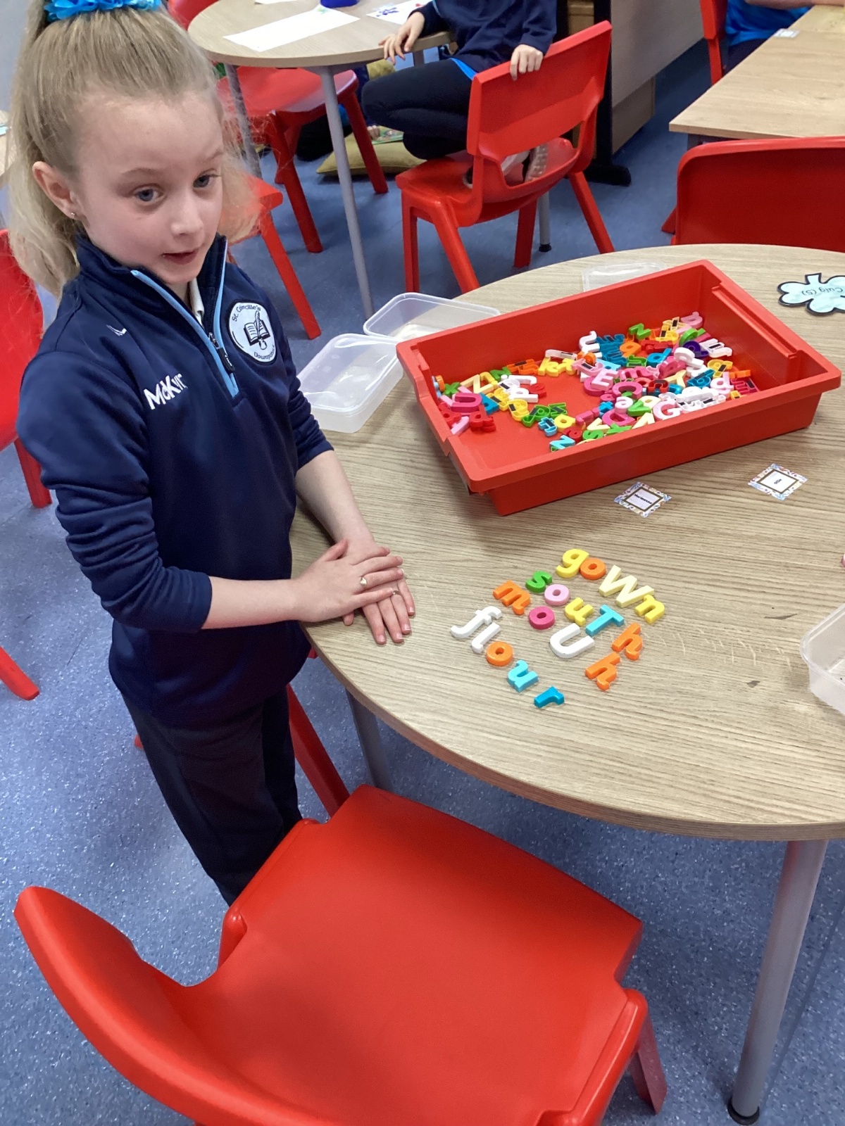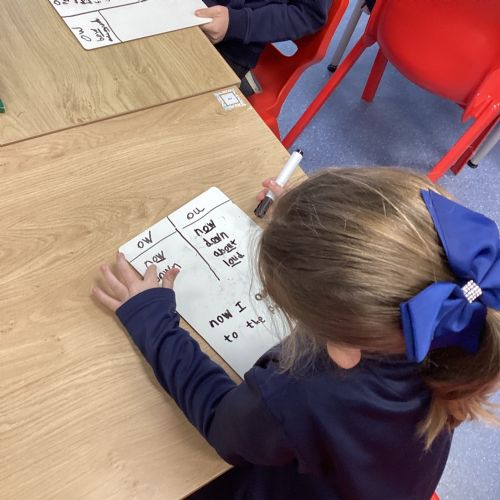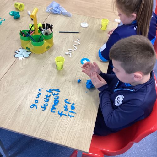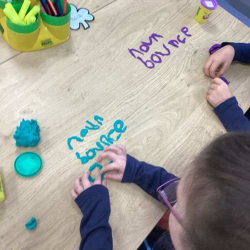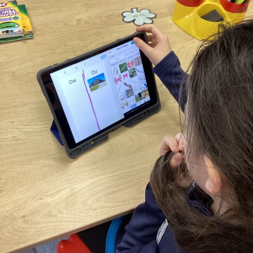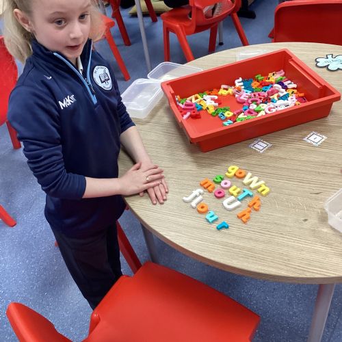 Our sound this week is /ow/. Today the children explored the different ways we can make the ow sound (ou and ow). They participated in multi-sensory practical activities to assist them in learning how to identify the /ow/ sound and spell their spelling words. These included creating a pic collage with /ow/ pictures as well as using play dough, paint and magnetic letters.