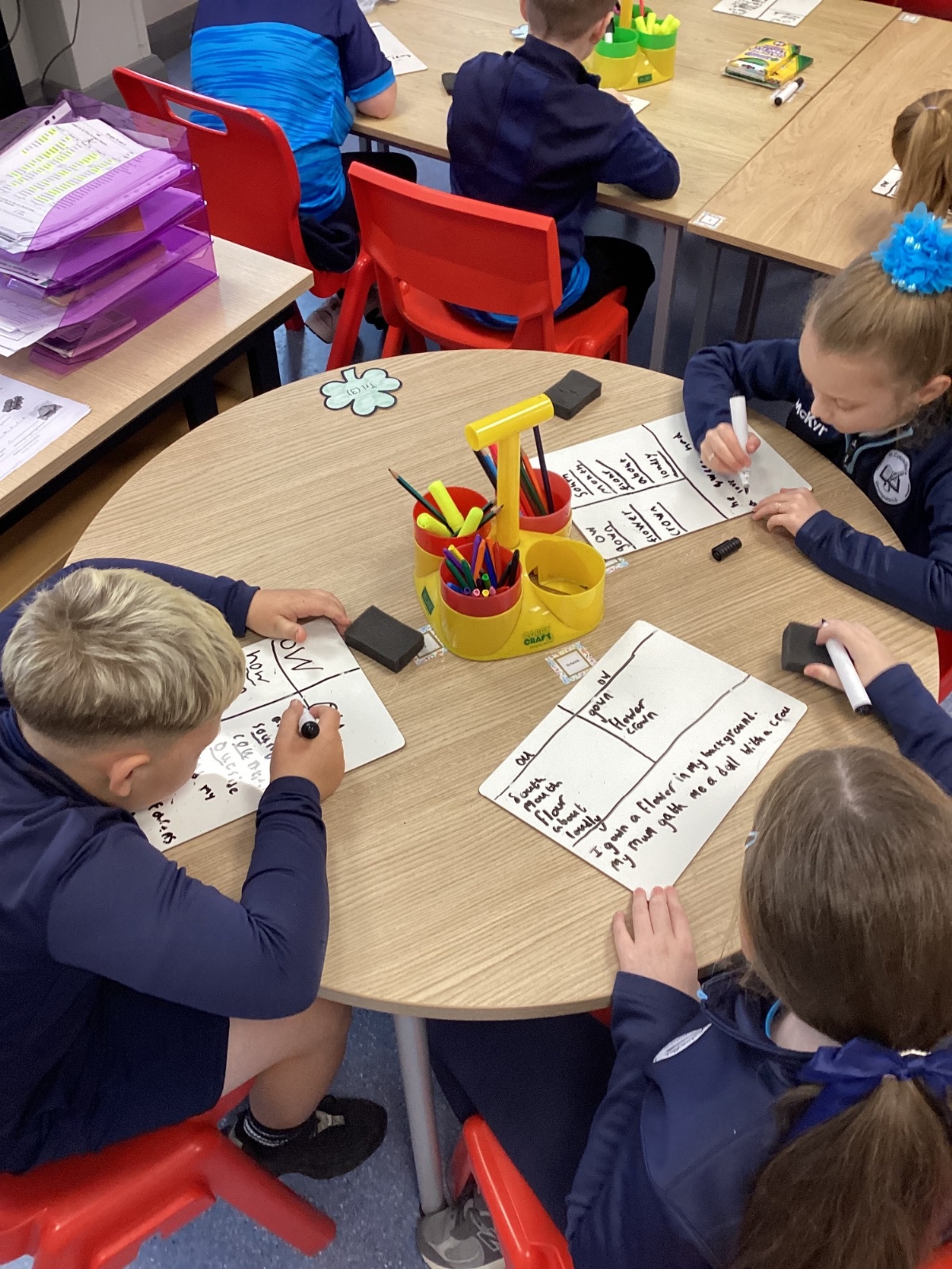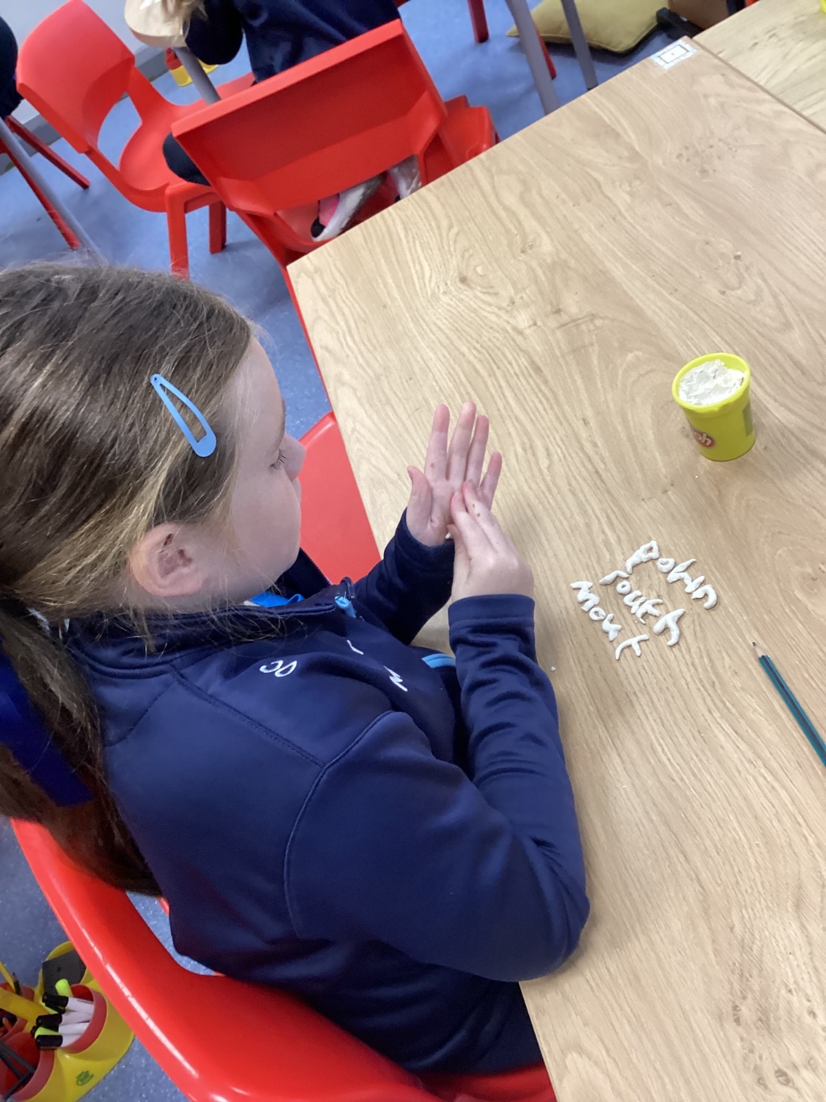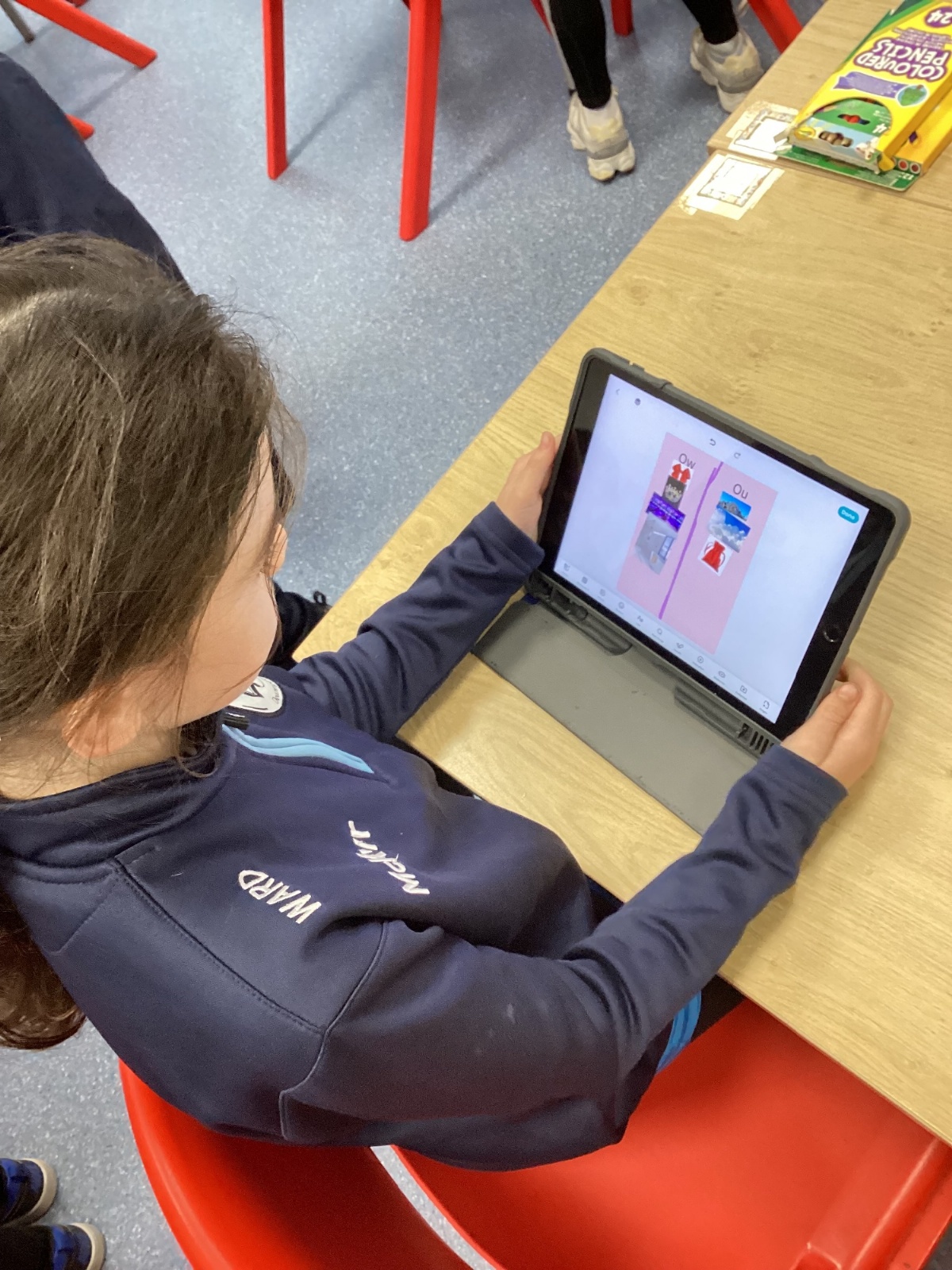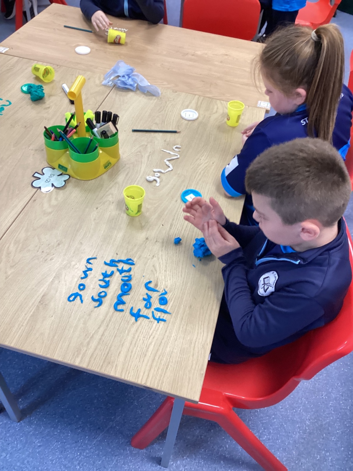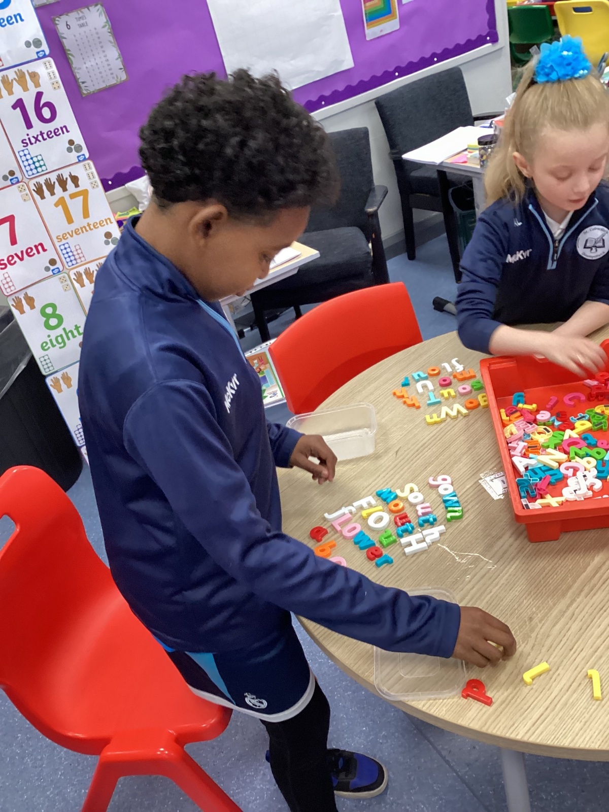 Our sound this week is /ow/. Today the children explored the different ways we can make the ow sound (ou and ow). They participated in multi-sensory practical activities to assist them in learning how to identify the /ow/ sound and spell their spelling words. These included creating a pic collage with /ow/ pictures as well as using play dough, paint and magnetic letters.