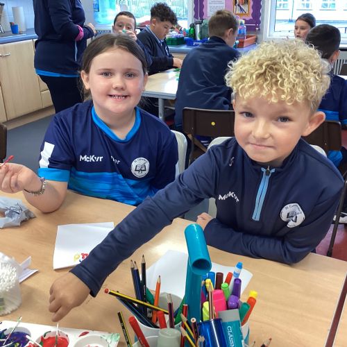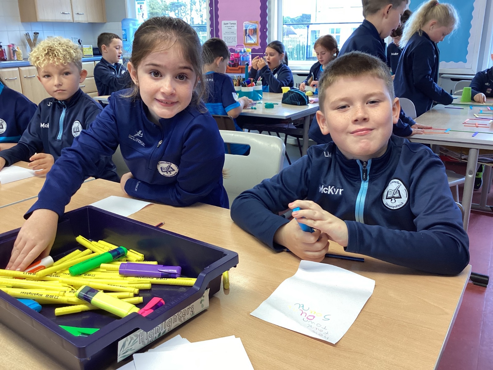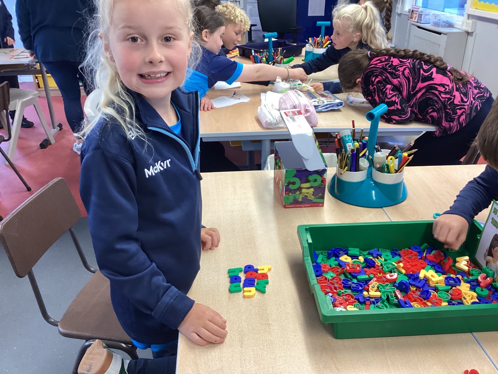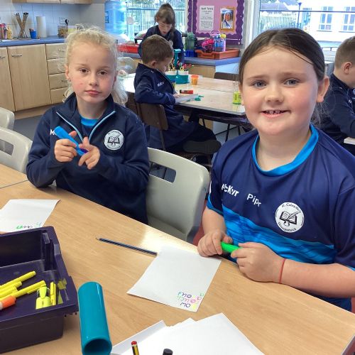 Our sound of the week is /ow/. Today P5A explored the different ways we can make the /ow/ sound (ow and ou). They moved around the classroom, trying lots of different multi-sensory practical activities to help them identify and spell words with the /ow/. Painting stations, rainbow sticks, rainbow writing, magnetic letters and play dough.
