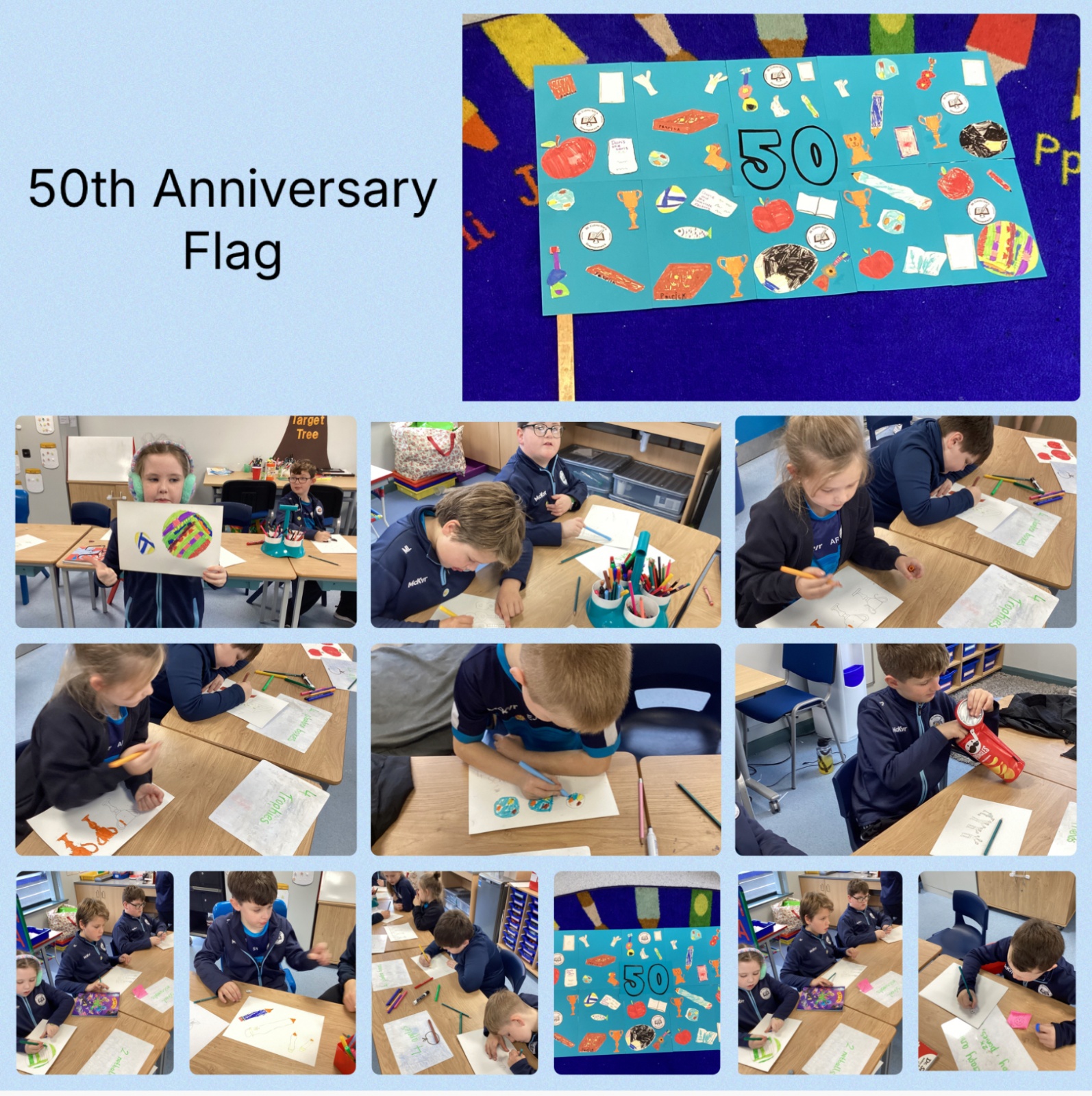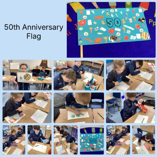 We have been celebrating the 50th Anniversary of our school this week. We have had lots of fun creating poetry, sharing our favourite memories, designing biscuits and creating a model of our school. All week we have enjoyed working together as a team, discussing and sharing our favourite memories about school and going on the bouncy castles. We rounded off the fun with our class party!