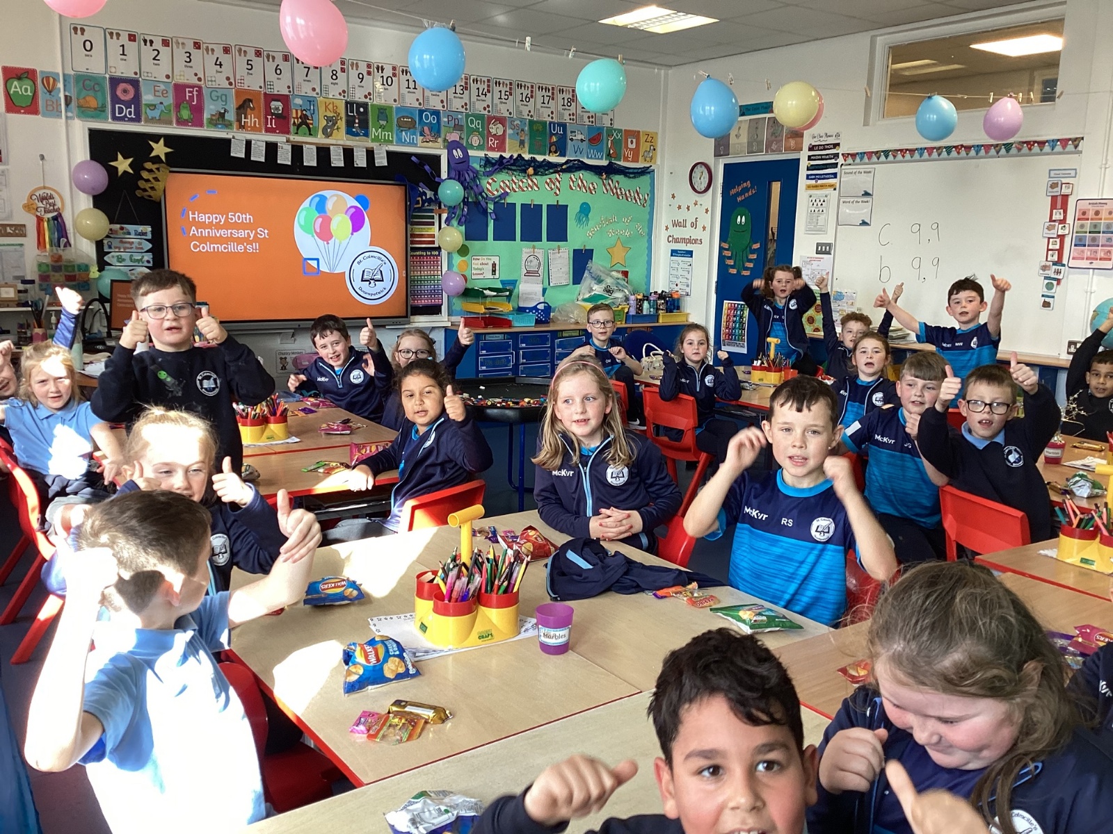 As part of our week long celebrations for the 50th anniversary of St Colmcille's P4 had a class part with balloons and special treats!
