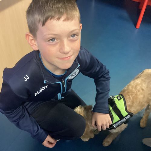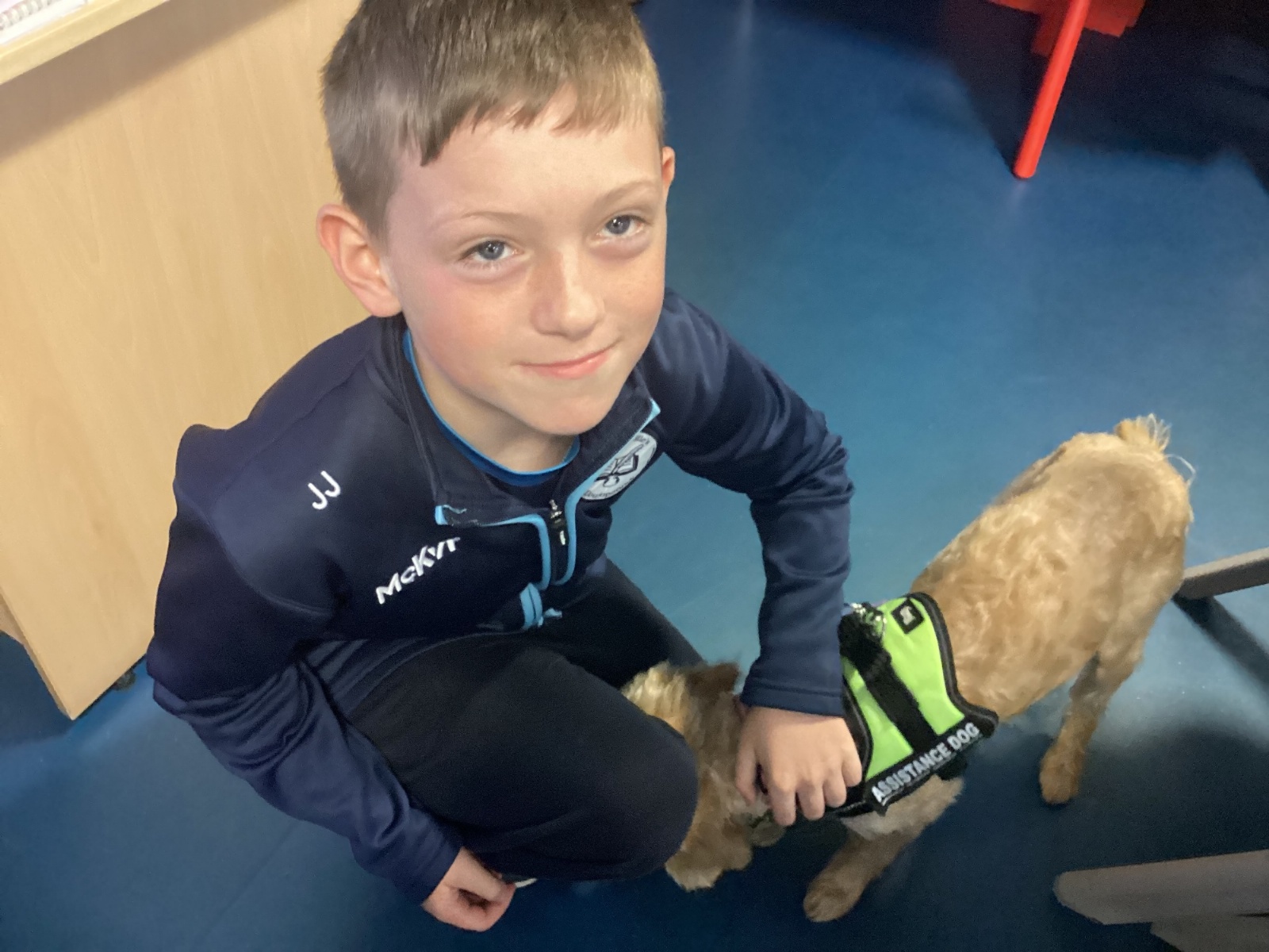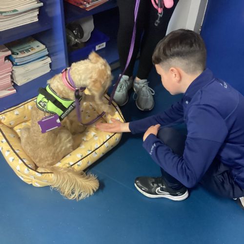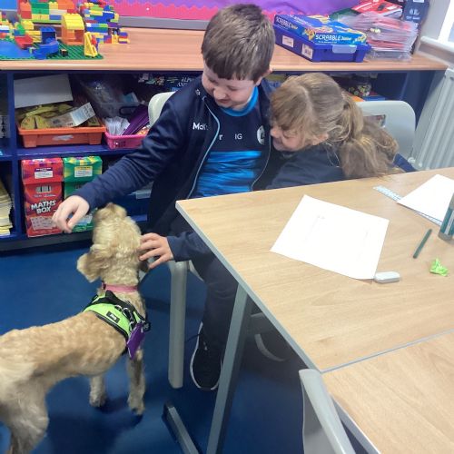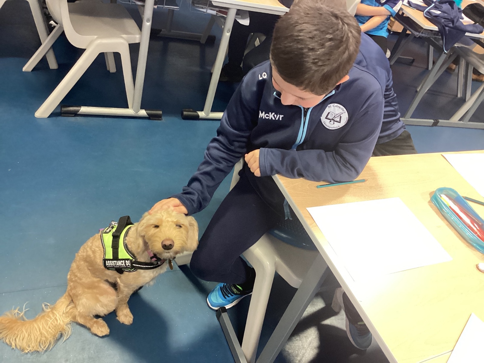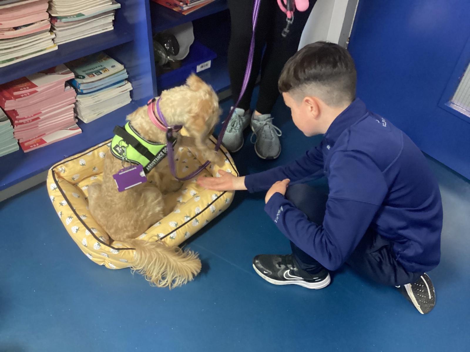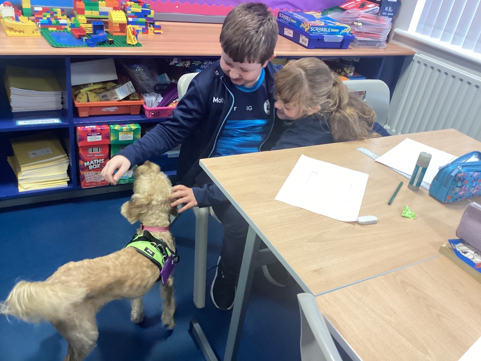 P6B were delighted to receive a visit from Ruby this morning. Ruby will be joining us each week to support and calm the boys and girls as they learn. The pupils learnt about Ruby's Rules and were mindful of these during her time in our classroom.
