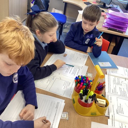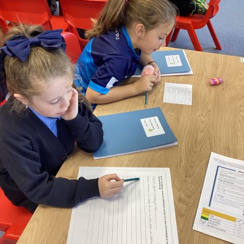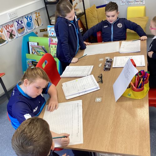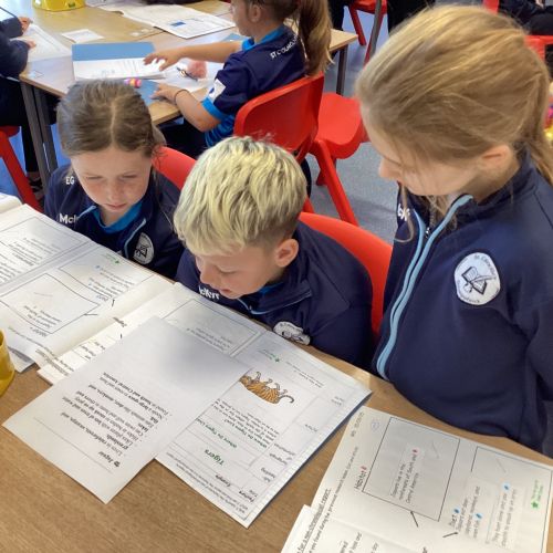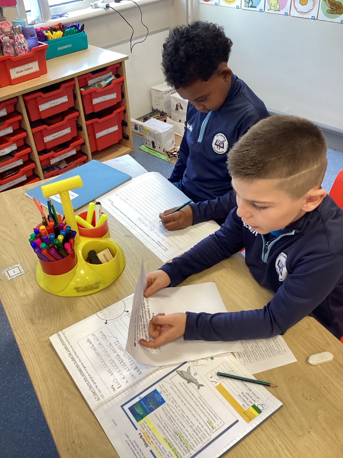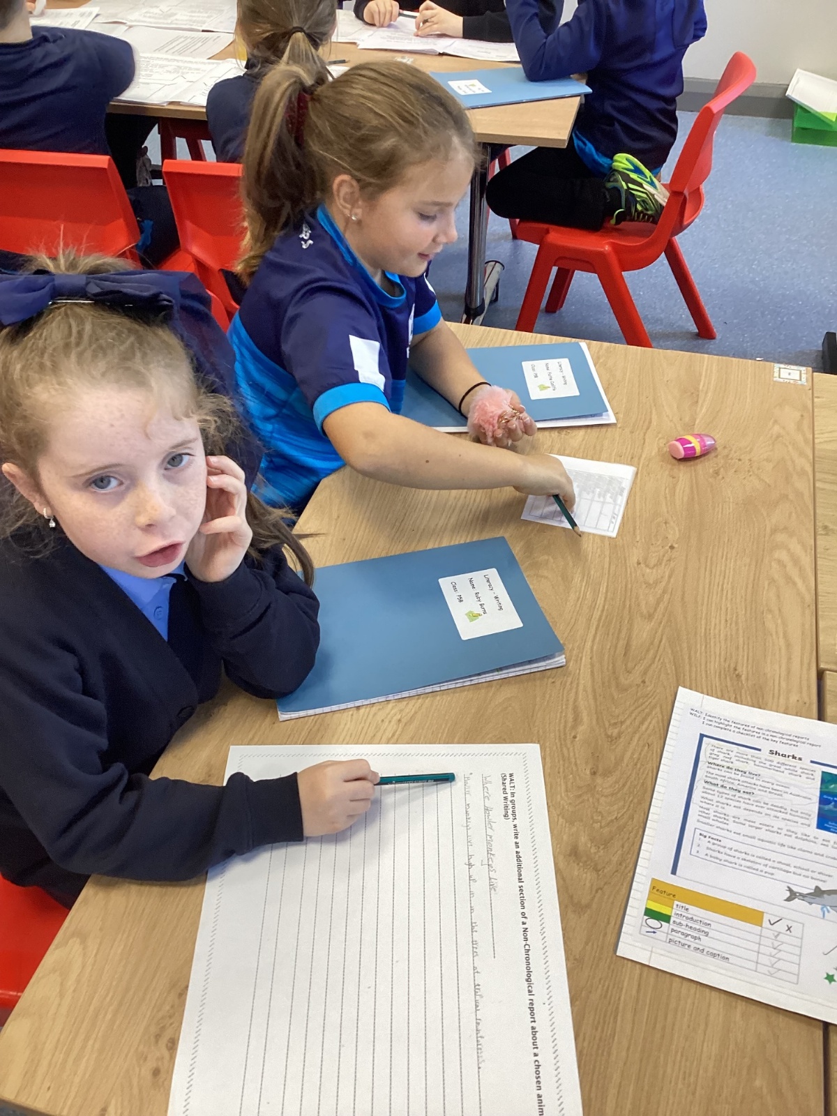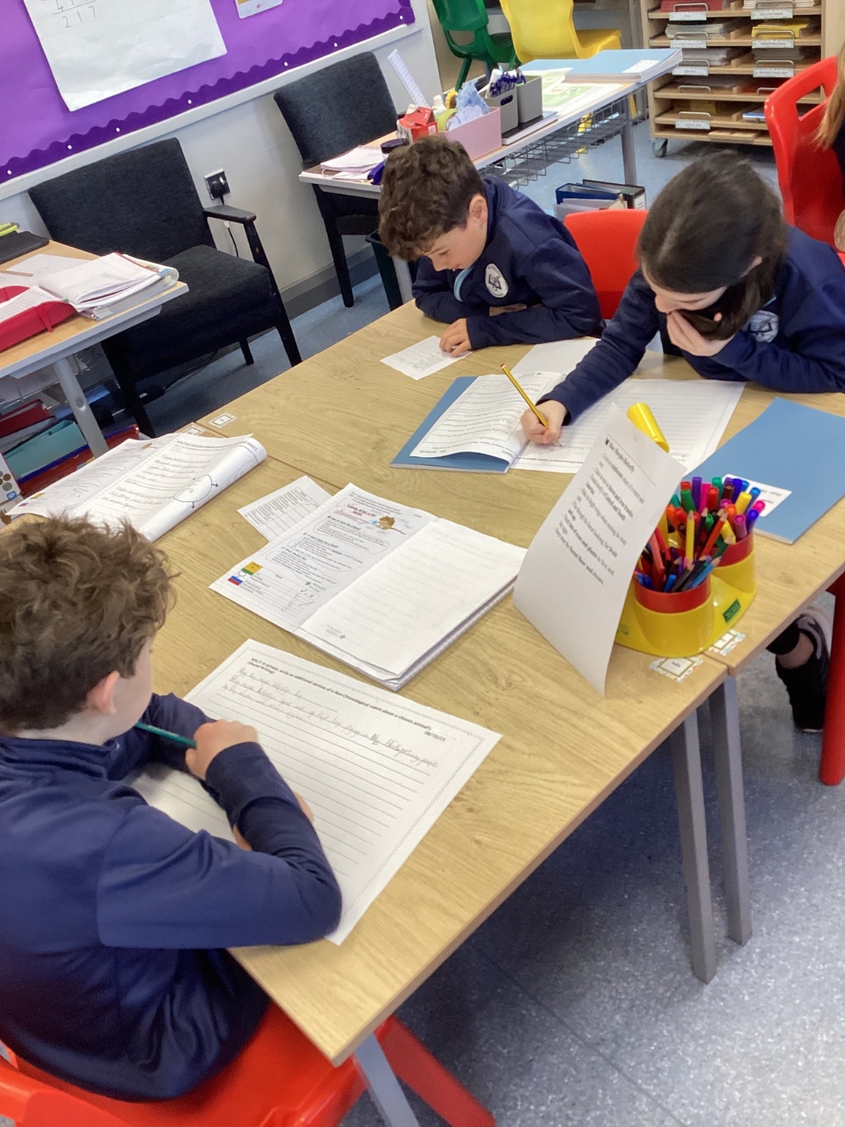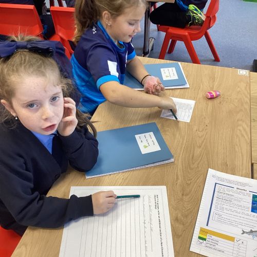 Pupils worked collaboratively in small groups to craft a paragraph about the habitat of a rainforest animal. Using research they had previously gathered on iPads and from information books, children discussed key facts, shared ideas, and supported one another in structuring their writing. The guided write encouraged teamwork, critical thinking, and creativity, as each group brought their chosen animal’s environment to life through rich vocabulary and detailed descriptions.
