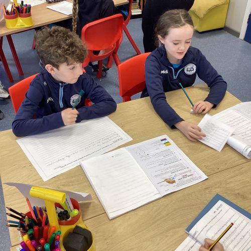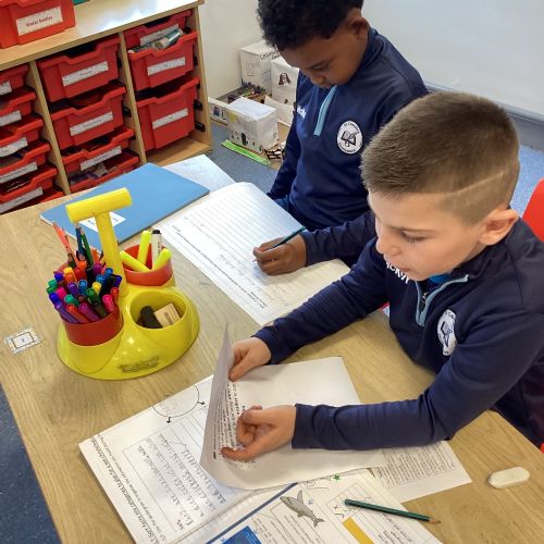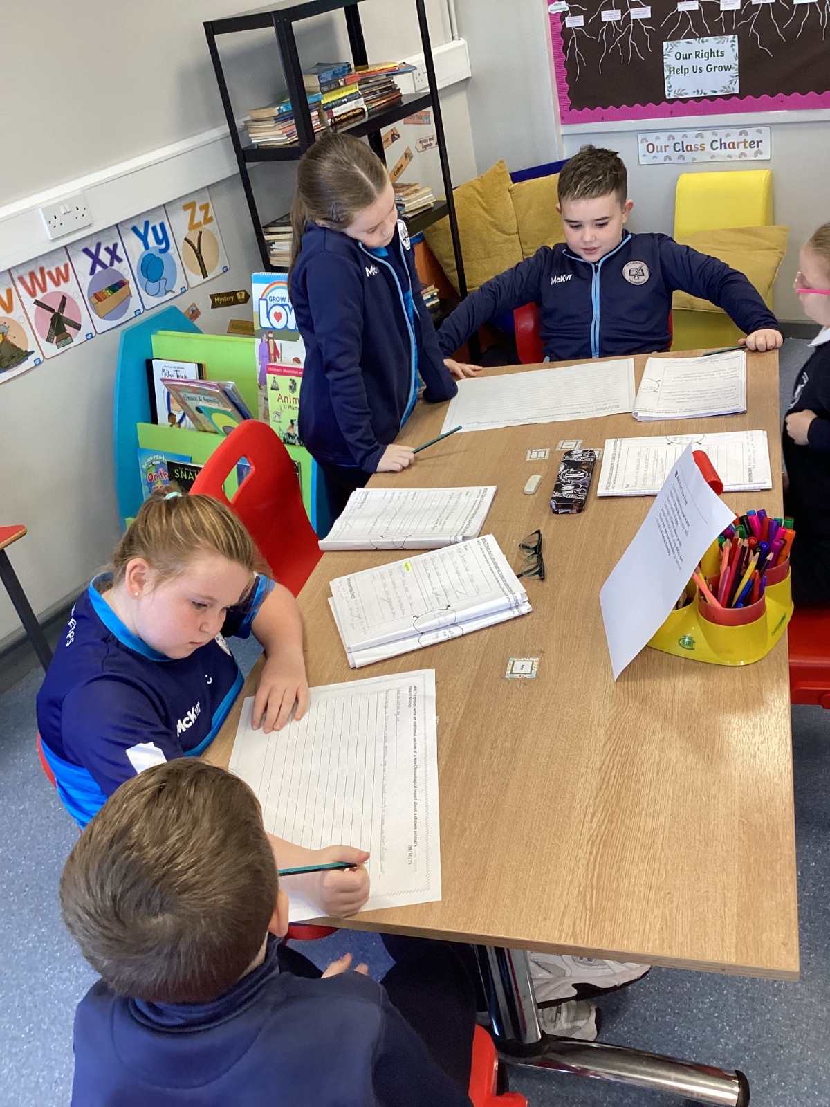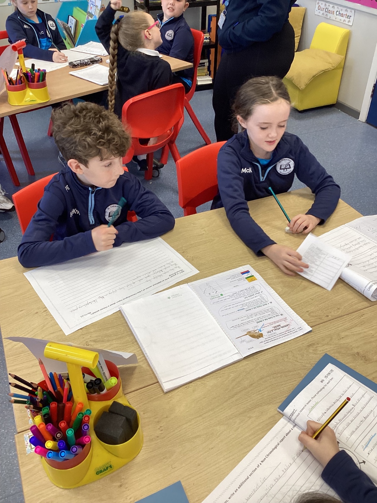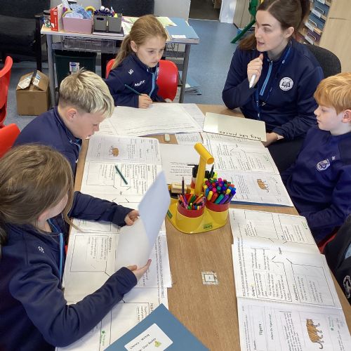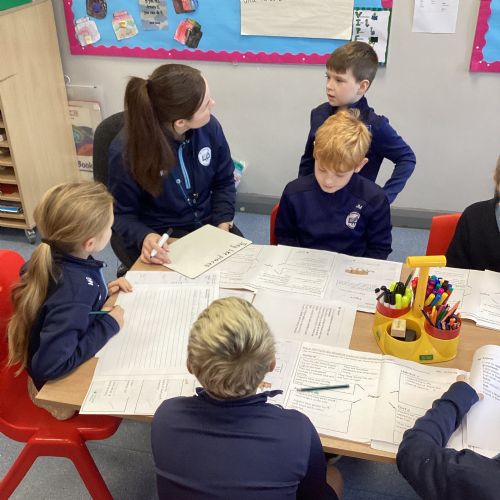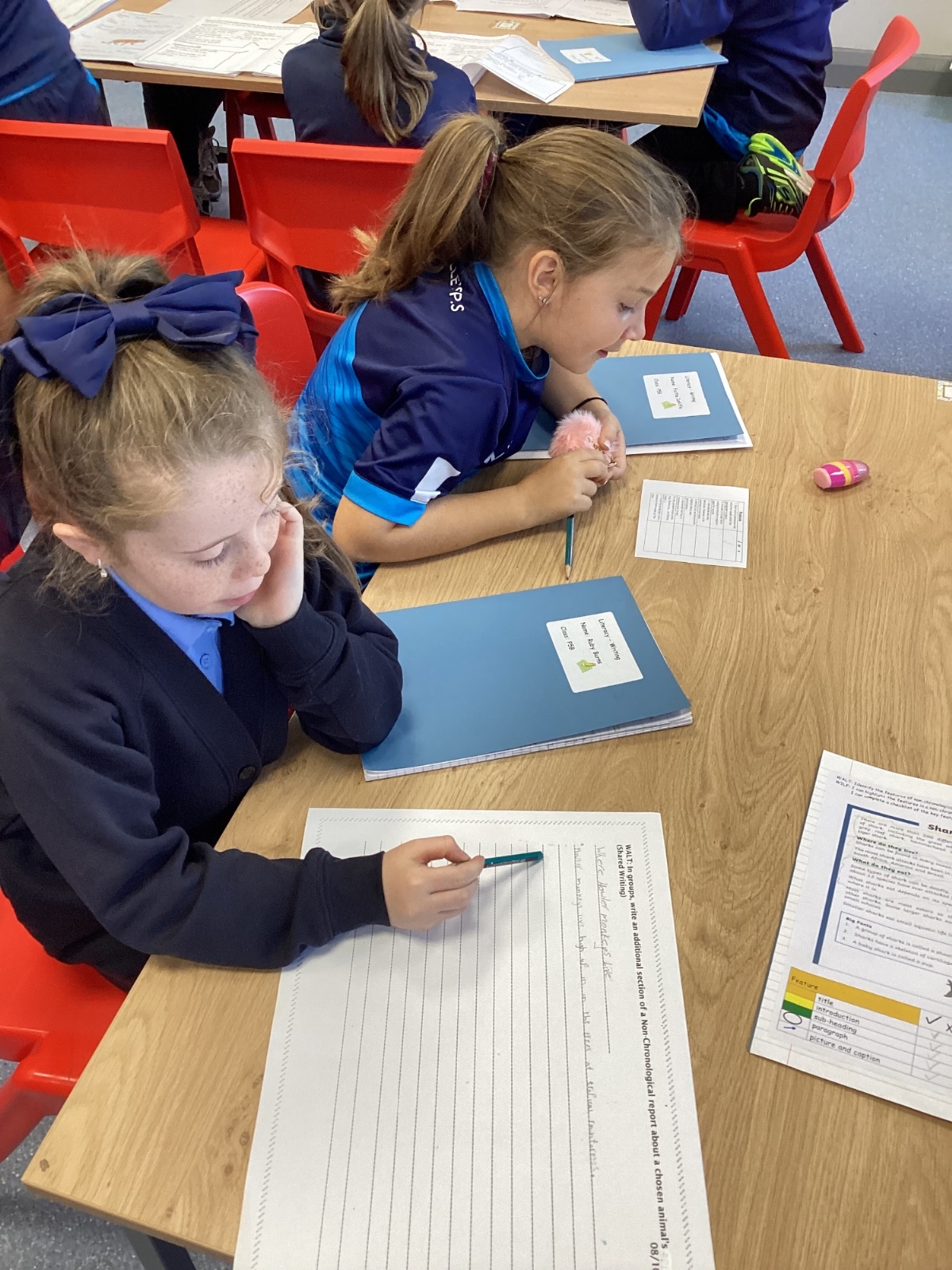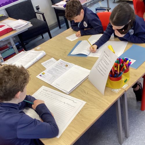 Pupils worked collaboratively in small groups to craft a paragraph about the habitat of a rainforest animal. Using research they had previously gathered on iPads and from information books, children discussed key facts, shared ideas, and supported one another in structuring their writing. The guided write encouraged teamwork, critical thinking, and creativity, as each group brought their chosen animal’s environment to life through rich vocabulary and detailed descriptions.