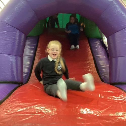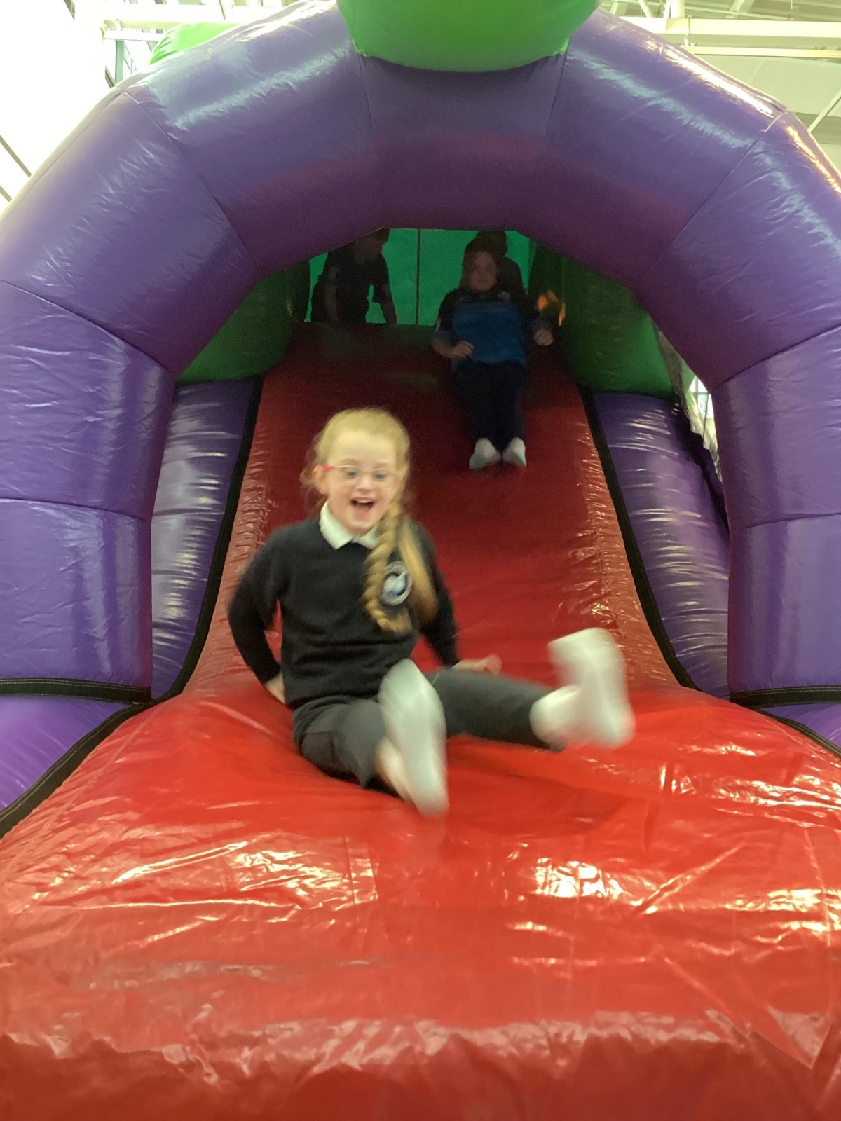 Pupils had a fantastic day filled with excitement during their visit to Ballymote, where they enjoyed a wide variety of bouncy castles, games, and other fun inflatables. The laughter and energy continued back at school with a class party full of tasty treats and a relaxing movie to round off a truly memorable experience.