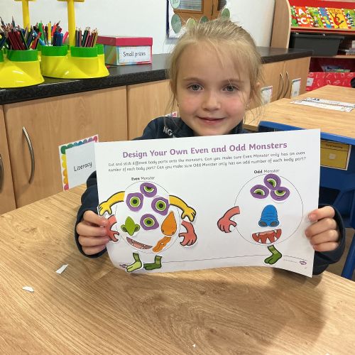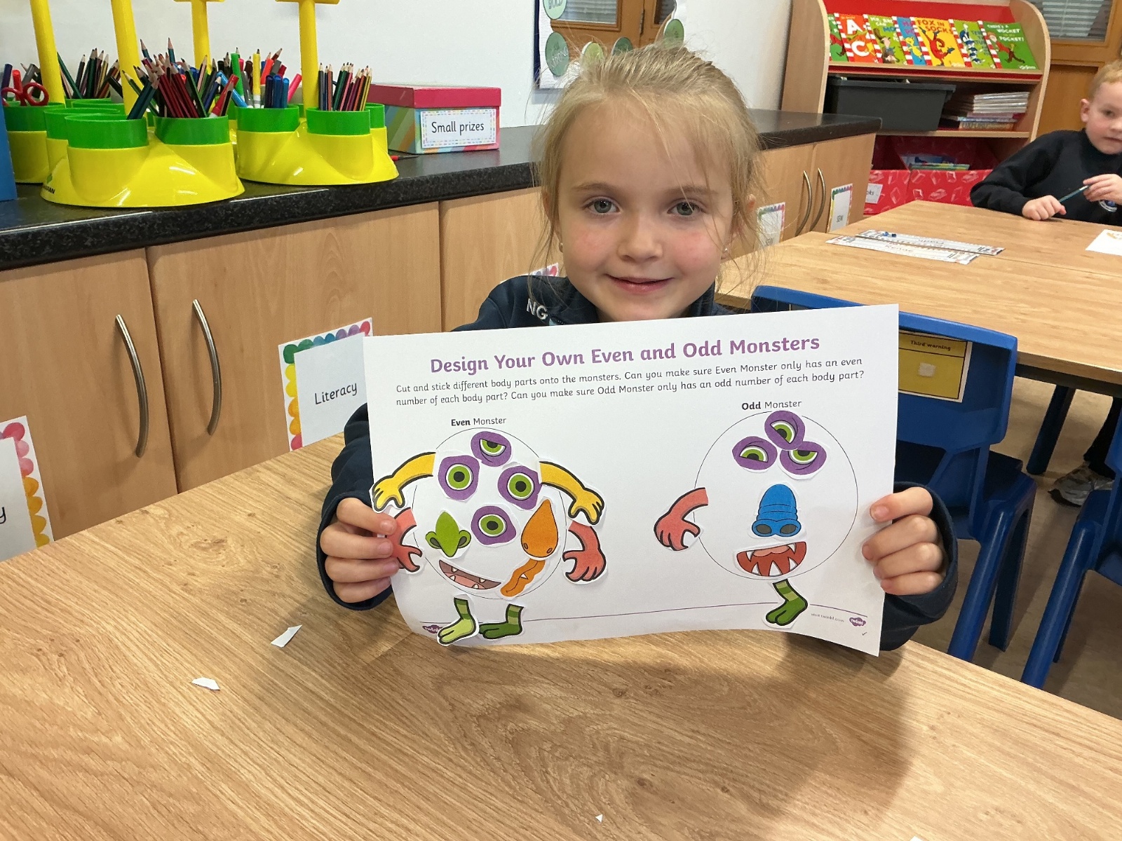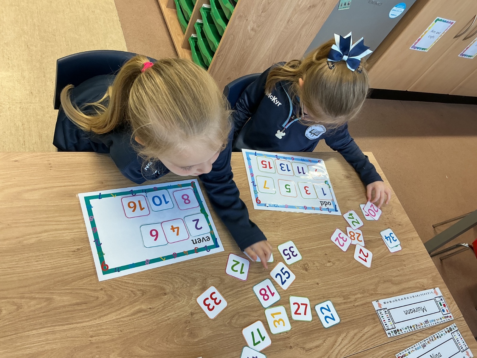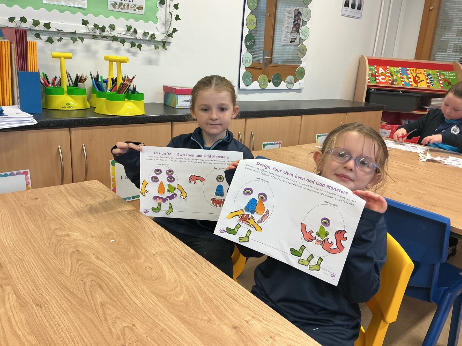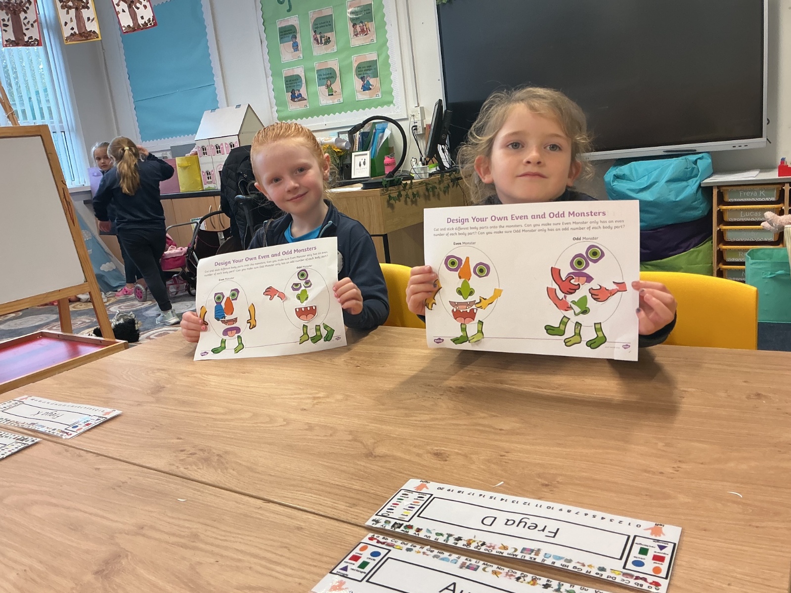 Today we explored odd and even numbers in a fun and creative way! We made funny odd and even monsters, went on a school-wide hunt to spot numbers, and sorted number cards into odd and even groups.