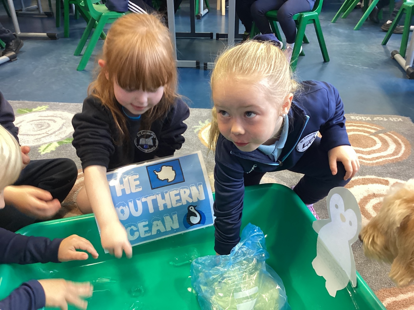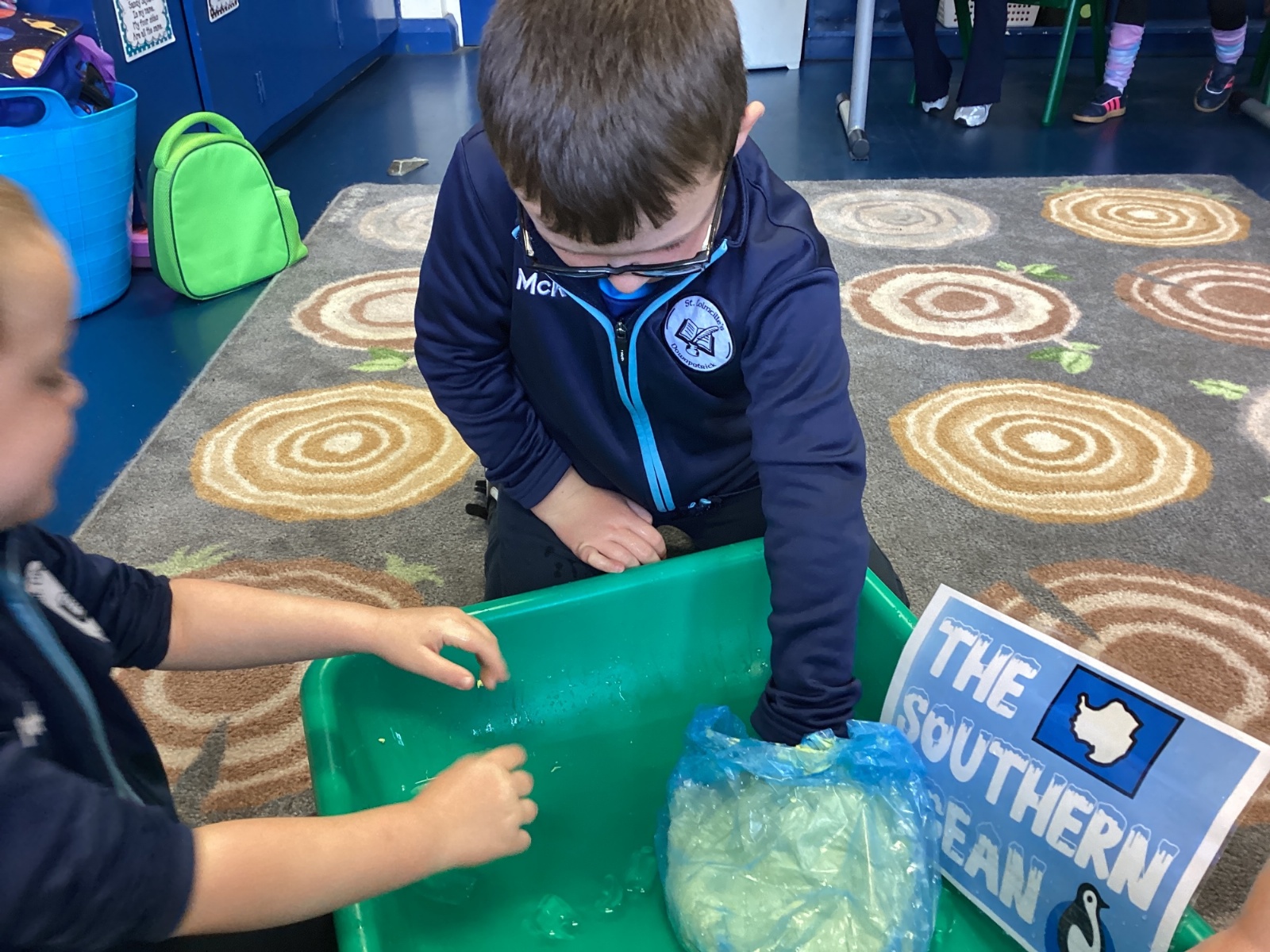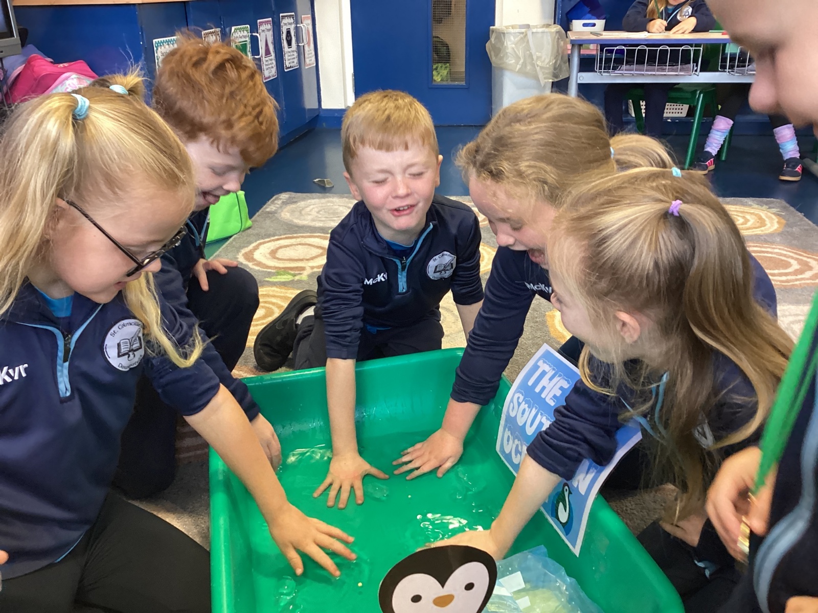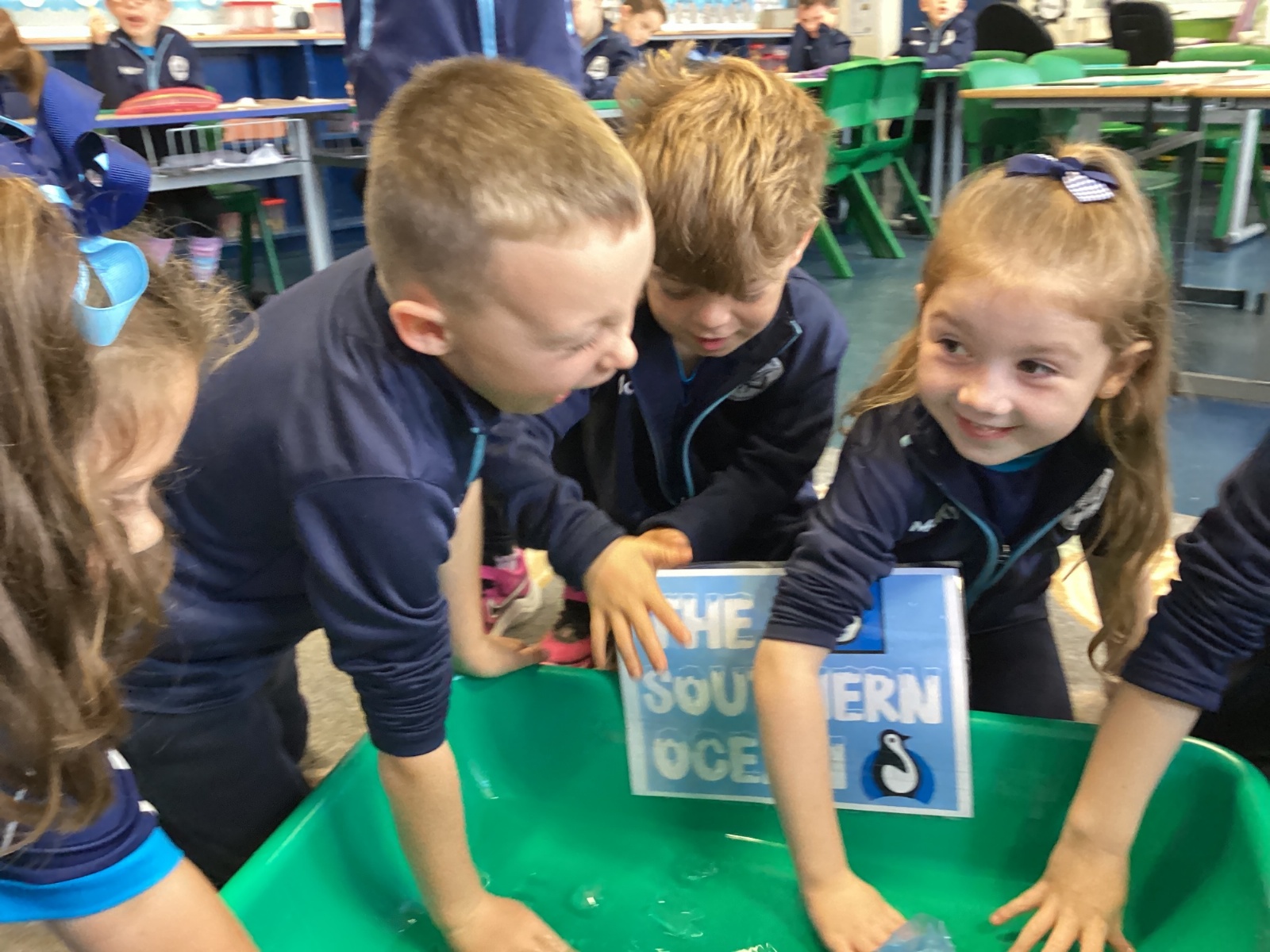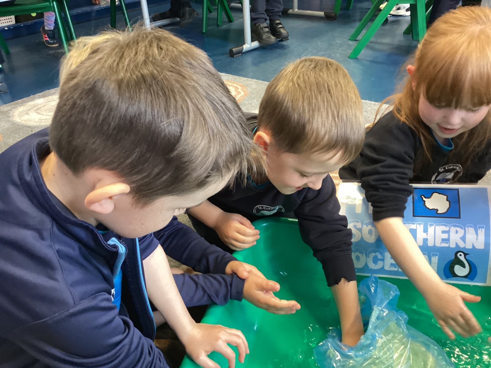 P2 had great fun learning about Antarctic animals this week and discovering how blubber keeps them warm during our exciting blubber experiment. The children put one hand in ice-cold water and the other hand protected with "blubber." Everyone was amazed at how much warmer the hand with the blubber stayed!