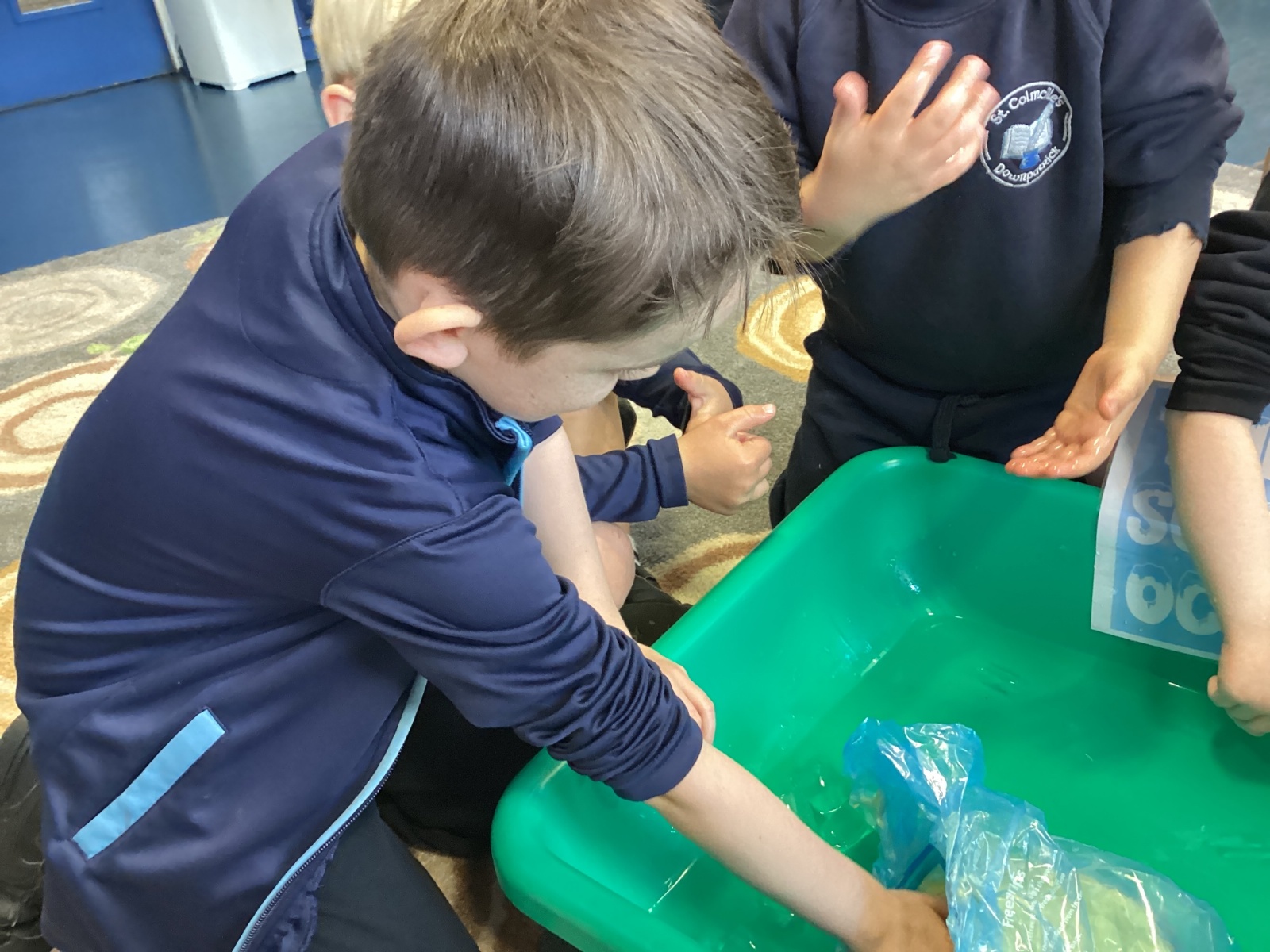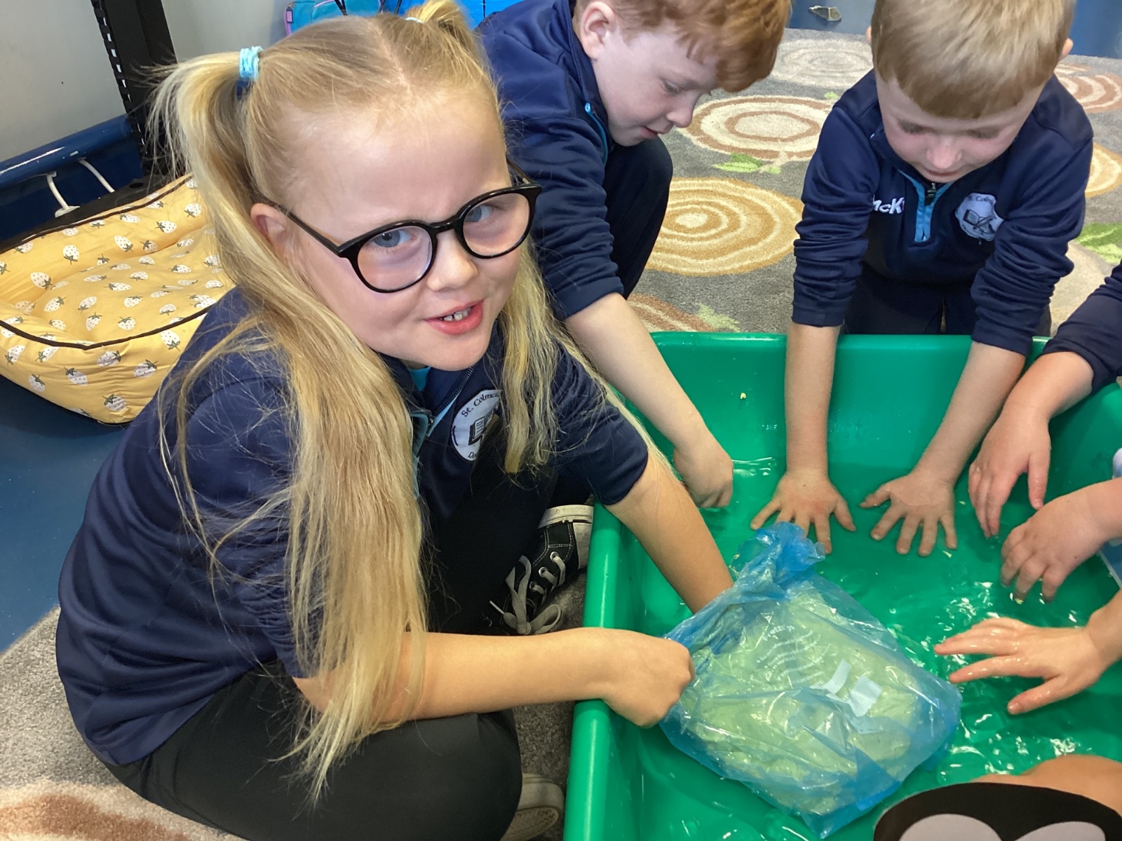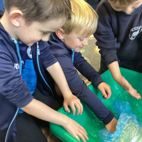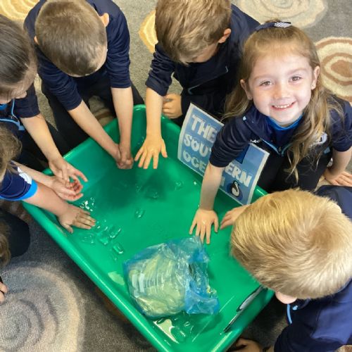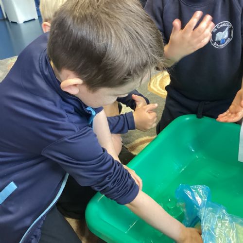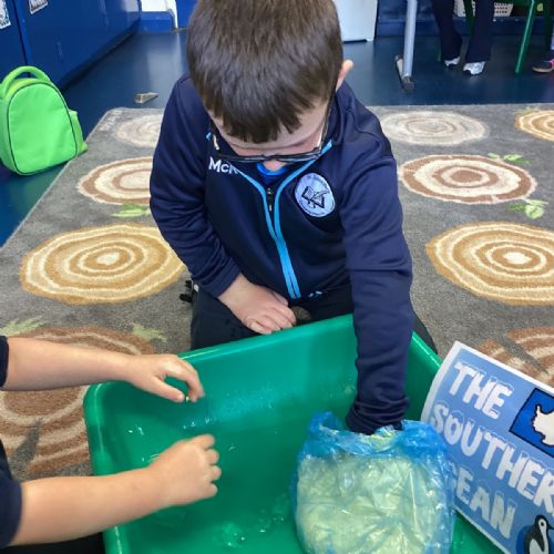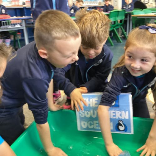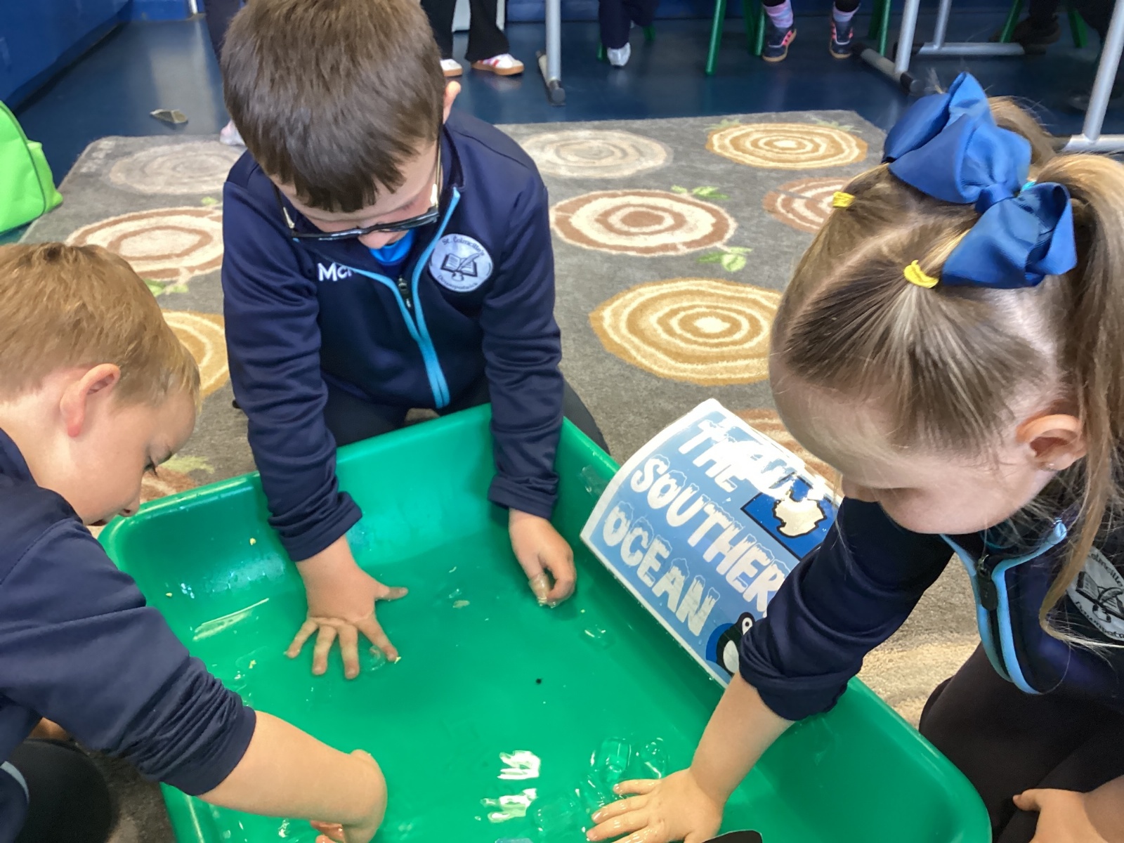 P2 had great fun learning about Antarctic animals this week and discovering how blubber keeps them warm during our exciting blubber experiment. The children put one hand in ice-cold water and the other hand protected with "blubber." Everyone was amazed at how much warmer the hand with the blubber stayed!