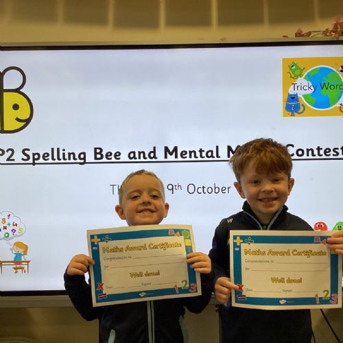 P2 put their spelling and mental Maths skills to the test this week by participating in a mental maths and spelling bee in honour of St Colmcille's 50th Anniversary! Everybody participated with such enthusiasm and Miss Walsh was so proud of all the children's dedication!