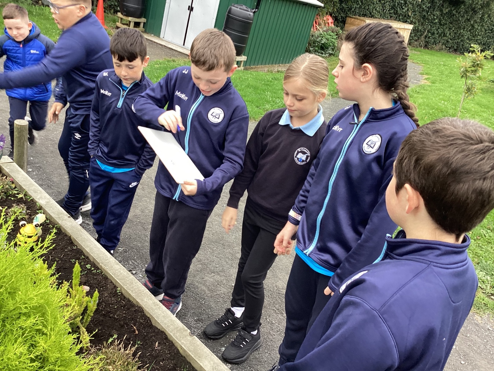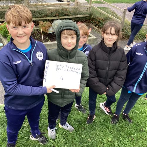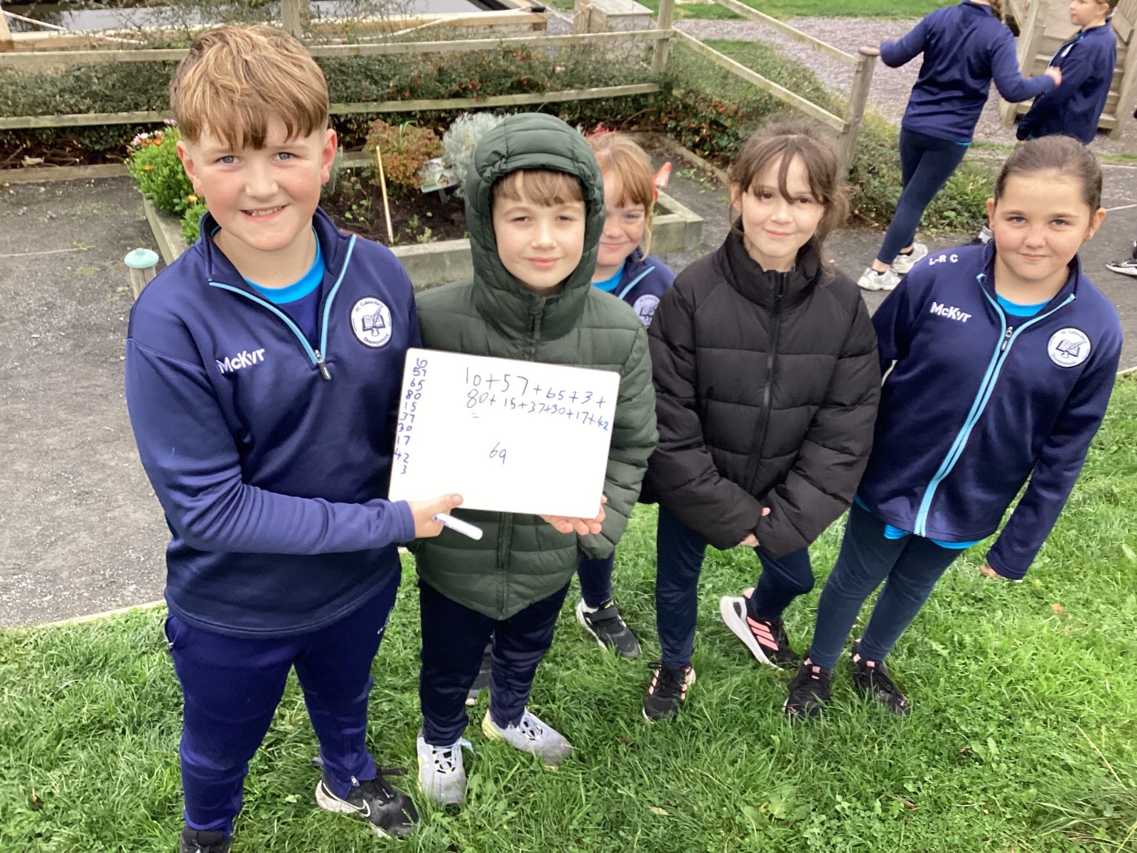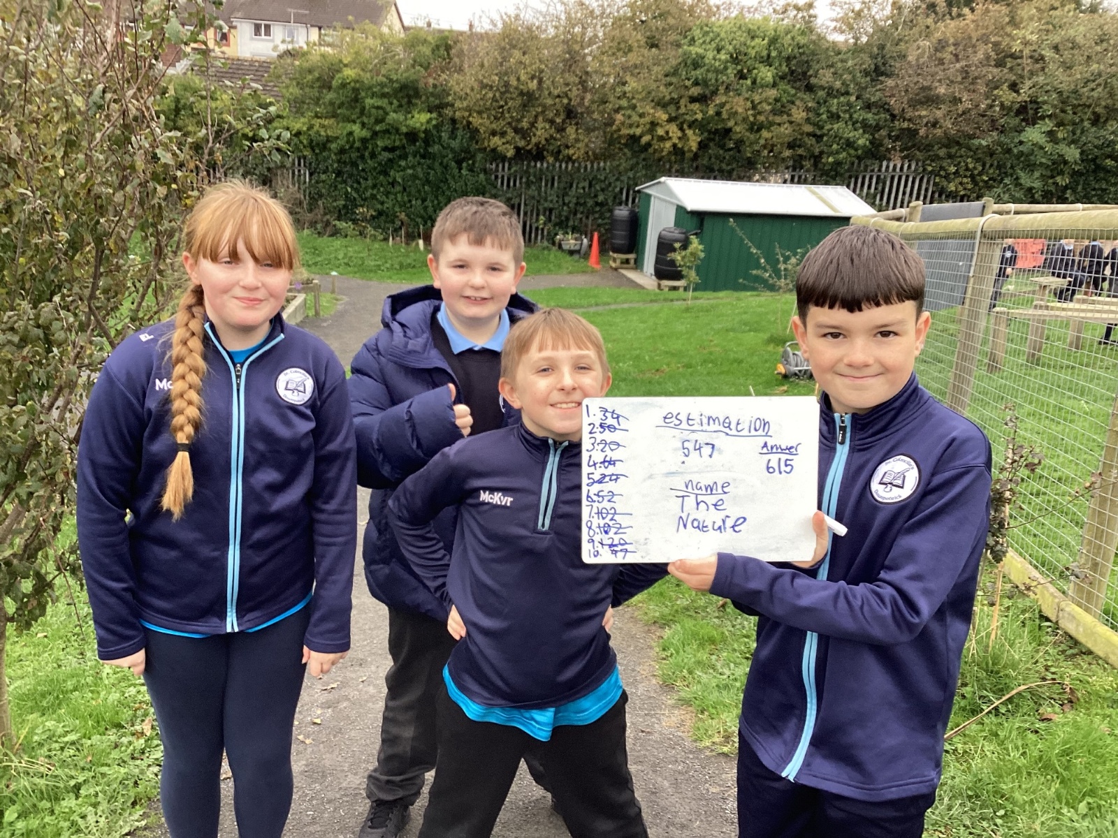 P6B enjoyed their problem solving in the Daily Mile this morning when they were challenged to make estimations about the environment around them before making calculations to check their answers. The boys and girls worked together to answer increasingly challenging questions.