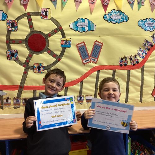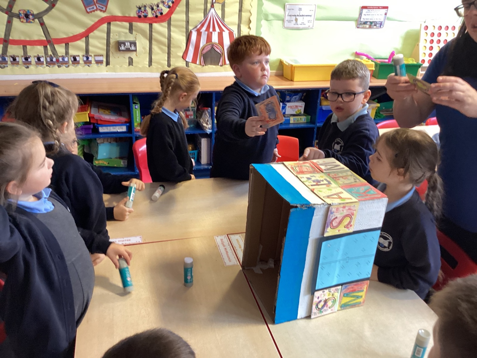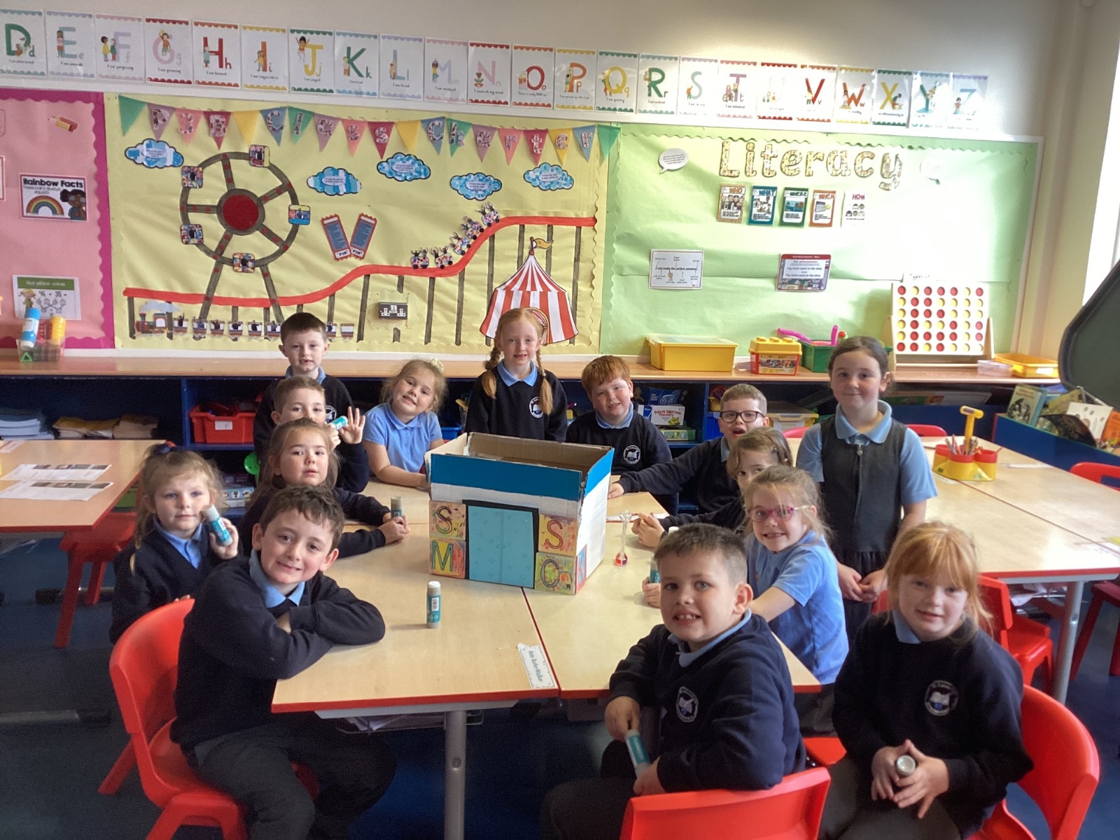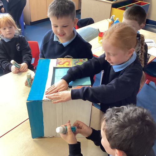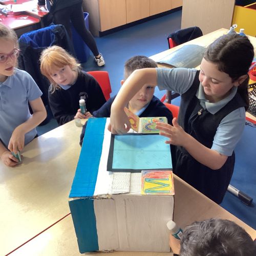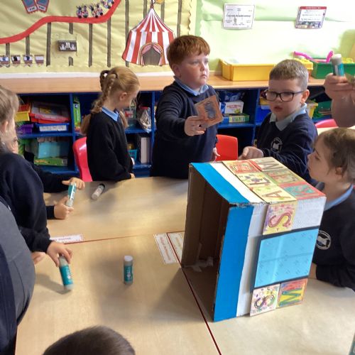 This week, our class enjoyed a variety of exciting activities to mark the 50th anniversary of our school. We worked together to build a cardboard model of the school. Created personal factfiles to be buried in a time capsule, ready to be opened in 2075. We took part in both a spelling bee and a mental maths competition. Finally, to round off the celebrations, everyone had a fantastic time bouncing and playing on the bouncy castles!