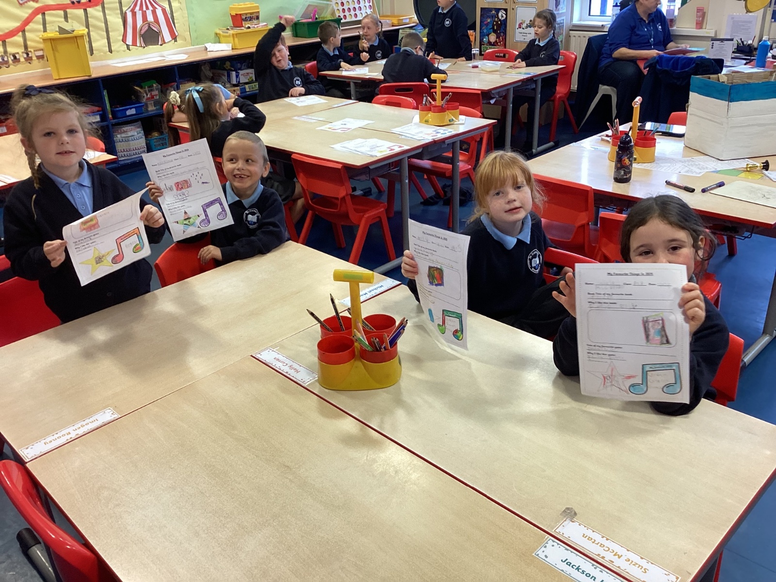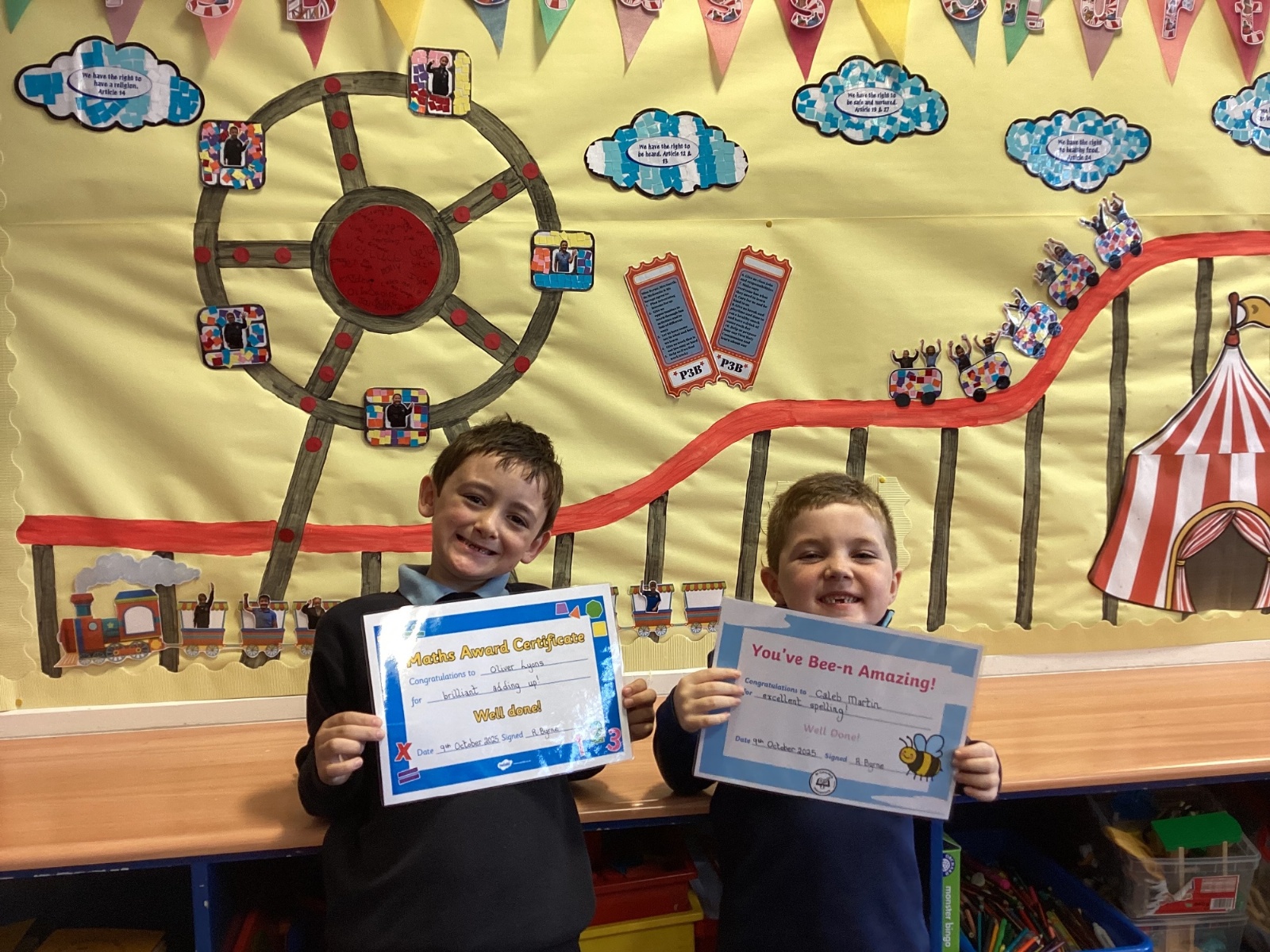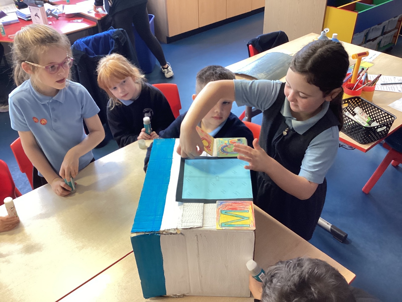 This week, our class enjoyed a variety of exciting activities to mark the 50th anniversary of our school. We worked together to build a cardboard model of the school. Created personal factfiles to be buried in a time capsule, ready to be opened in 2075. We took part in both a spelling bee and a mental maths competition. Finally, to round off the celebrations, everyone had a fantastic time bouncing and playing on the bouncy castles!