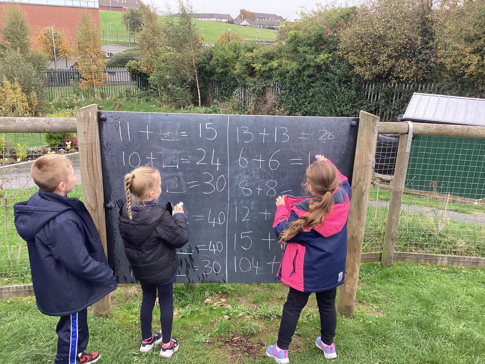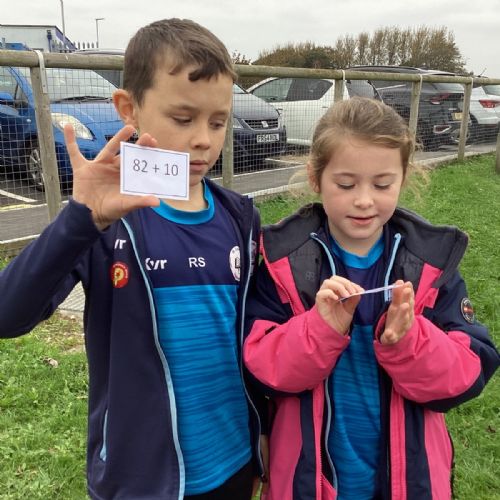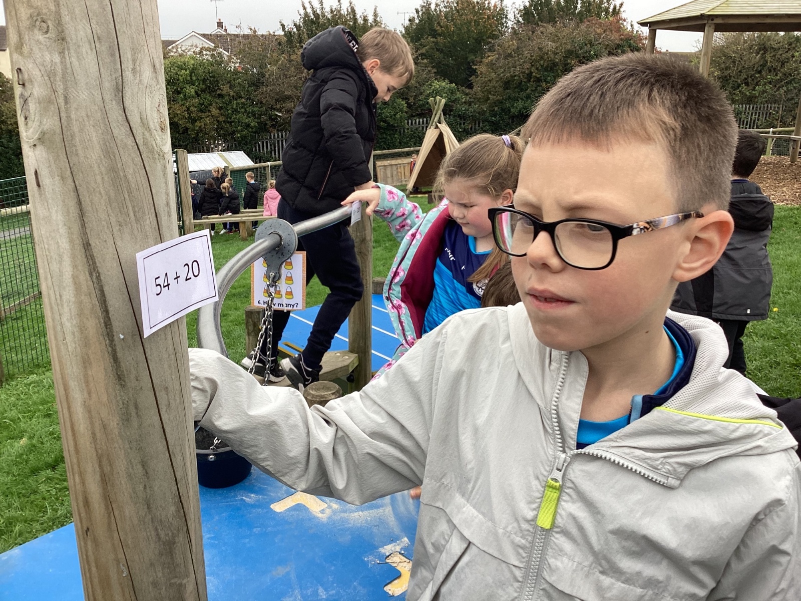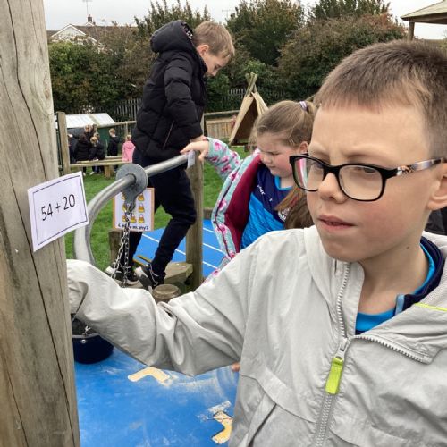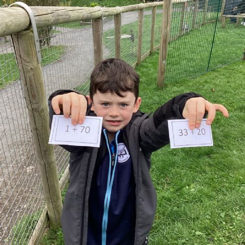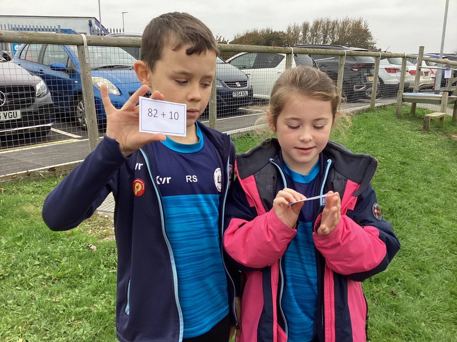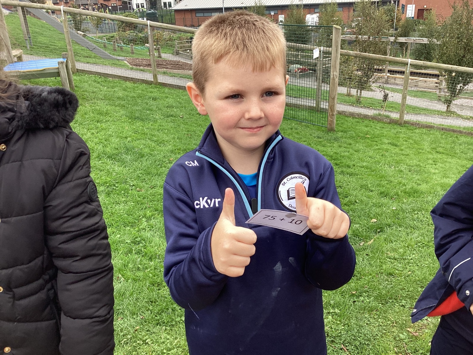 P4 took part in some fun practical learning to celebrate Maths Week! They took part in team challenges and a scavenger hunt to put their mental maths skills to the test!