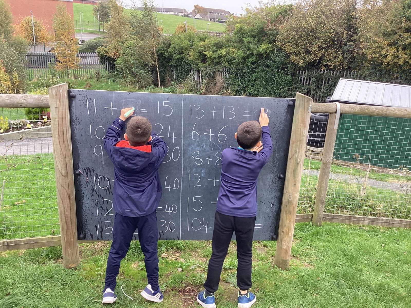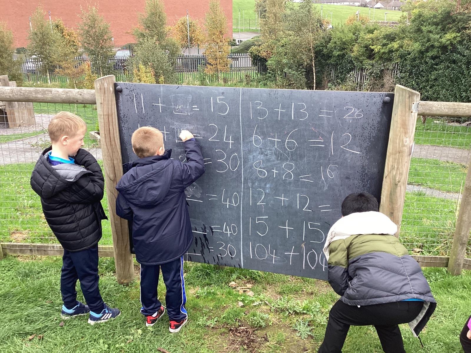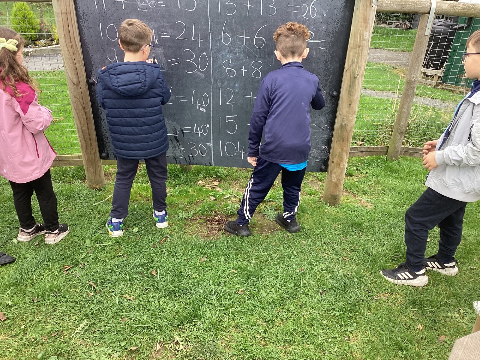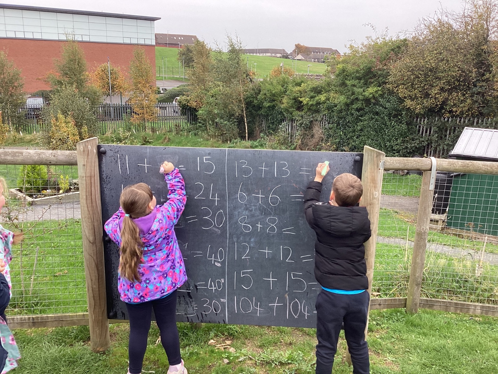 P4 took part in some fun practical learning to celebrate Maths Week! They took part in team challenges and a scavenger hunt to put their mental maths skills to the test!