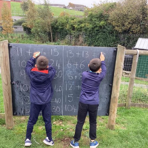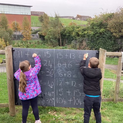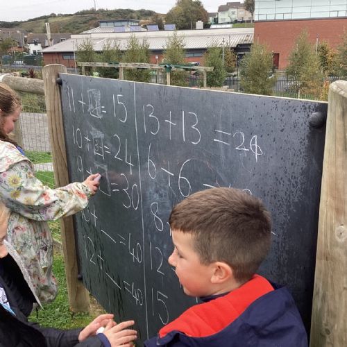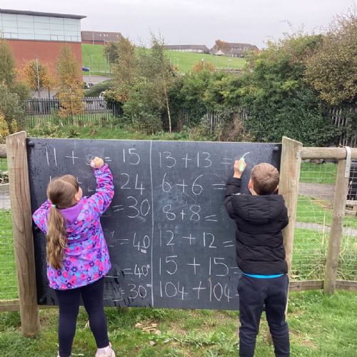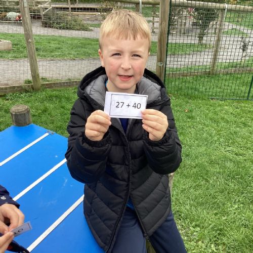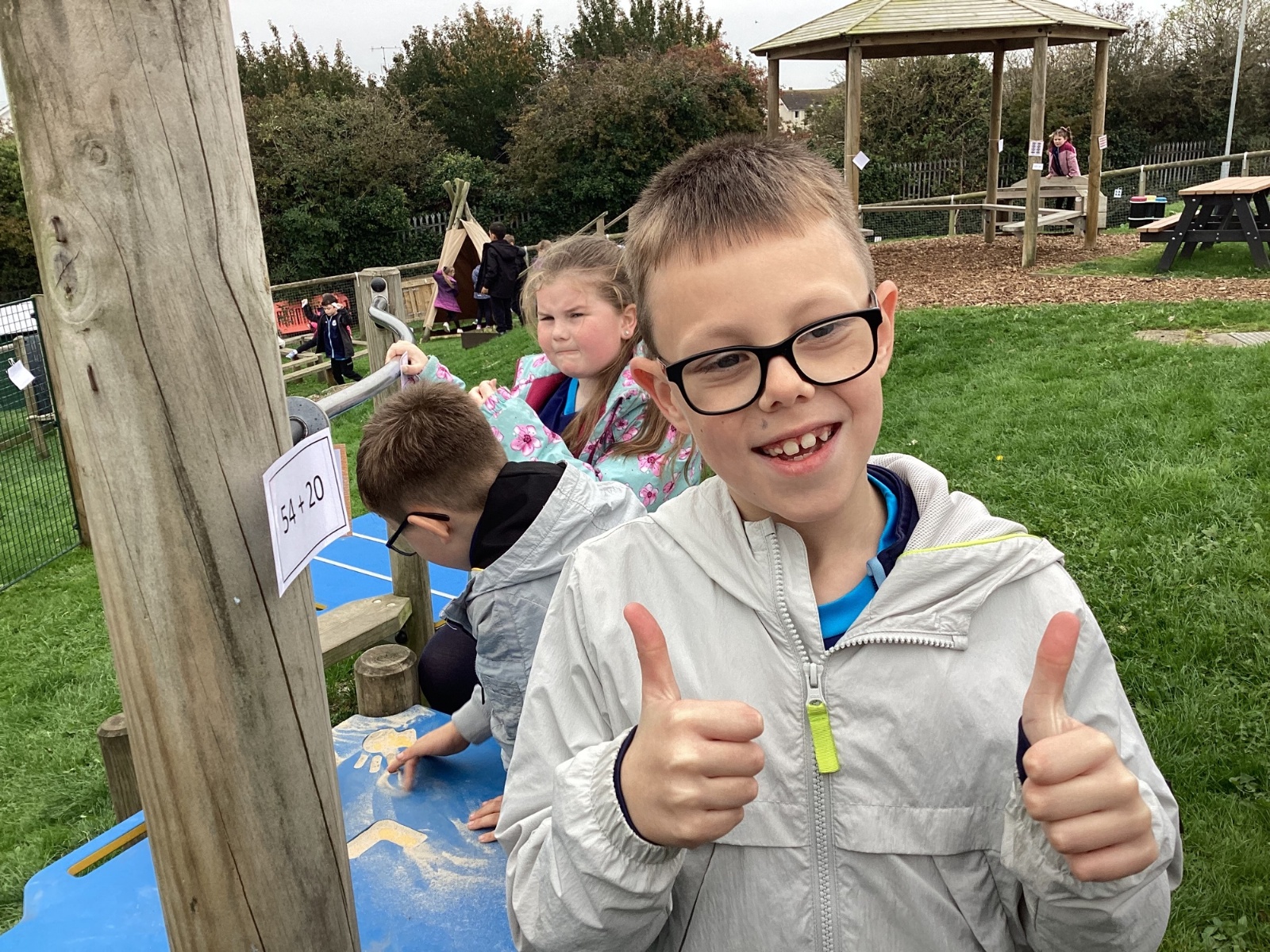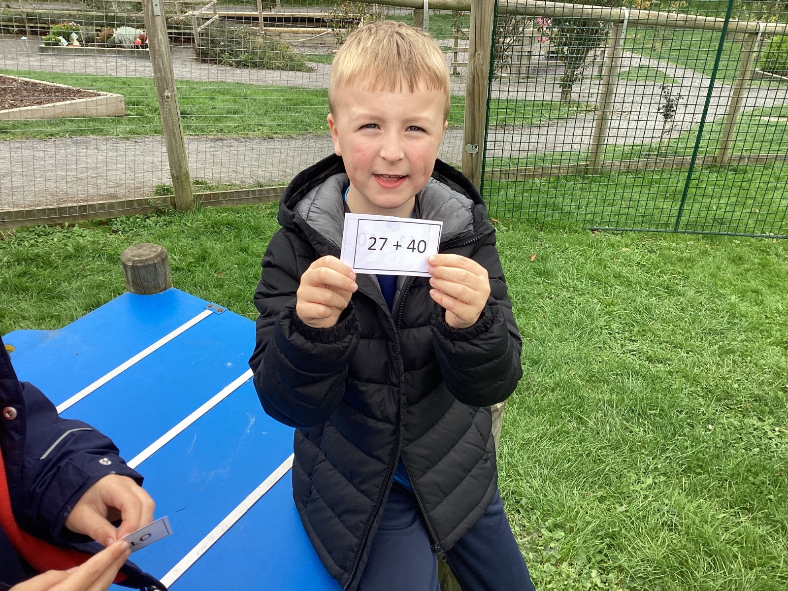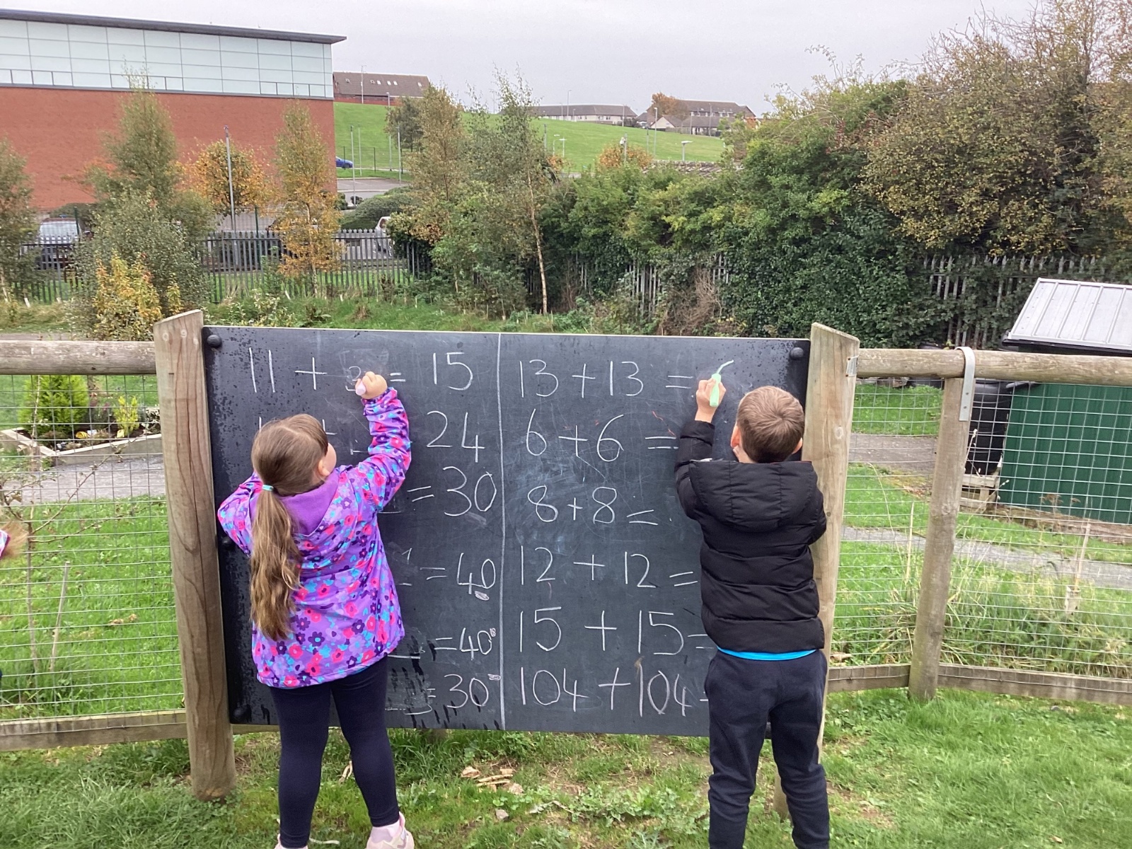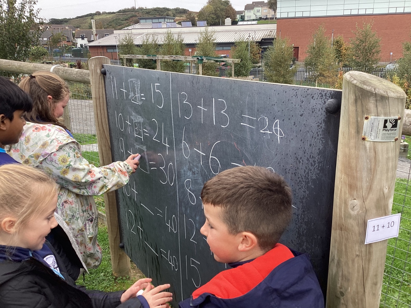 P4 took part in some fun practical learning to celebrate Maths Week! They took part in team challenges and a scavenger hunt to put their mental maths skills to the test!