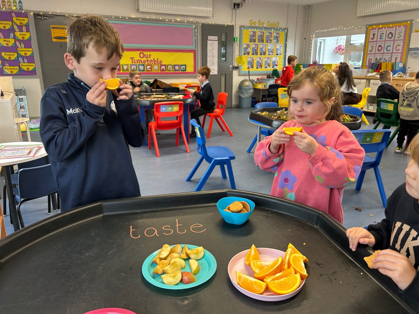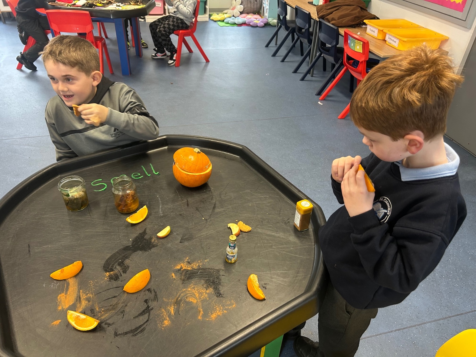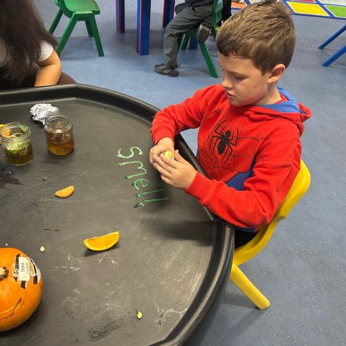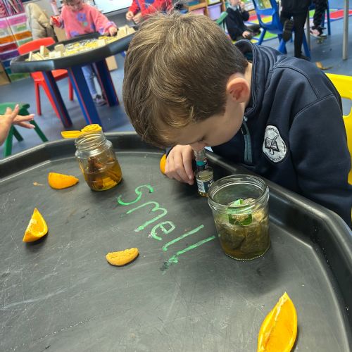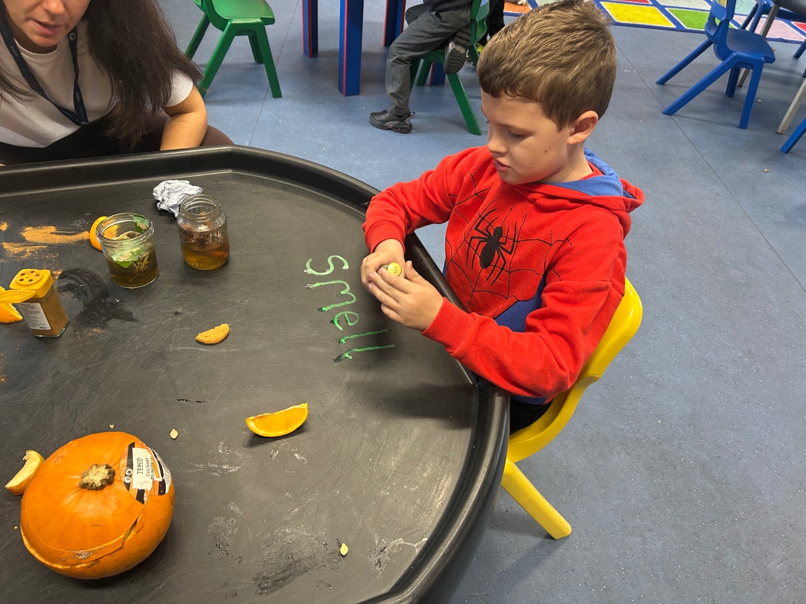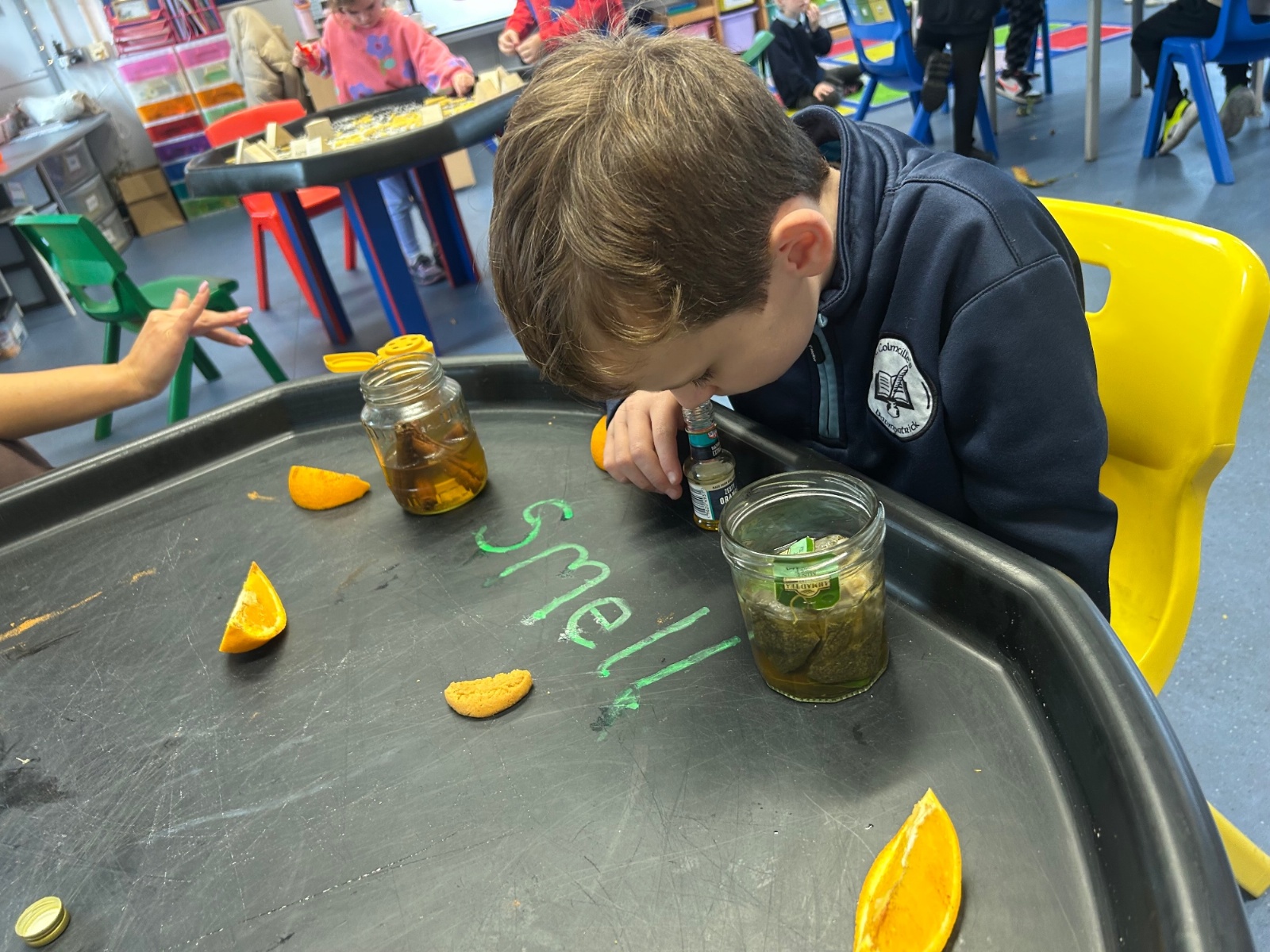We explored the things we can see, smell, hear, touch and taste in Autumn!