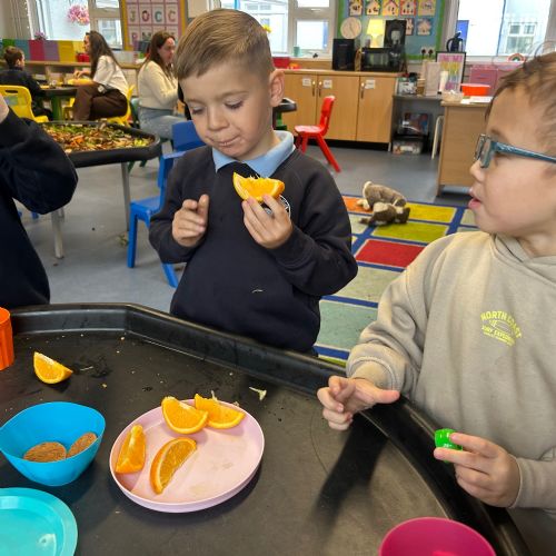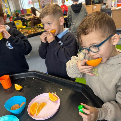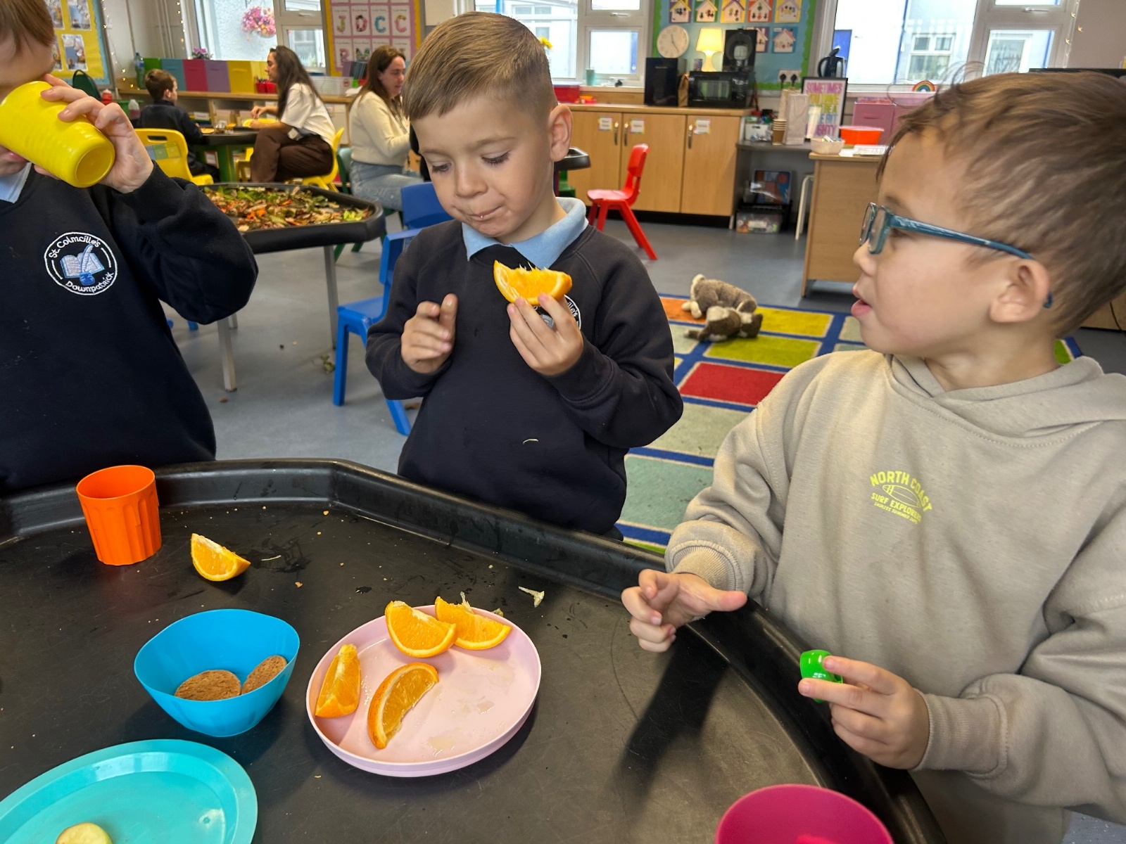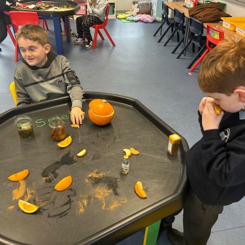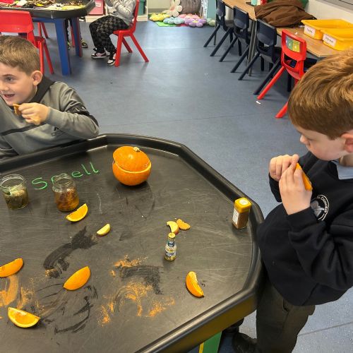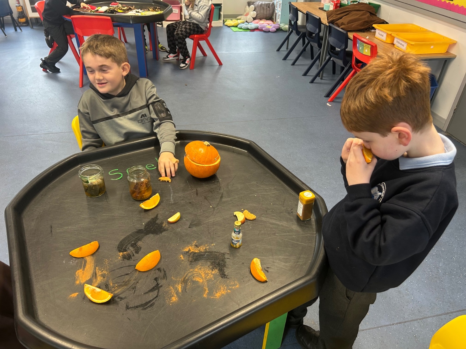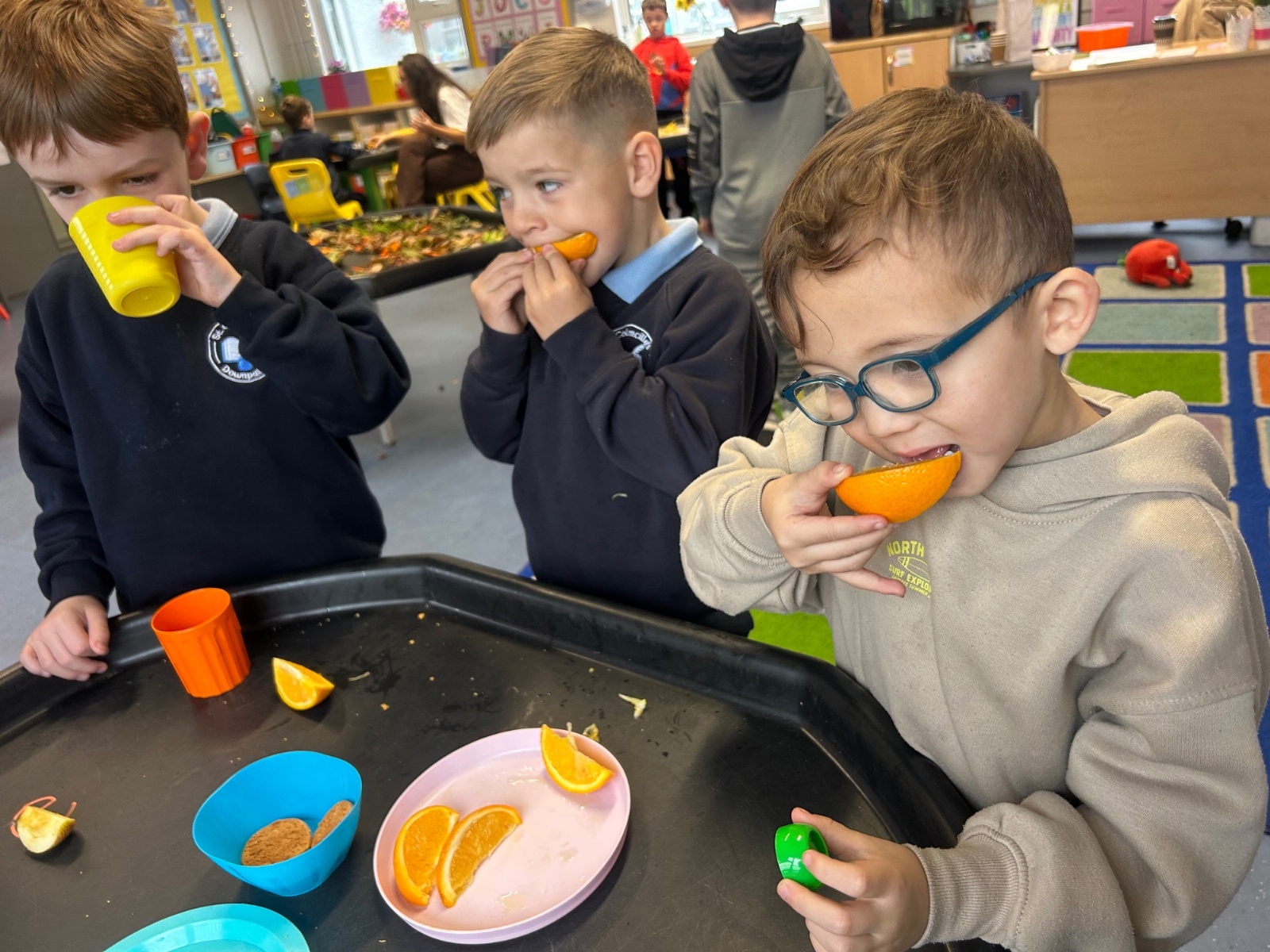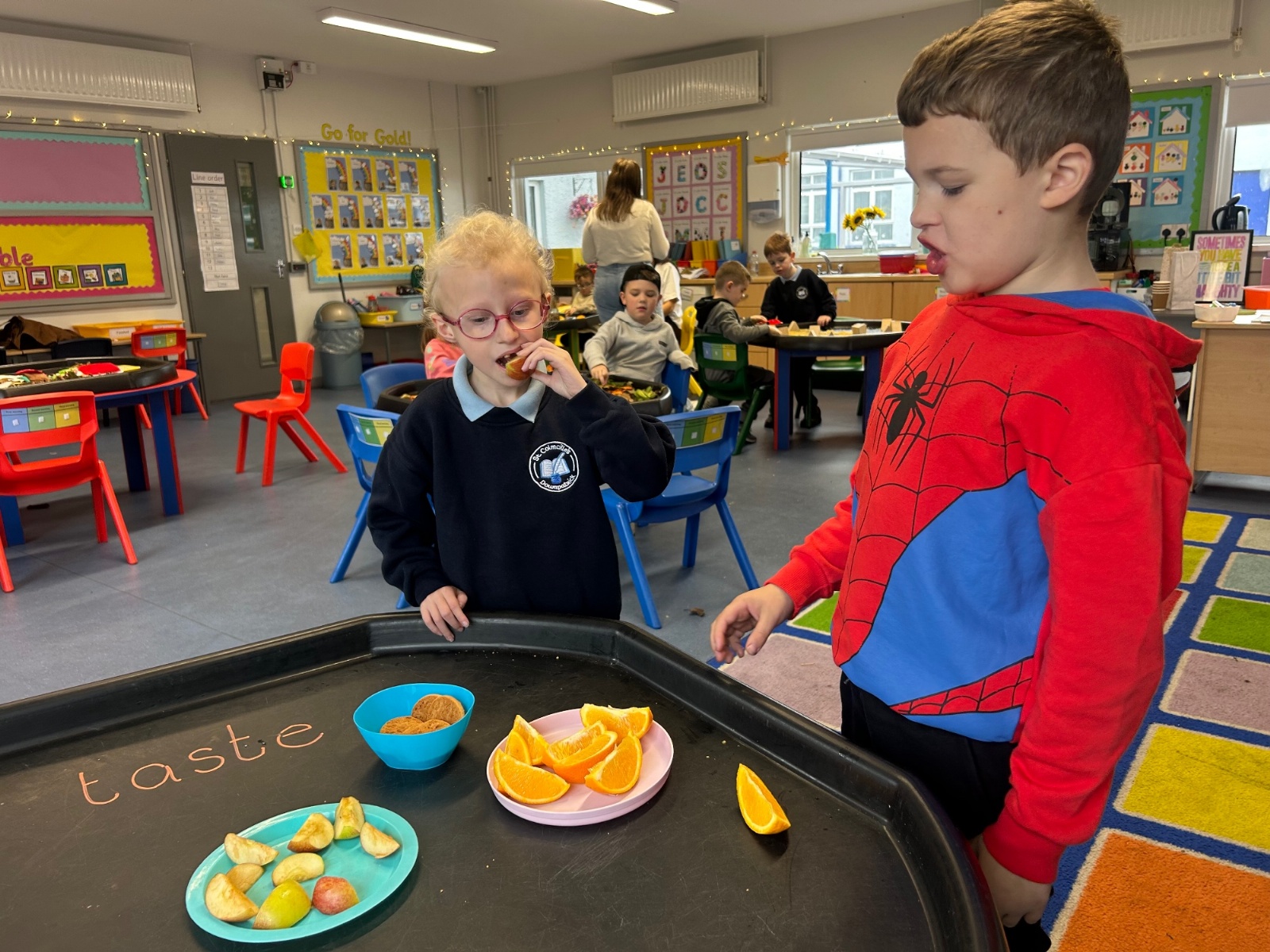 We explored the things we can see, smell, hear, touch and taste in Autumn!