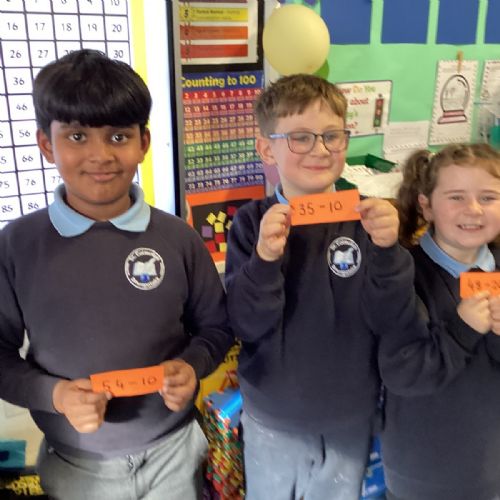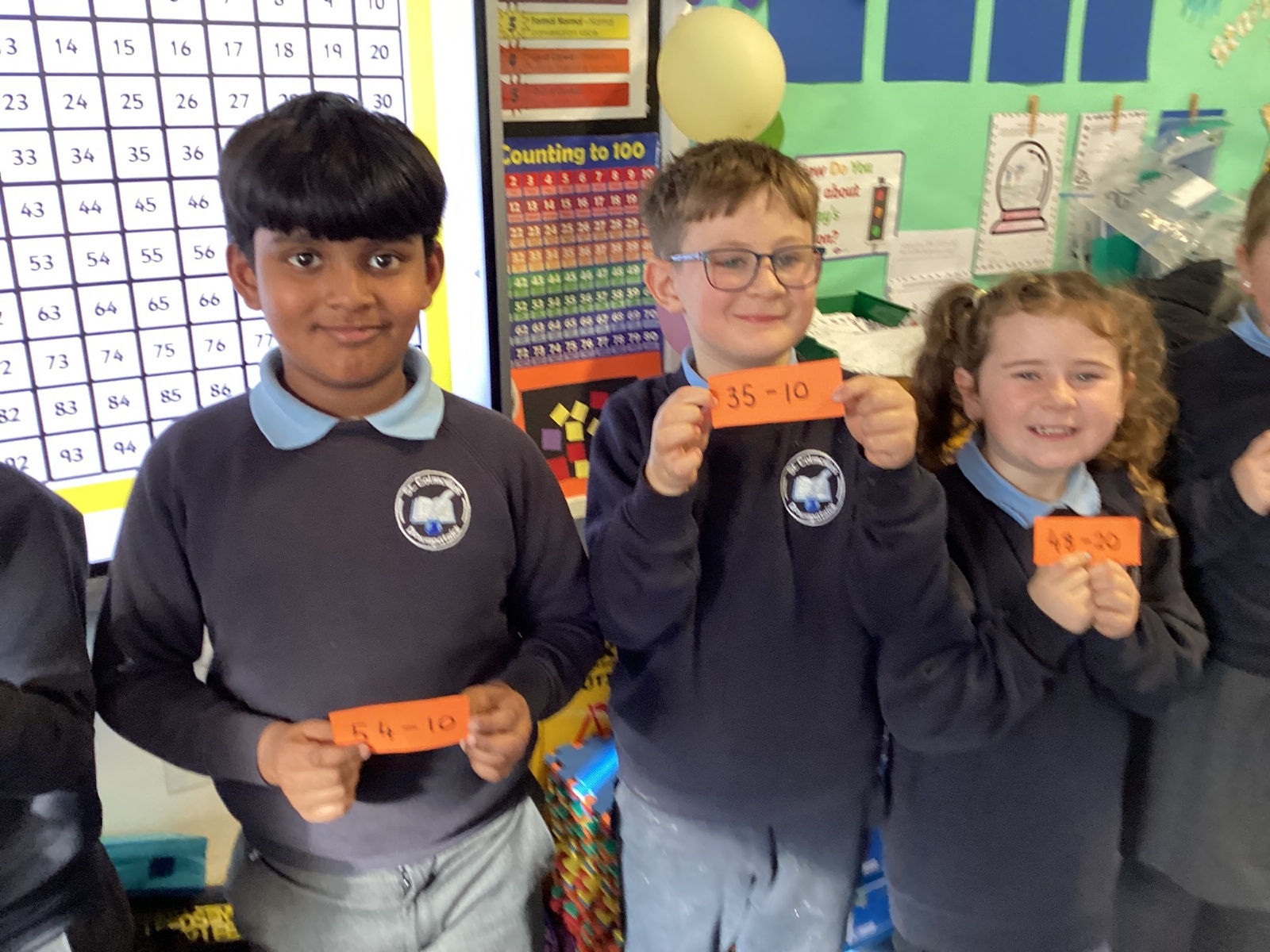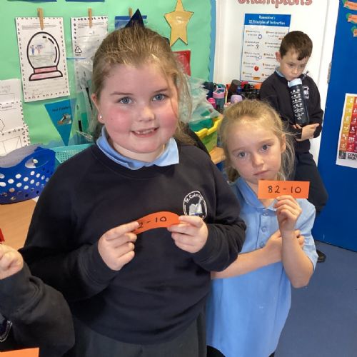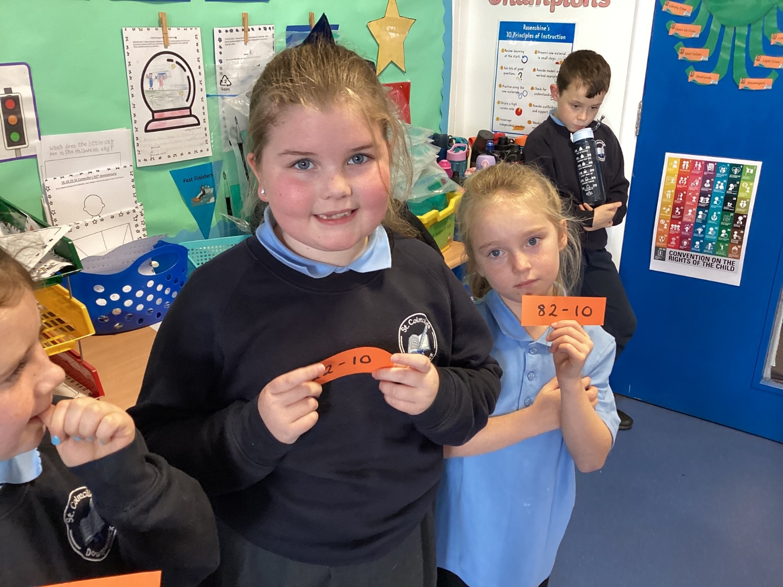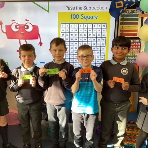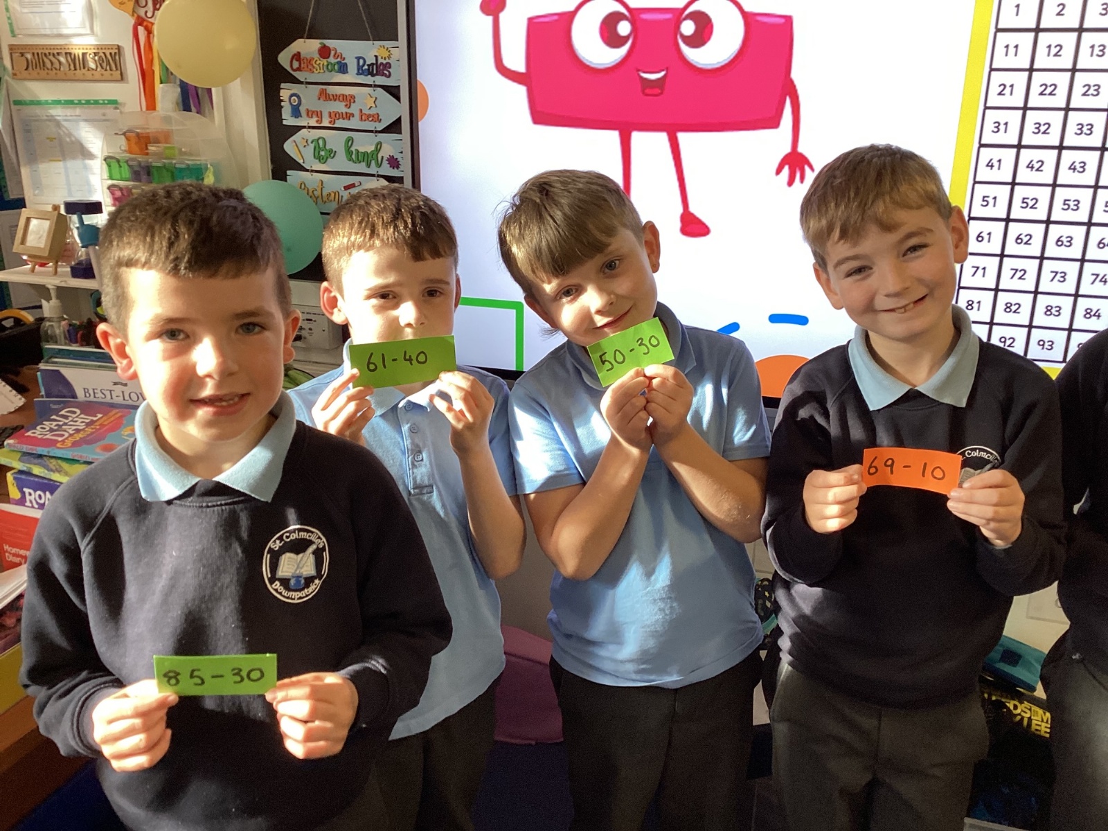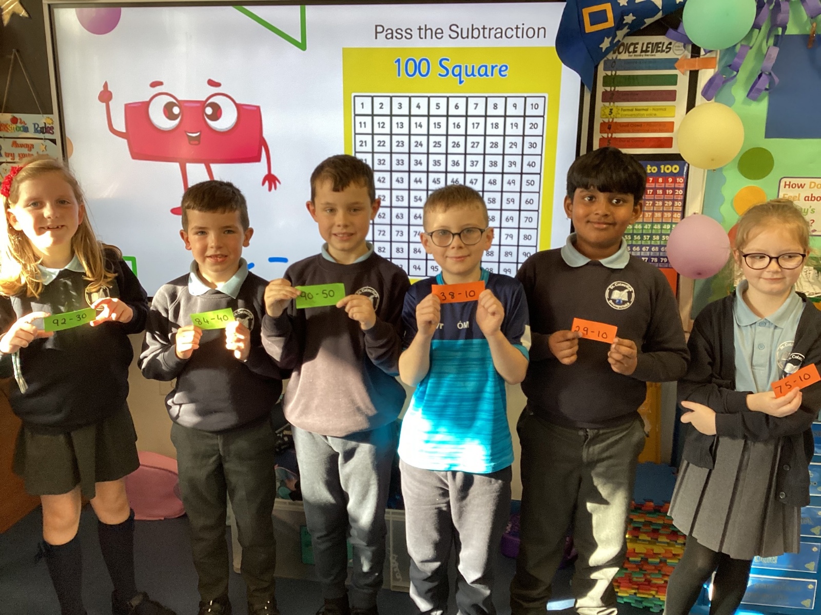 P4 put their mental maths skills to the test by playing musical sums! They passed the maths questions around the room. Every time the music stopped whoever had the card had to try and answer the questions! We have been using a 100 square to he,p us if we need it!