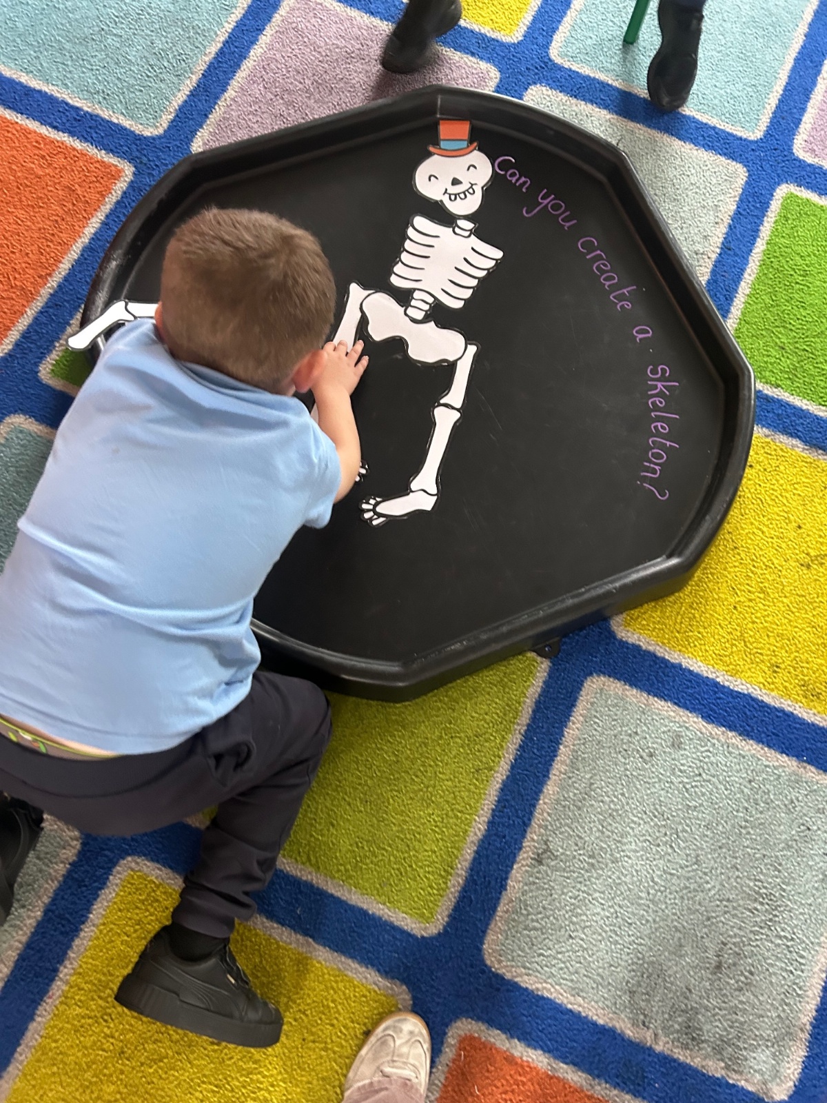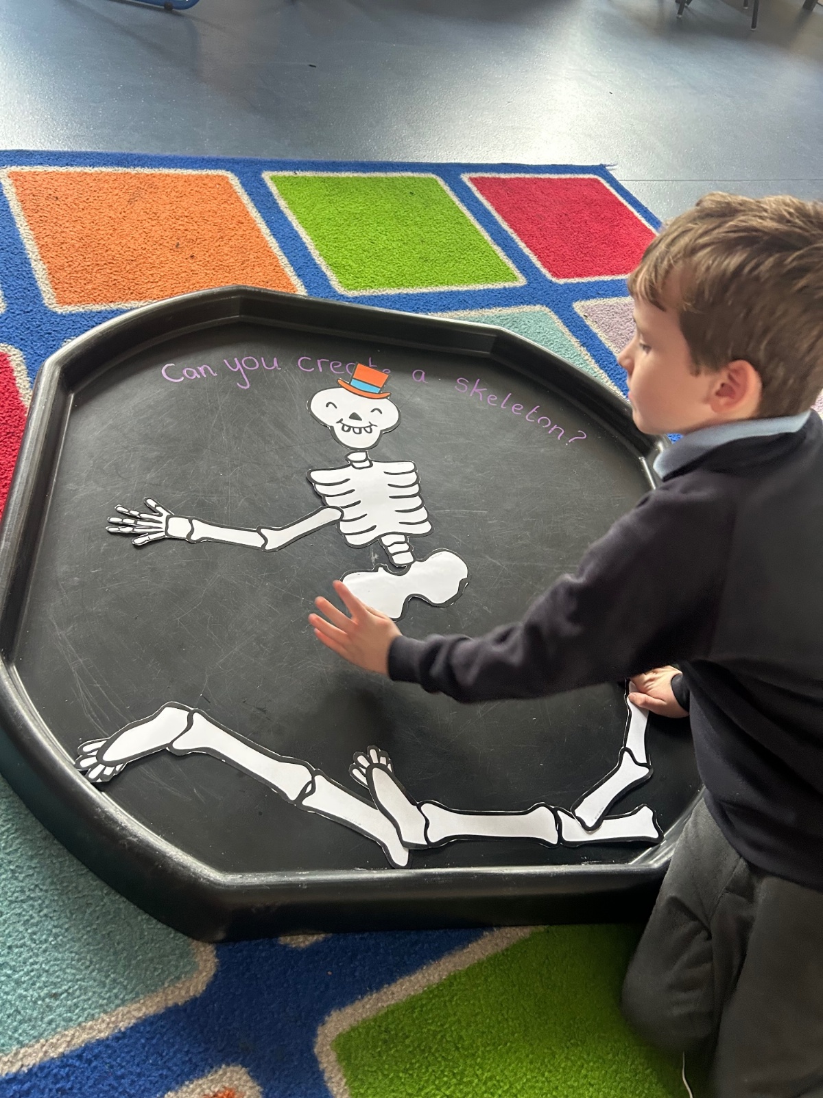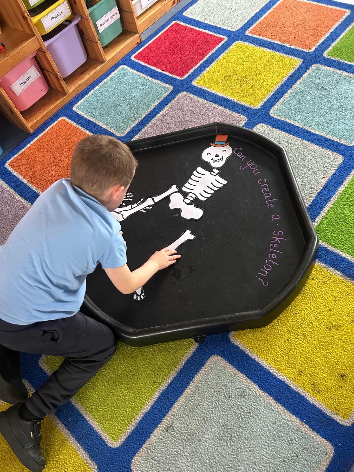 After reading our story of the week, Funny bones, we had a go at unjumbling and creating a skeleton!