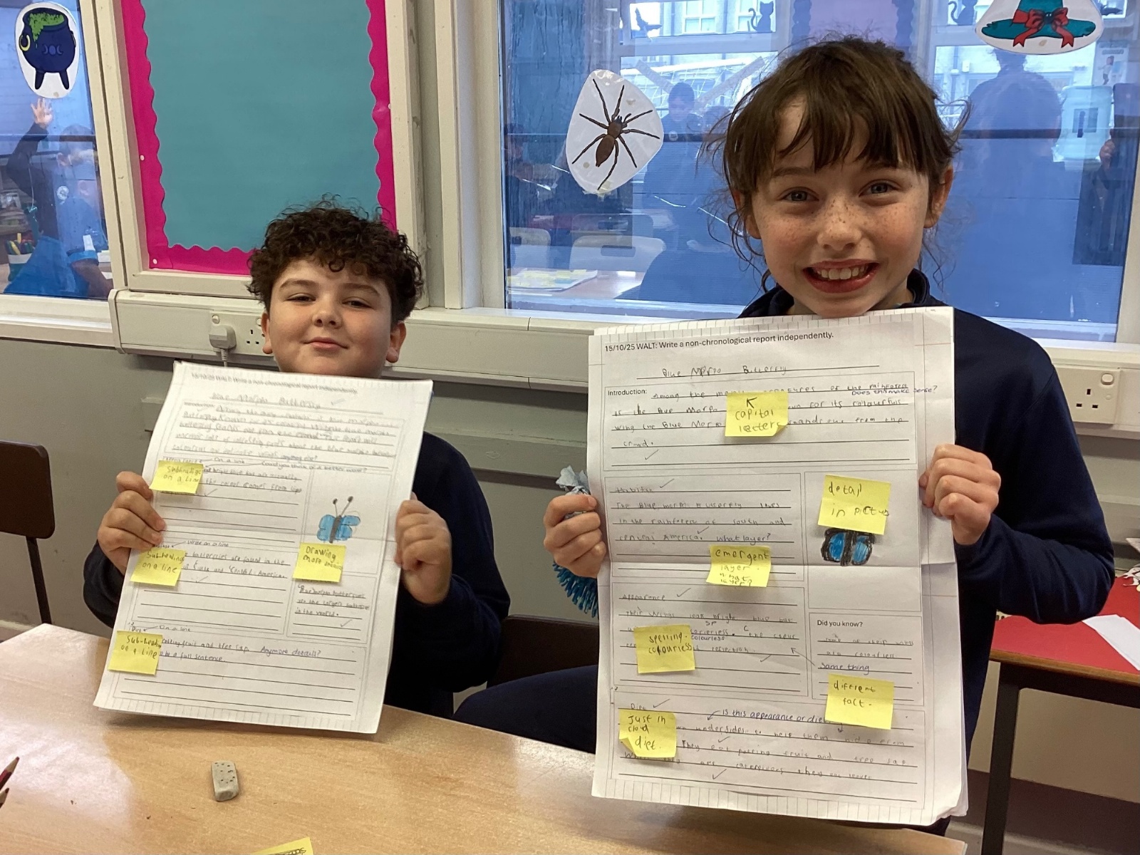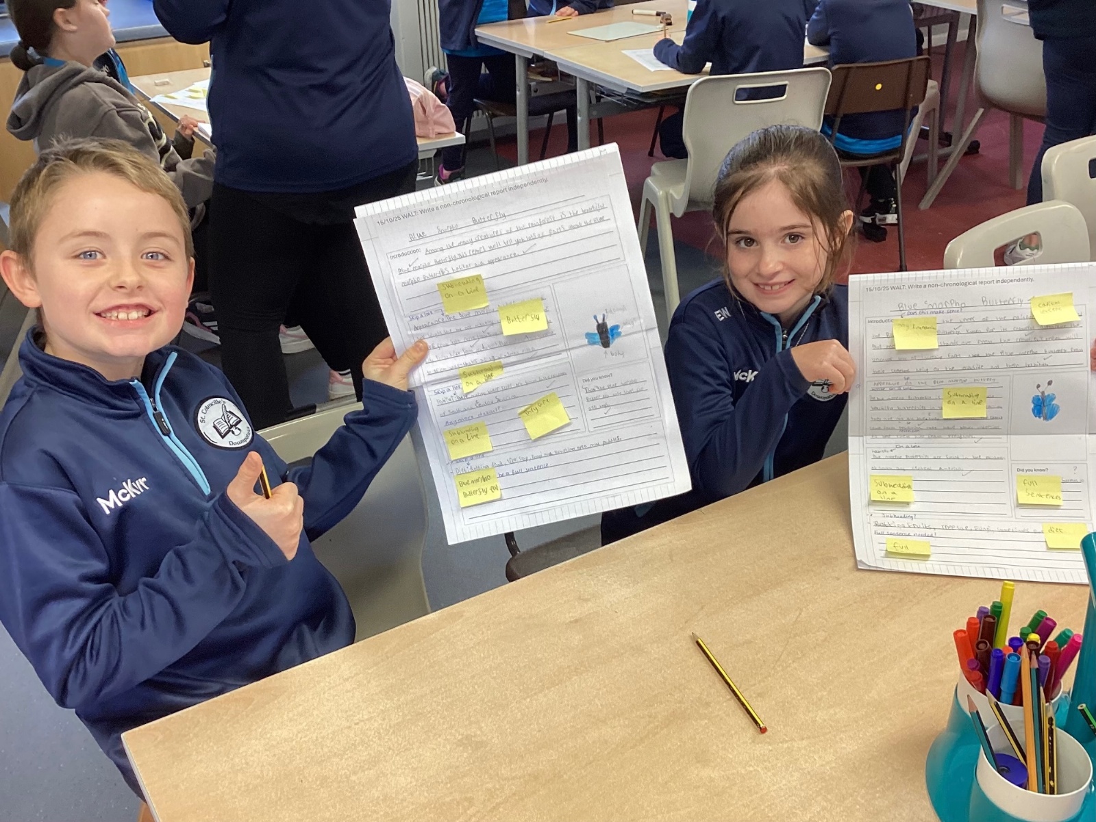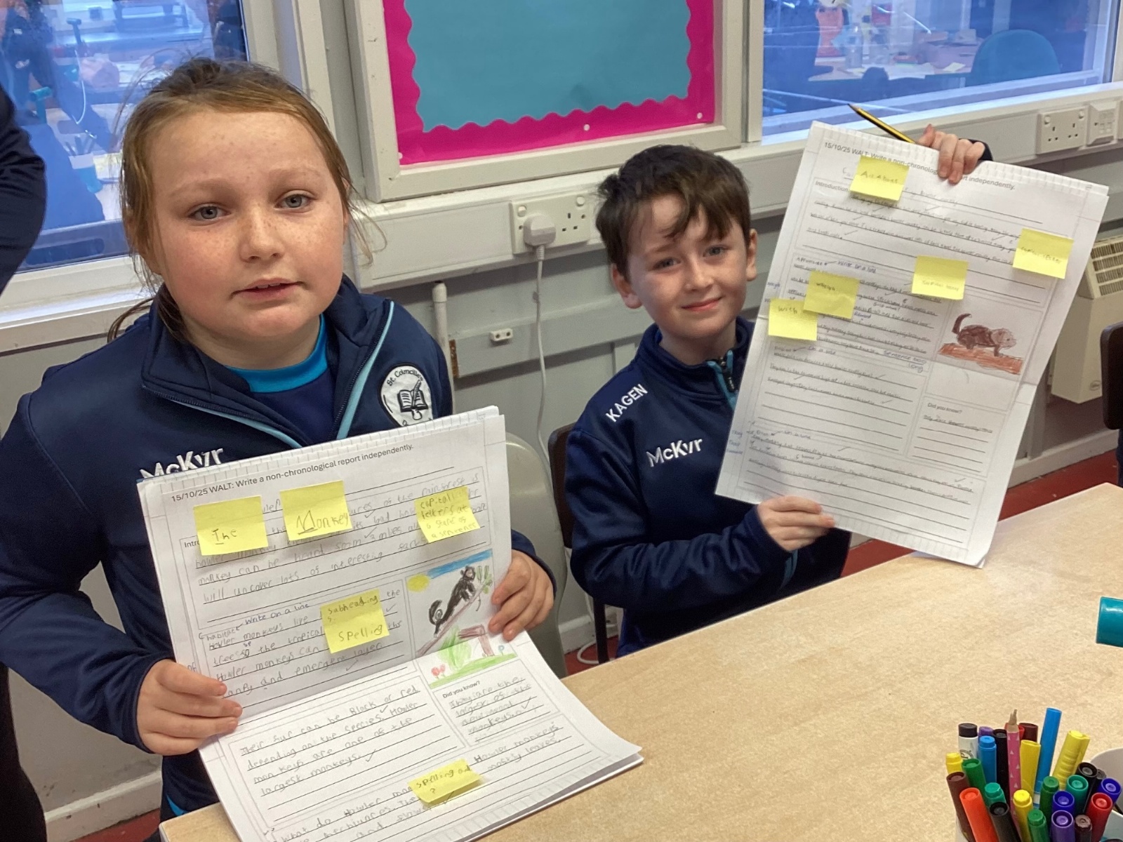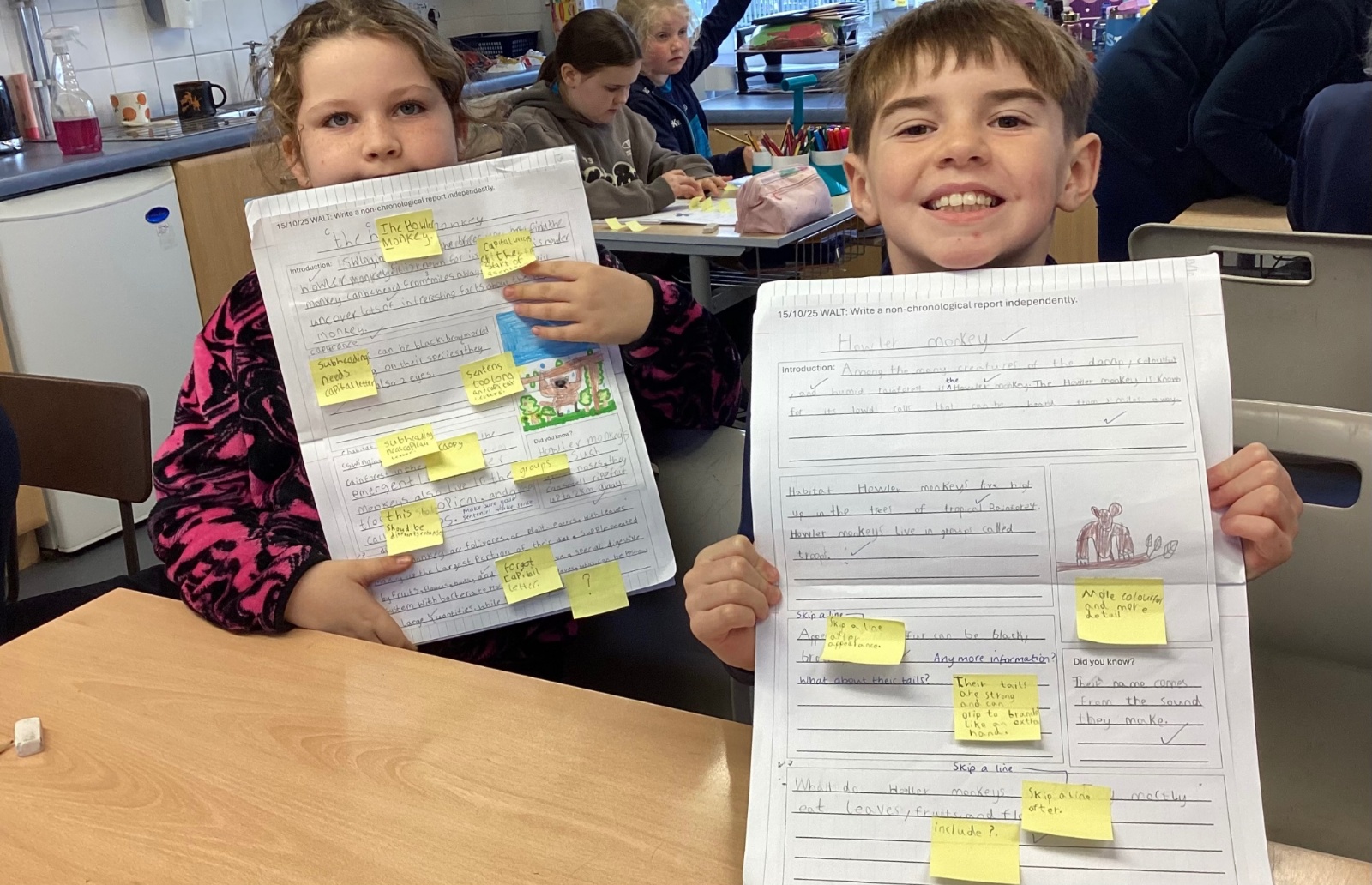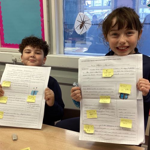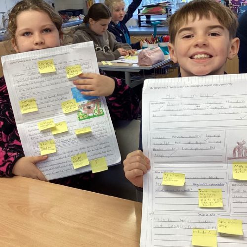 P5A have been developing their skills in writing non-chronological reports. A key part of this journey was the editing stage, where pupils reflected on their reports and used sticky notes to identify areas for improvement—suggesting changes to vocabulary, sentence structure, and clarity. This encouraged thoughtful self-assessment and highlighted the importance of revision in producing high-quality writing.