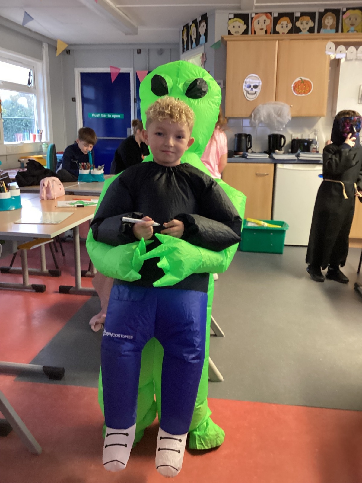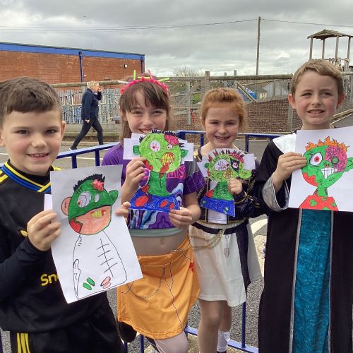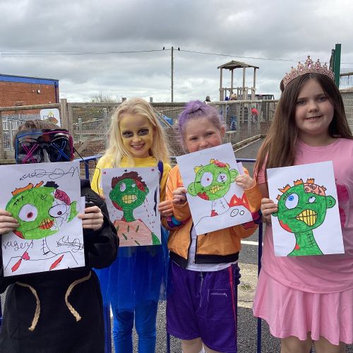 P5A had a spooktacular time celebrating Halloween today! The children looked fantastic in their costumes. We listened to Halloween music and got creative by making spooky zombie portraits, with moveable eyes for an extra eerie touch! The fun continued at the disco, where pupils treated themselves at the tuck shop and danced the day away. It was a brilliant way to kick off the Halloween holidays.