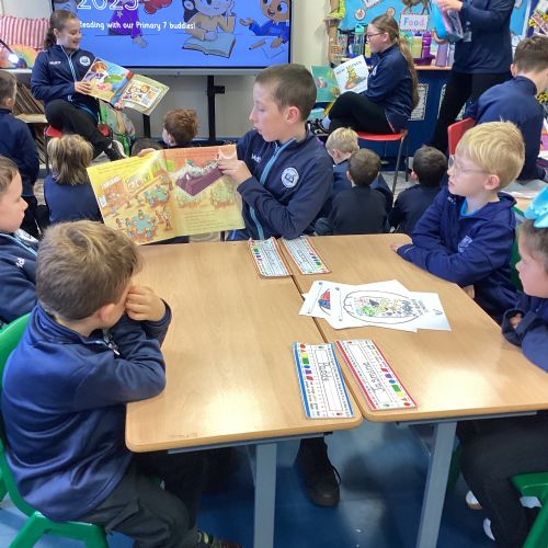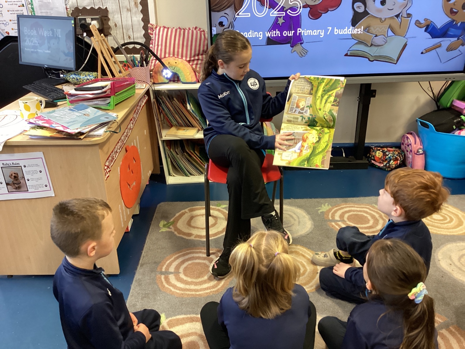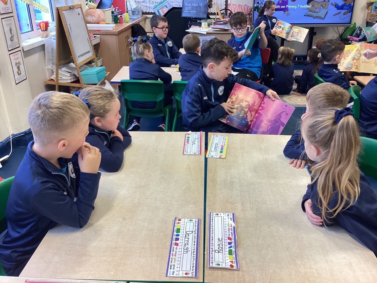 We had great fun this week celebrating Book Week. We took the opportunity to discuss our favourite books and authors and took part in some online quizzes. The highlight of the week came when we had the opportunity to read with pupils from Foundation Stage and Key Stage One.