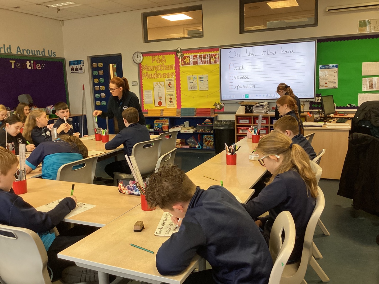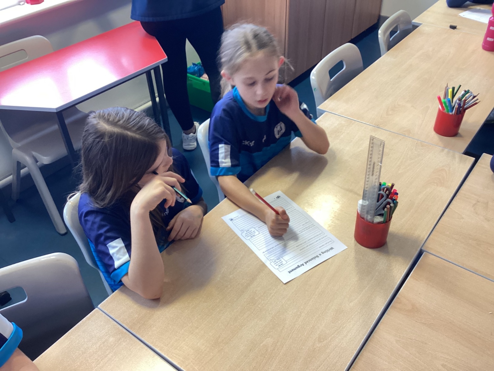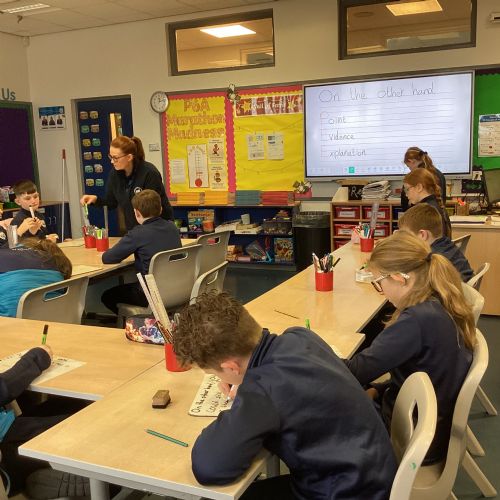As P6A continue their discursive writing, they worked collaboratively to creat a piece of writing that focused on whether or not children should wear a school uniform.