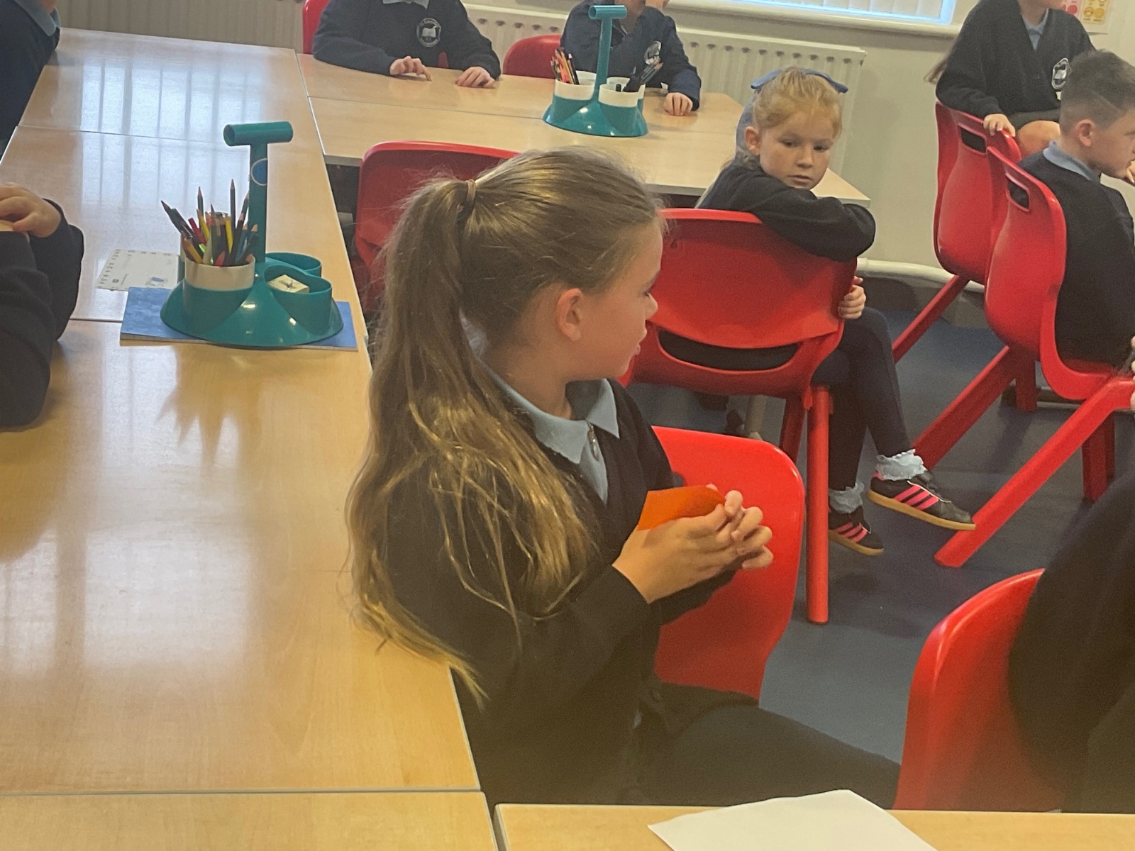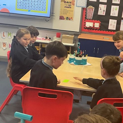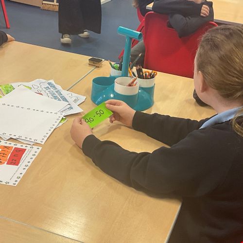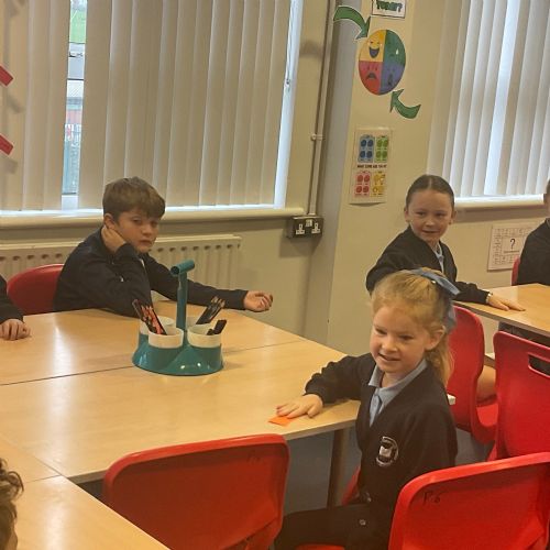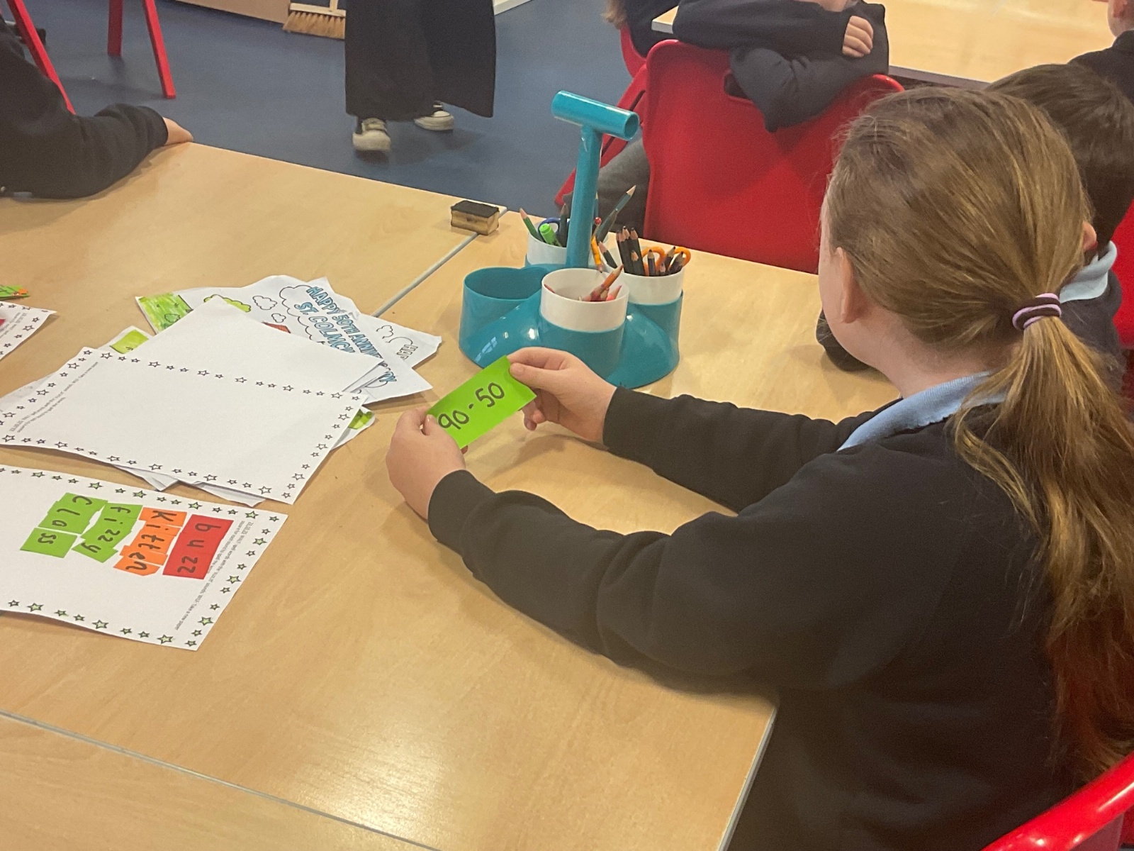 P4 integrated music into their numeracy learning this week to support their subtraction skills. We played a game called Pass the Subtraction, similar to Pass the Parcel. When the music stopped, the child holding the subtraction card had to answer the question as quickly as possible. The class were highly engaged and motivated, and it was a fun, active way to reinforce mental subtraction.