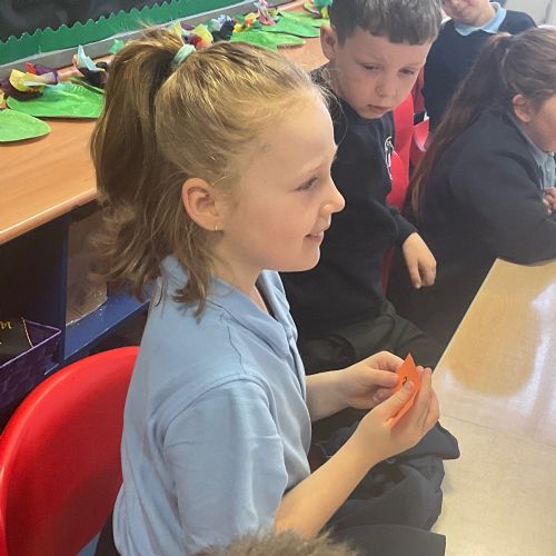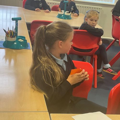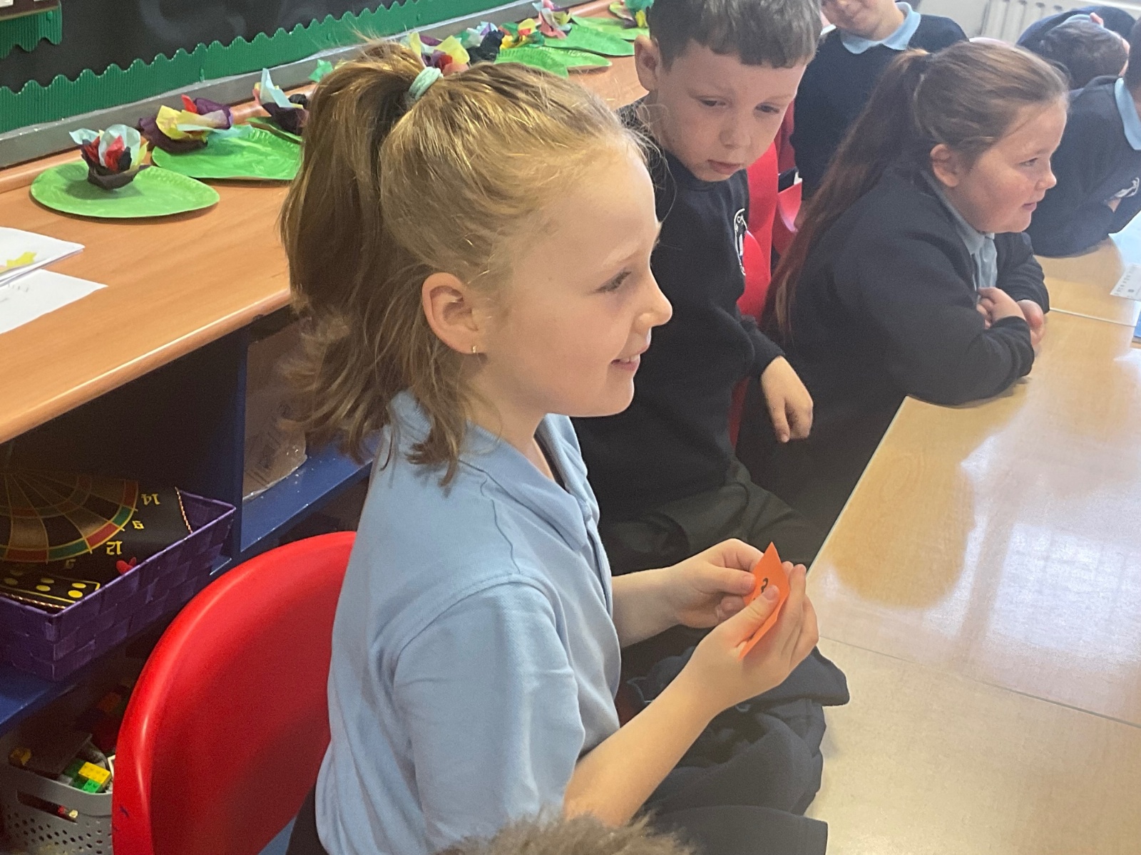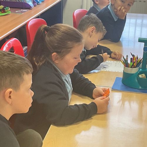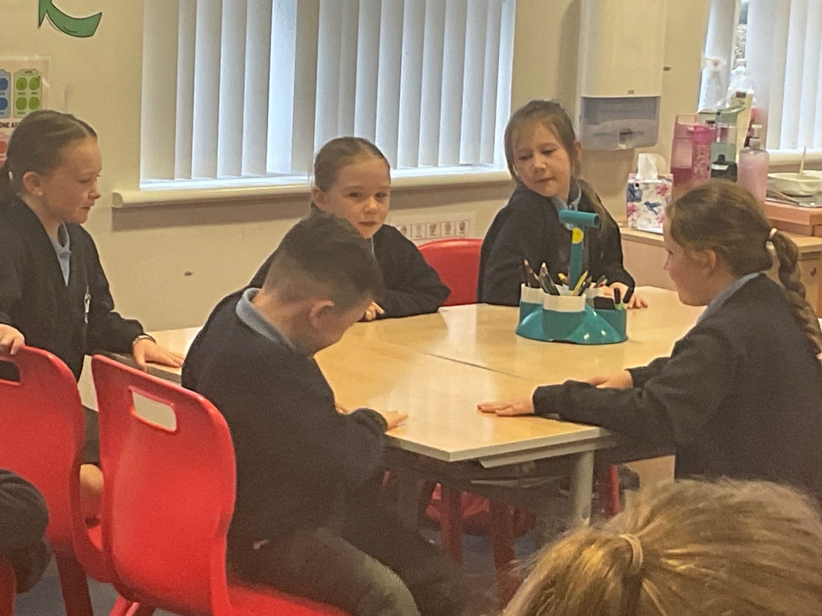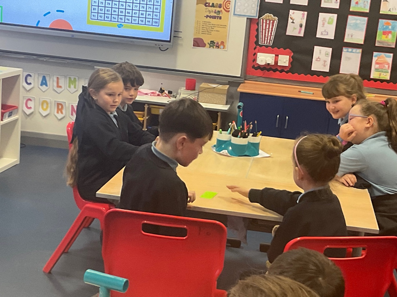 P4 integrated music into their numeracy learning this week to support their subtraction skills. We played a game called Pass the Subtraction, similar to Pass the Parcel. When the music stopped, the child holding the subtraction card had to answer the question as quickly as possible. The class were highly engaged and motivated, and it was a fun, active way to reinforce mental subtraction.