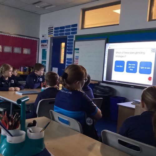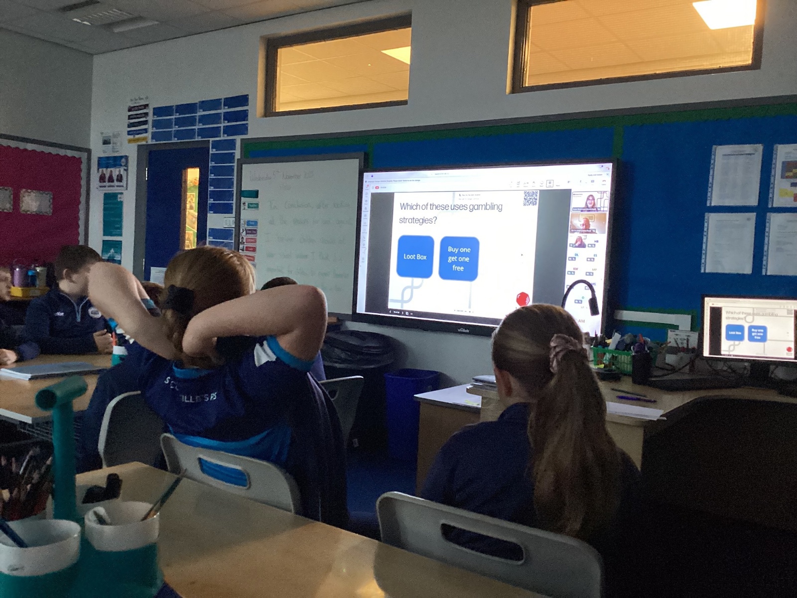 P6 had a really interesting online lesson with Big Money this week where they found out about the dangers and pitfalls of online spending. The pupils were educated about loot boxes in games and how this links to gambling. They took part in a fun quiz to finish off.