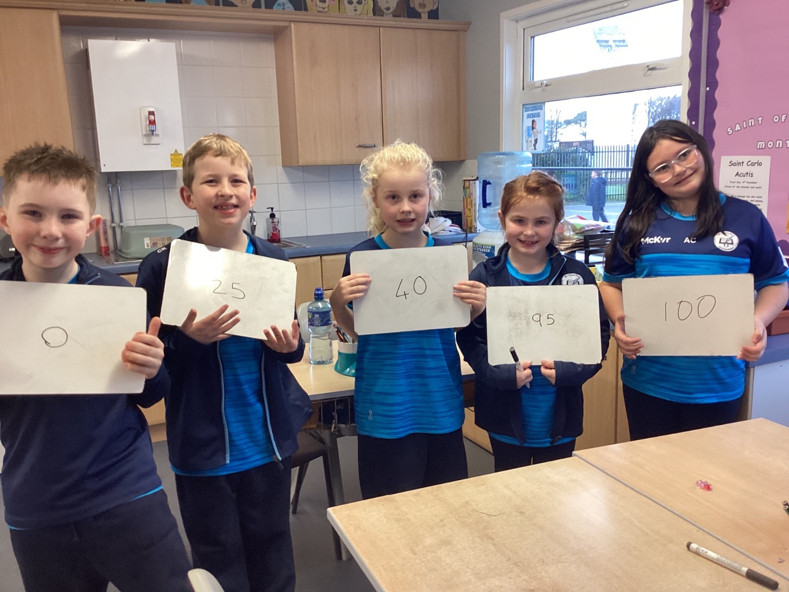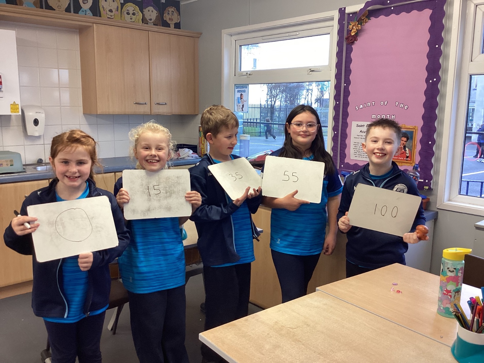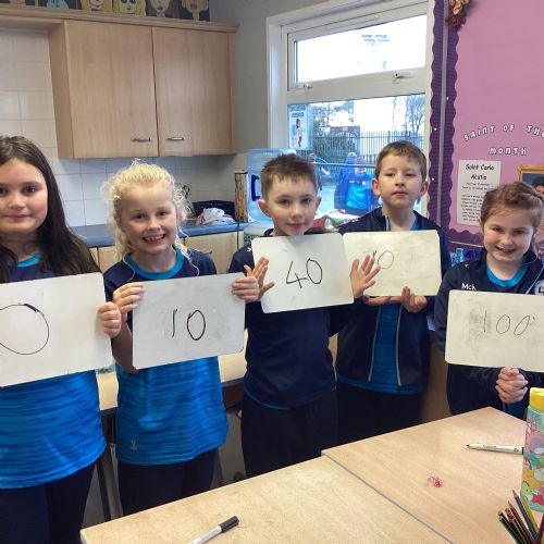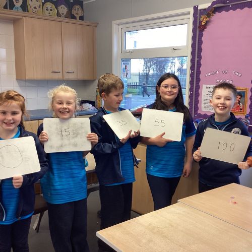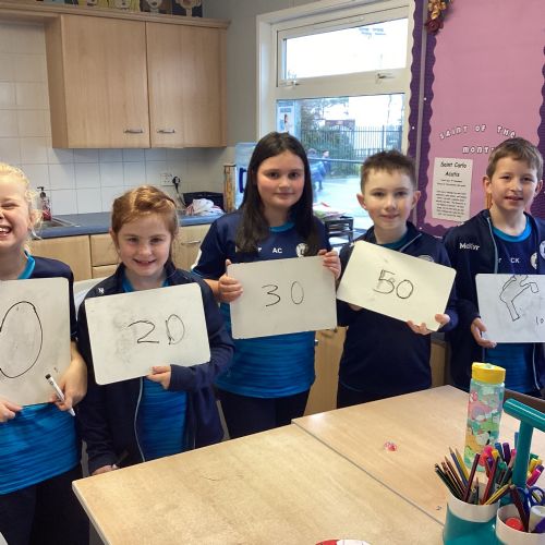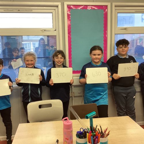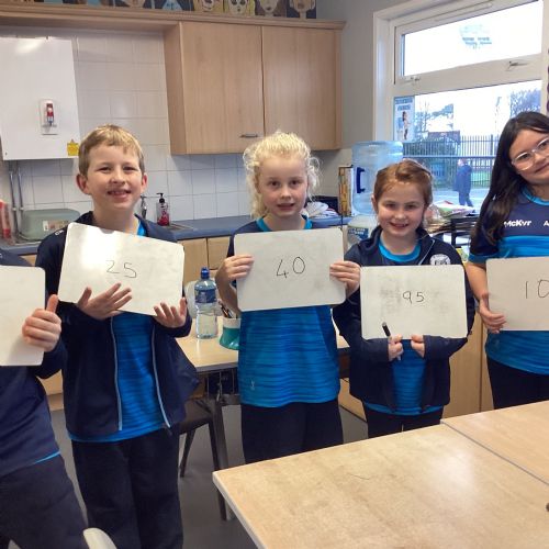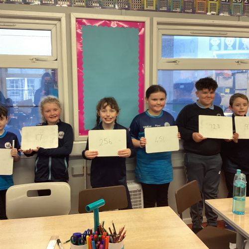 Today in P5A, we began exploring number lines. We looked at a variety of examples to help us understand how numbers can be represented visually and in order. To bring the concept to life, we took part in a fun and interactive activity: each pupil was given a random number on their whiteboard and challenged to work together to arrange themselves in the correct order to form a human number line. This hands-on experience sparked great discussion and helped reinforce our understanding of number sequences and place value.