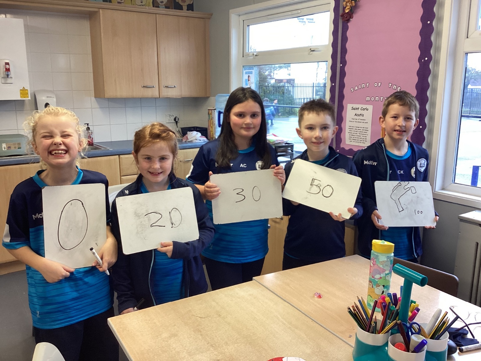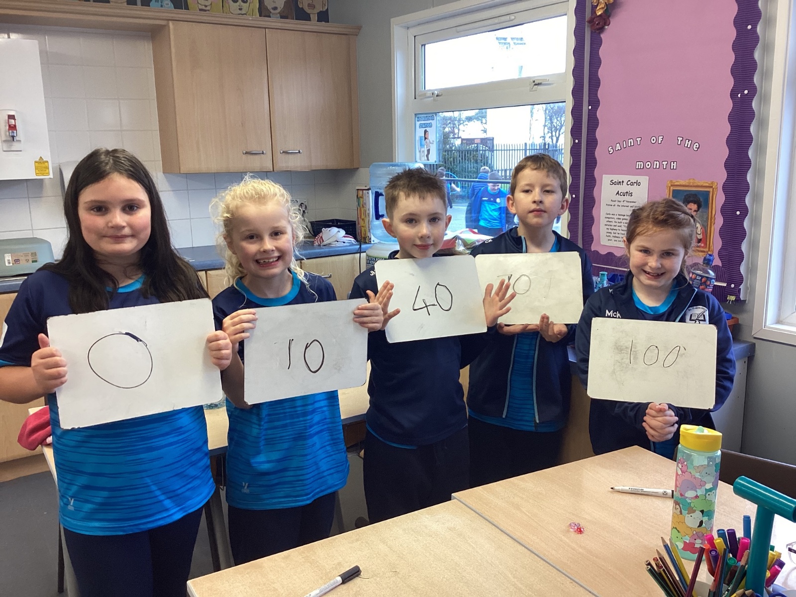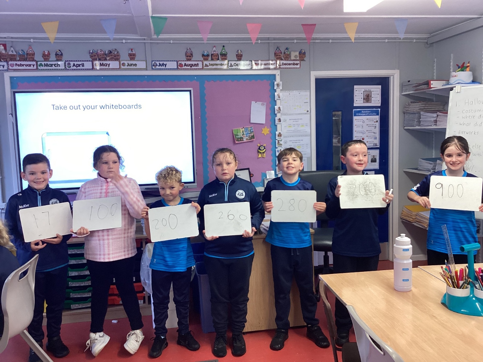 Today in P5A, we began exploring number lines. We looked at a variety of examples to help us understand how numbers can be represented visually and in order. To bring the concept to life, we took part in a fun and interactive activity: each pupil was given a random number on their whiteboard and challenged to work together to arrange themselves in the correct order to form a human number line. This hands-on experience sparked great discussion and helped reinforce our understanding of number sequences and place value.