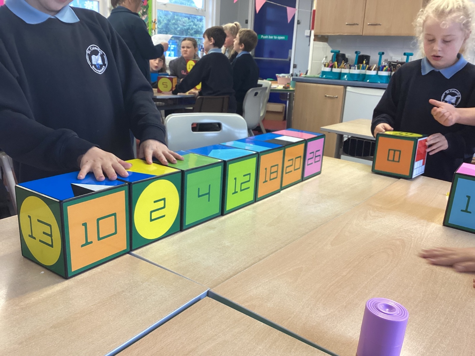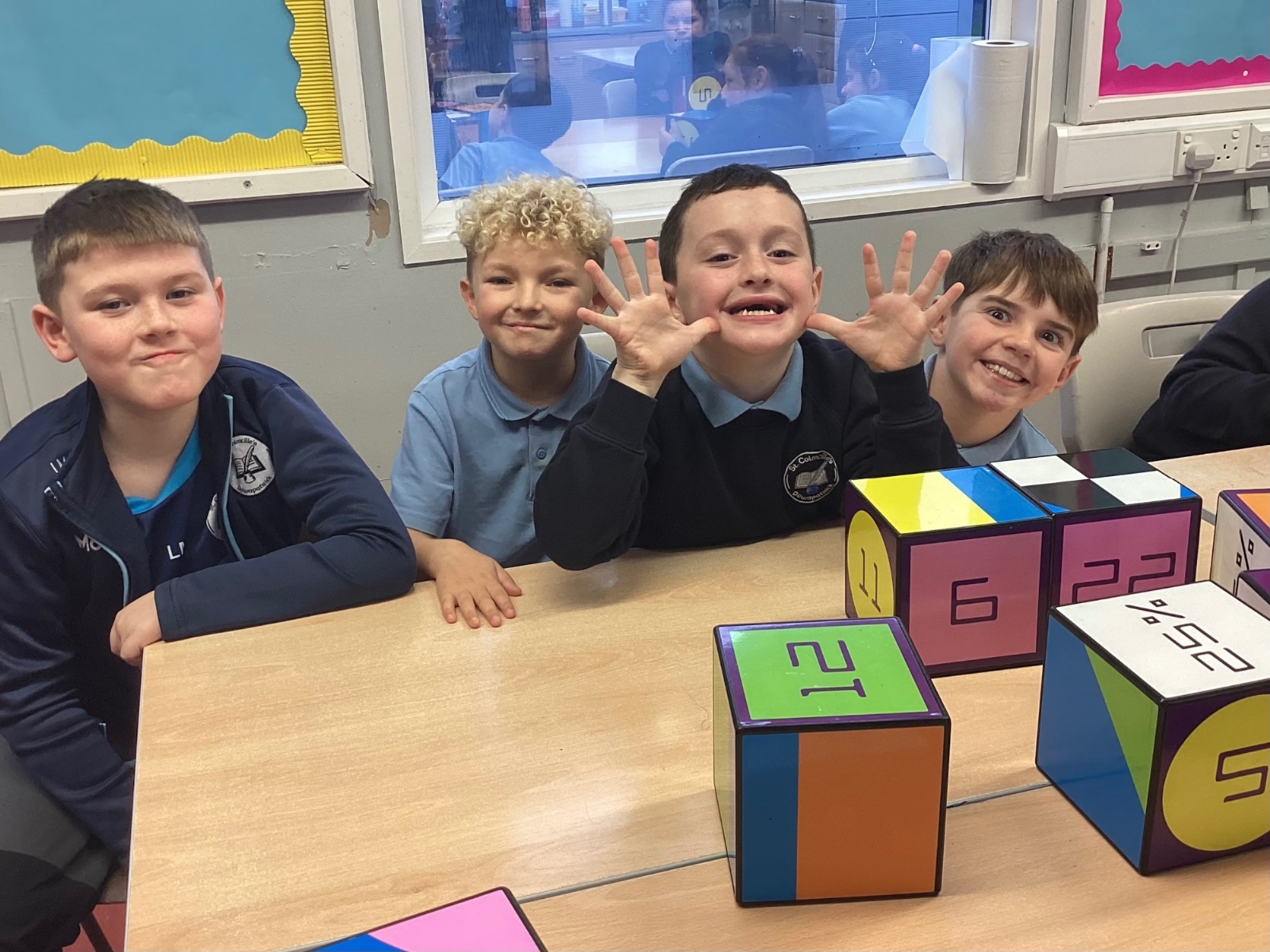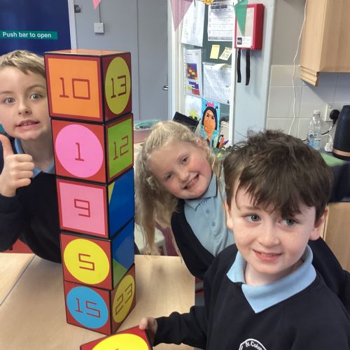 Today in P5, we used the IZAK9 cube to practice solving maths problems in a fun and interactive way. The children worked together to answer questions that involved their times tables focus of that week. They used logical thinking to spot patterns and solve challenges, discussing their ideas and strategies as a team.