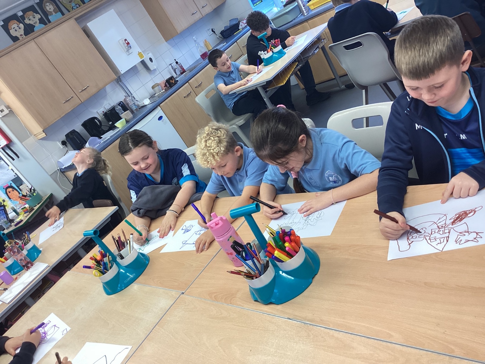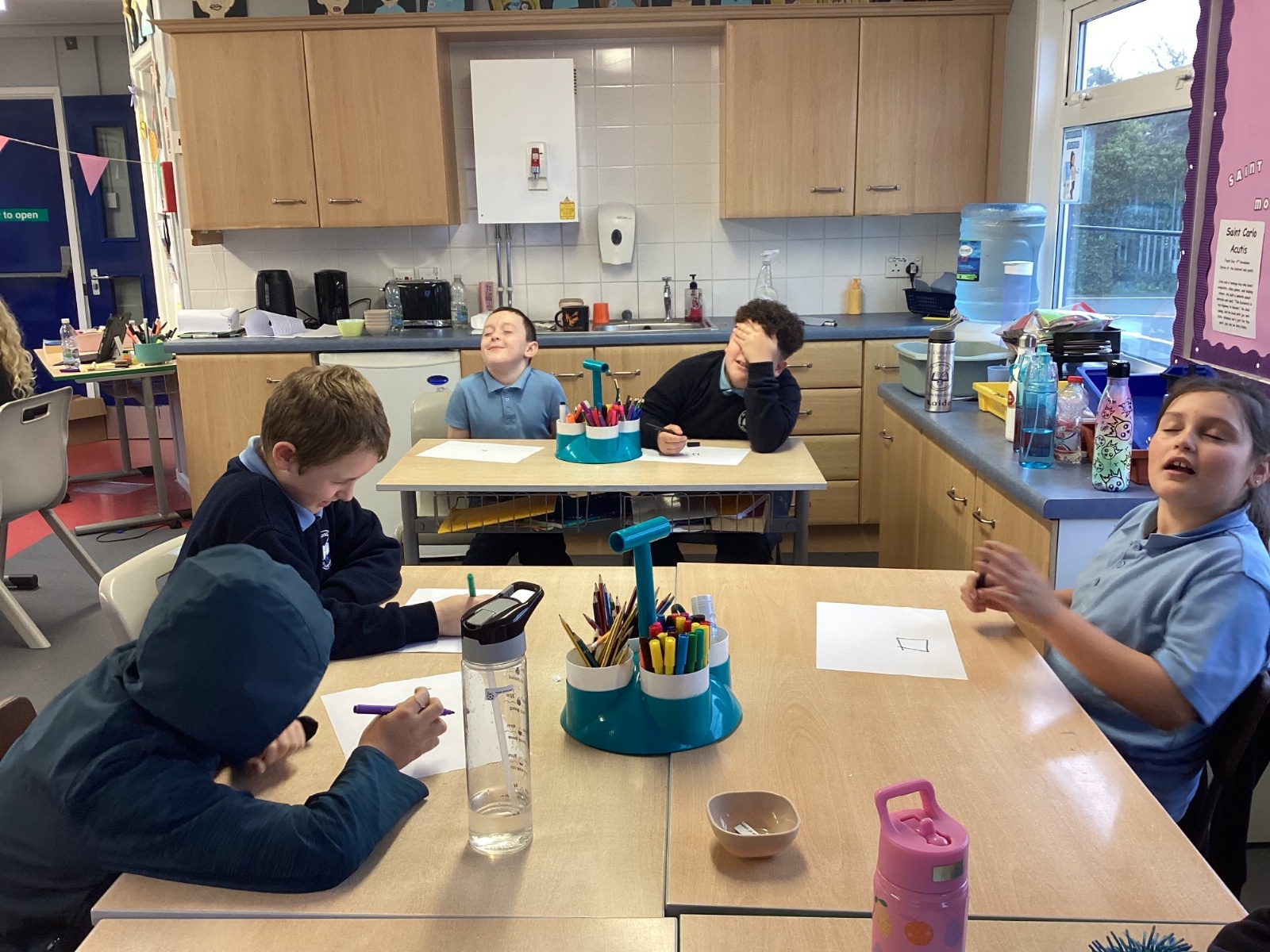Today in P5A, we learnt about Jesus as a healer. We reflected on how some people are not as fortunate as us, particularly those who may be missing one or more of their five senses—sight, hearing, smell, taste, or touch and how these are the people that Jesus cared specially for. We imagined what life might be like without one of these senses and considered the challenges that would arise. To deepen our understanding, we took part in practical activities such as blindfolded drawing and following instructions without verbal guidance. We also watched the story of Helen Keller and engaged in a thoughtful class discussion about how her life differed from ours. We explored the unique techniques and methods she used to communicate and learn, despite being both blind and deaf.