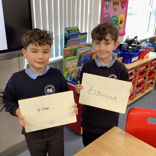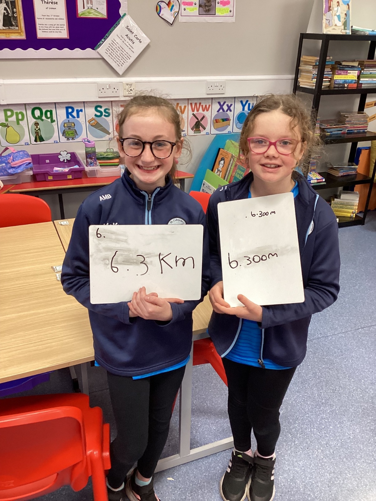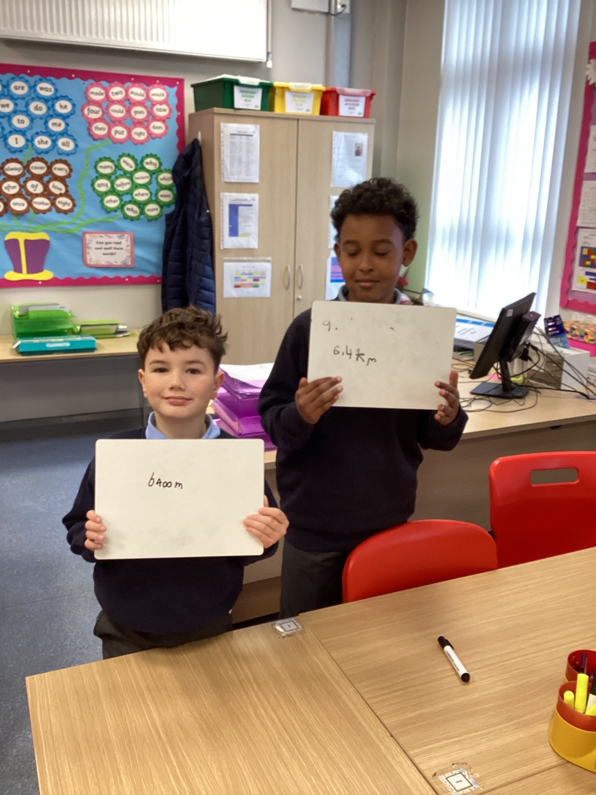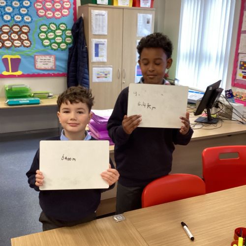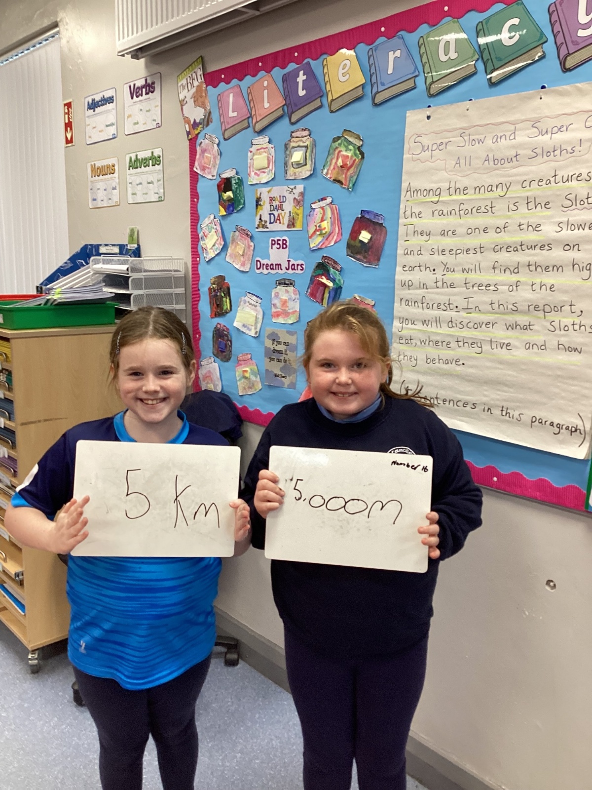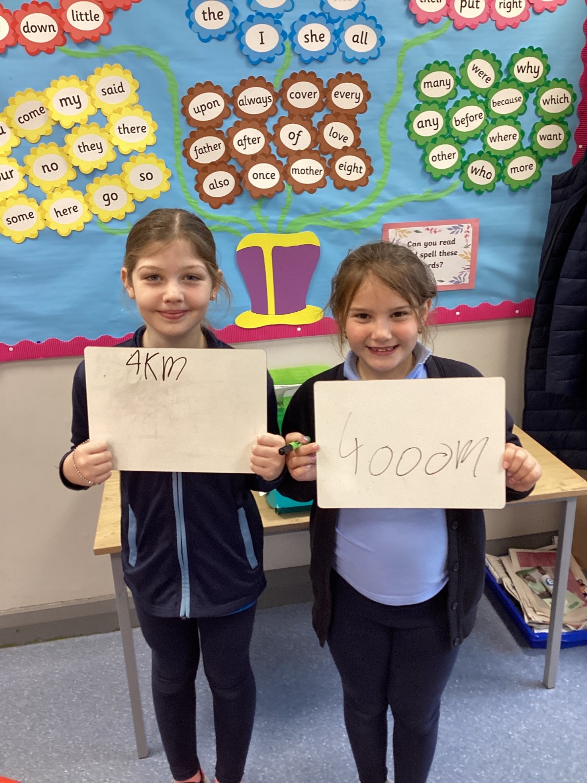 Our Primary 5 pupils have been exploring how to convert kilometres into metres as part of their numeracy work. They learned that 1 kilometre equals 1,000 metres, and used this knowledge to solve real-life problems, such as working out the distance from school to local landmarks. To make learning fun and interactive, pupils also took part in a matching activity where they had to find another classmate with an equivalent measurement to their own. This hands-on approach helped reinforce understanding and encouraged teamwork while building confidence in applying maths beyond the classroom.