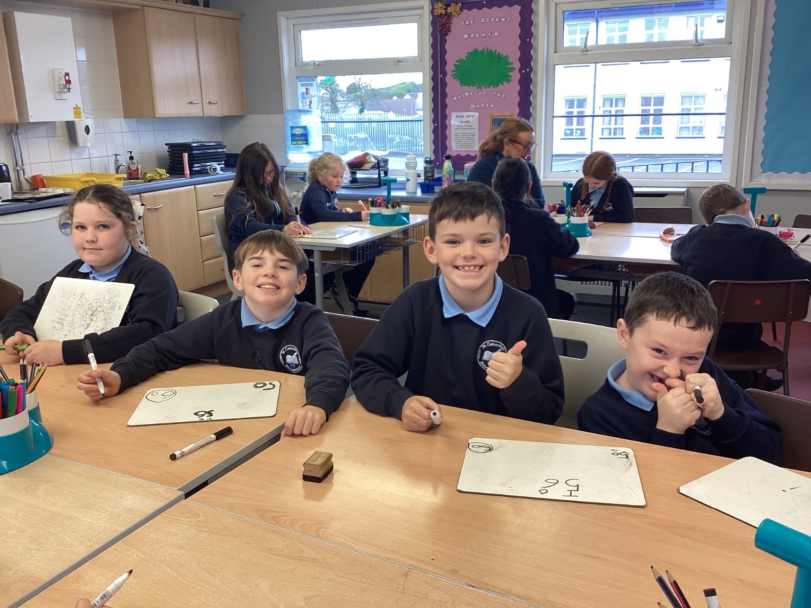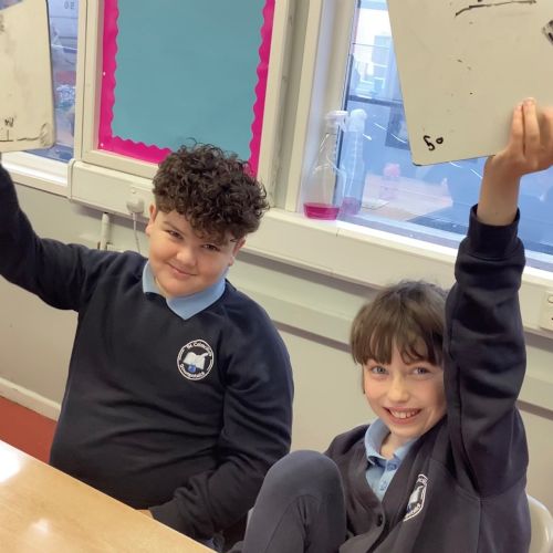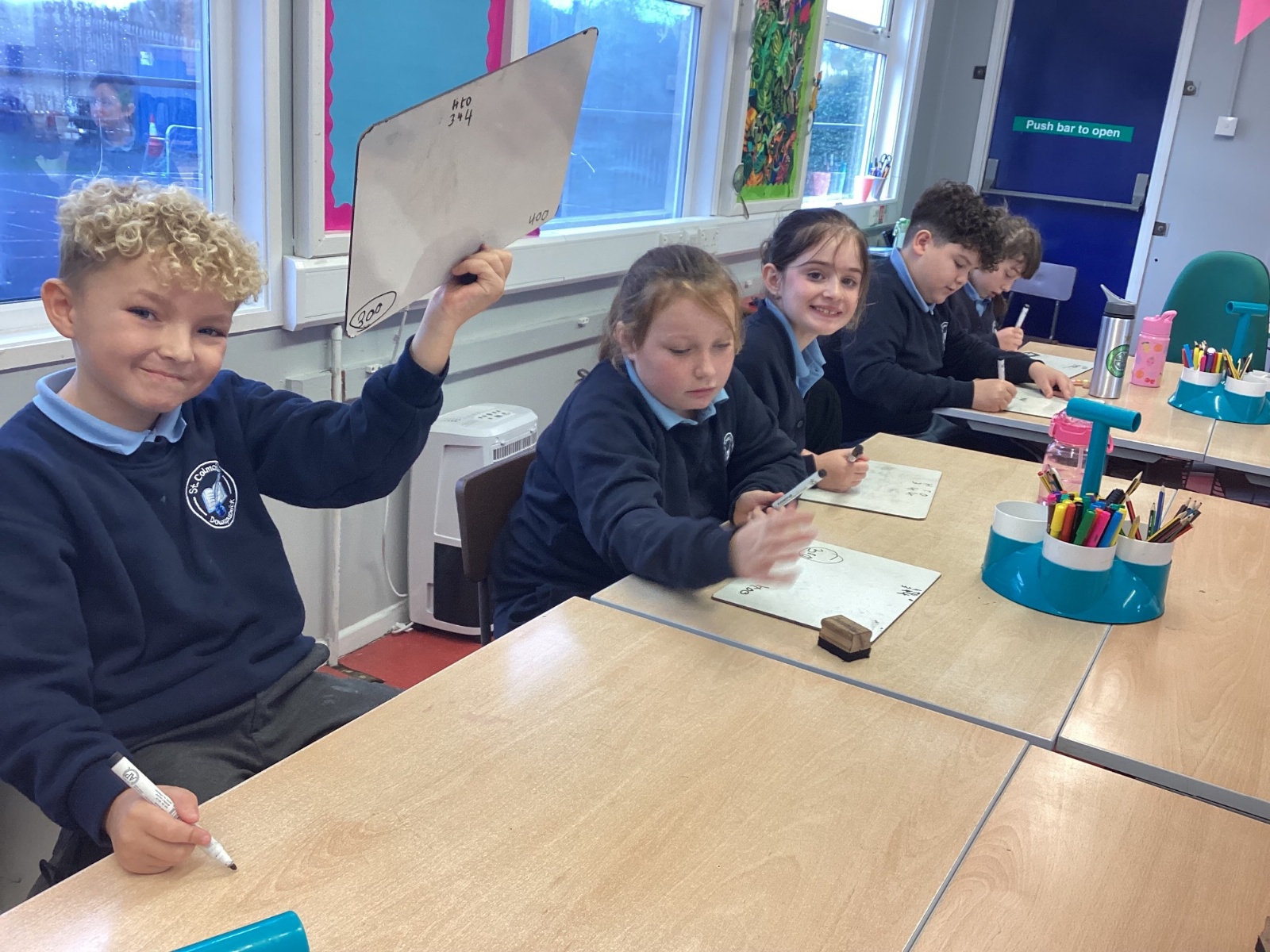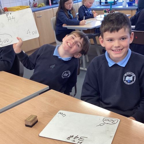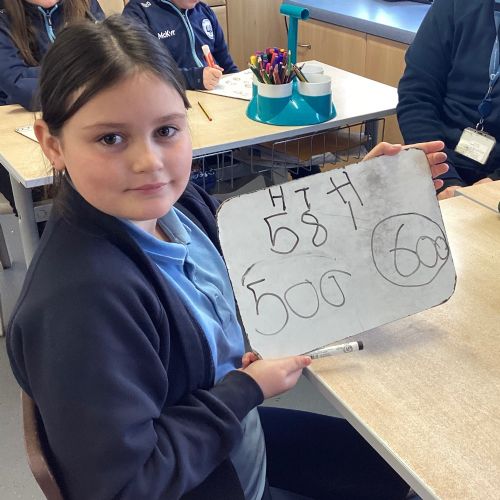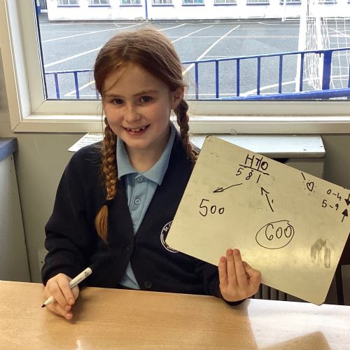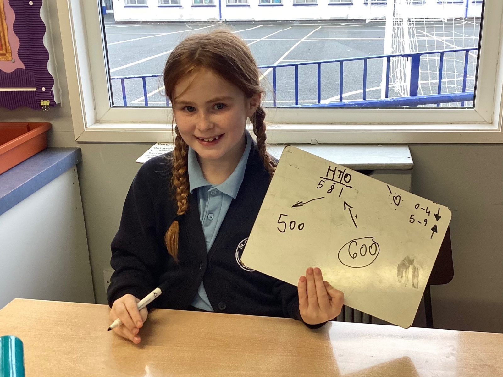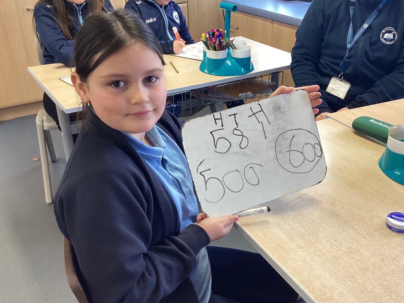 Today in P5A, we focused on rounding numbers to the nearest ten and the nearest hundred. We discussed how rounding works—whether to round up or down—and learned the rule: if the digit is 0–4, we round down; if it’s 5–9, we round up. For our practical activity, pupils were given a number and had to decide what it would round down to and what it would round up to, before circling the correct answer.