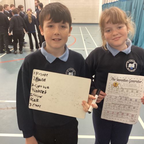 The boys and girls enjoyed getting creative in World Around Us this week when they came up with their own inventions using a dice game to generate prompts. An excerise machine for pets, a TV with wheels and a voice generated pencil were some of the ingenious ideas the pupils came up with. They were then challenged to rank some of the most important inventions, this resulted in lots of lovely debate!